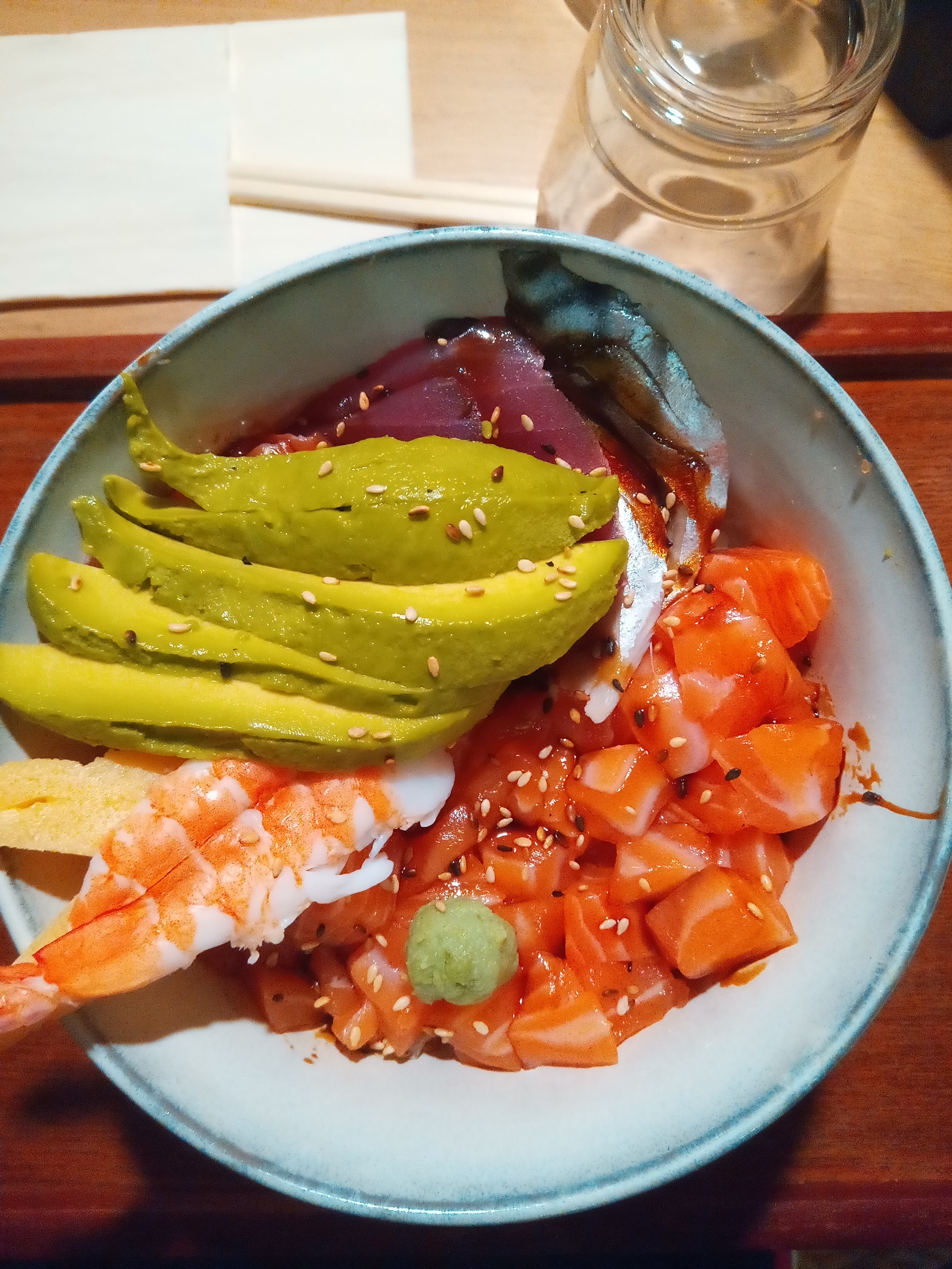 Joli établissement les tarifs un peu élevé, et puis quand arrive ce bol de riz et des petits morceaux de poisson, ce n'est pas très enthousiasmant! Mais c'est frais avec la marinade ça passe. C'était ma première expérience, peut être un manque d'information et les serveuses pas trop formé pour les conseils.