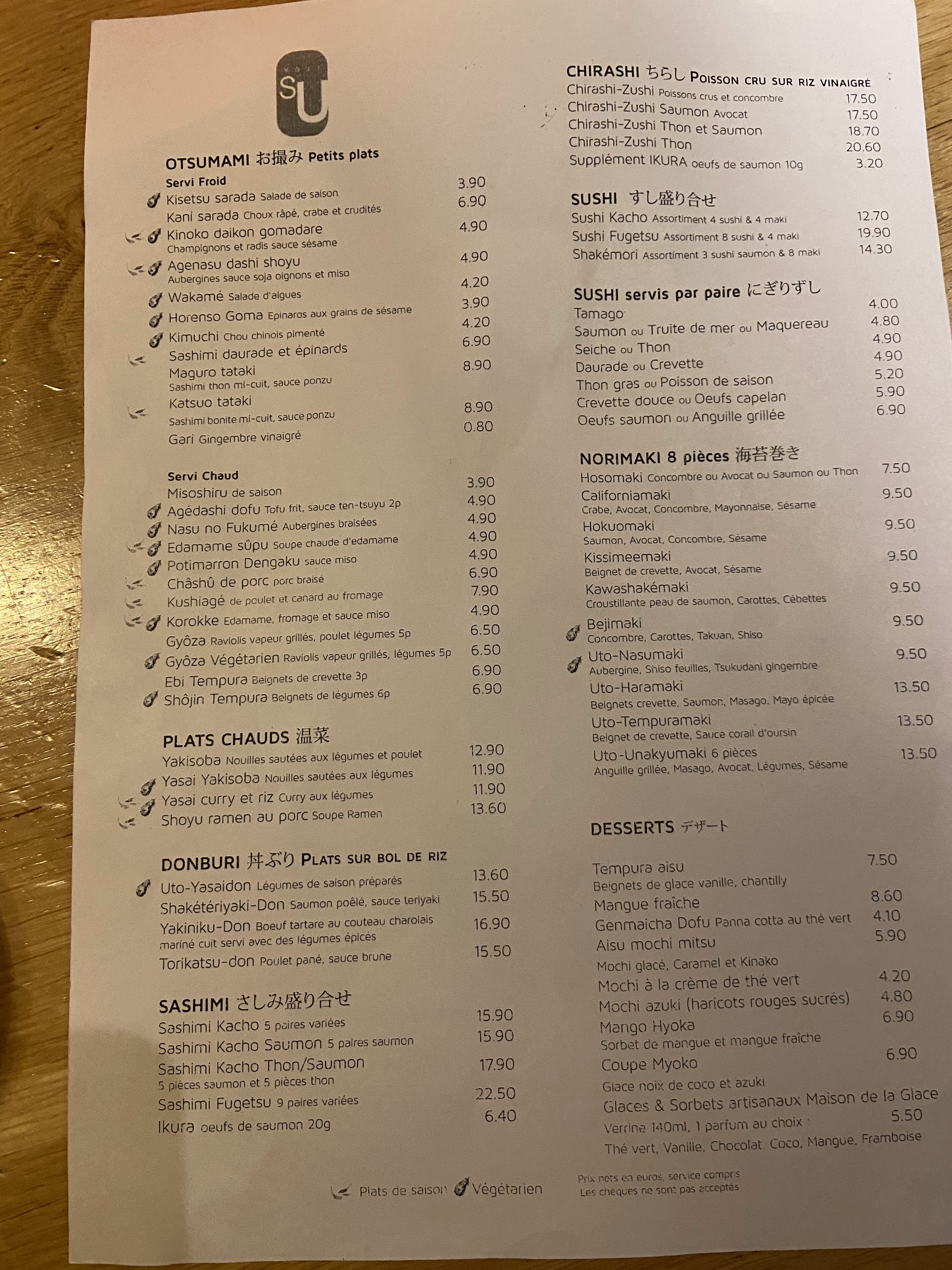 Menu Su excellent, produits de très bonne qualité, partie terrasse très agreable, seul bémol, la trop grande rapidité des serveurs malgré leur gentillesse
