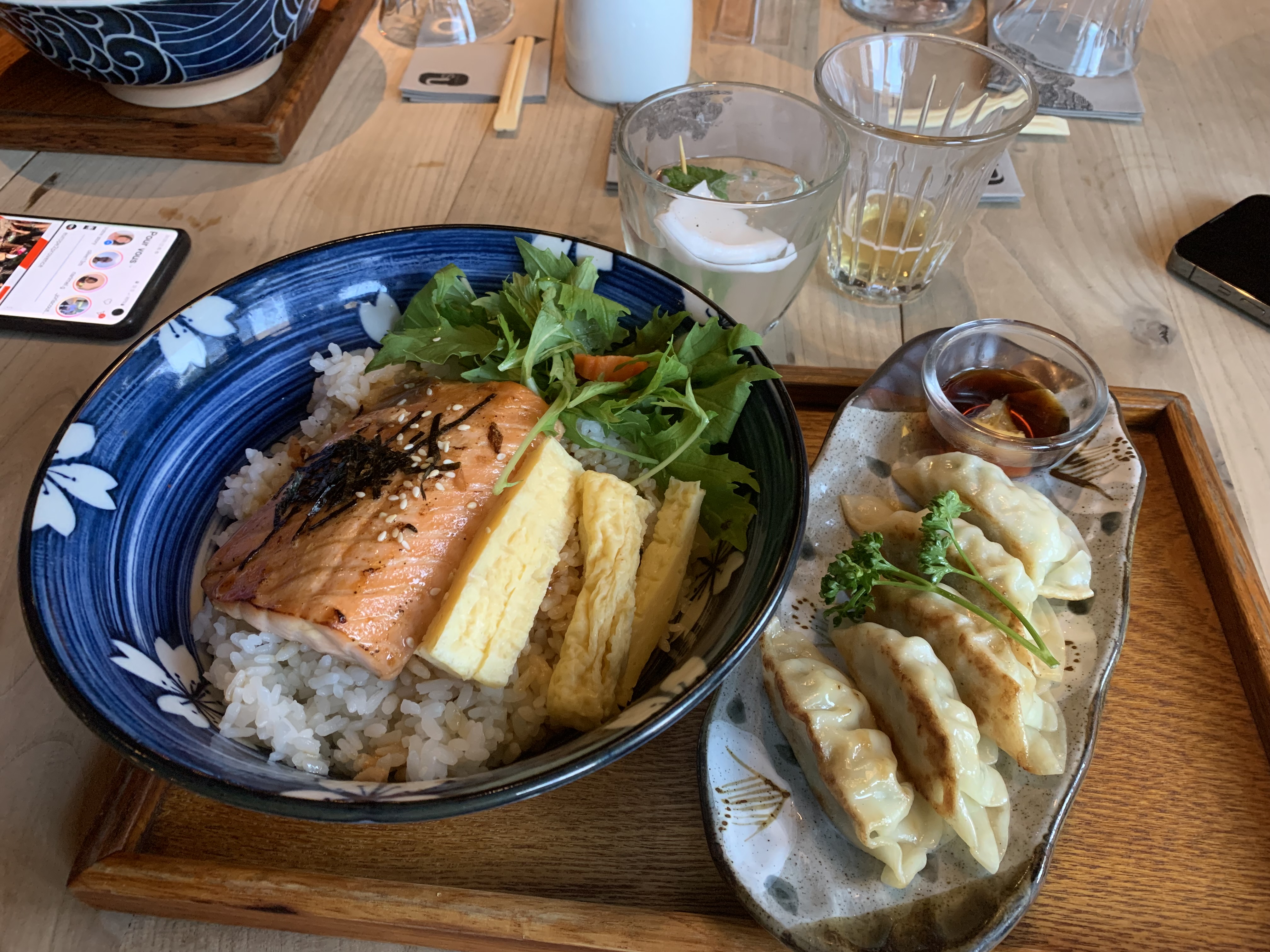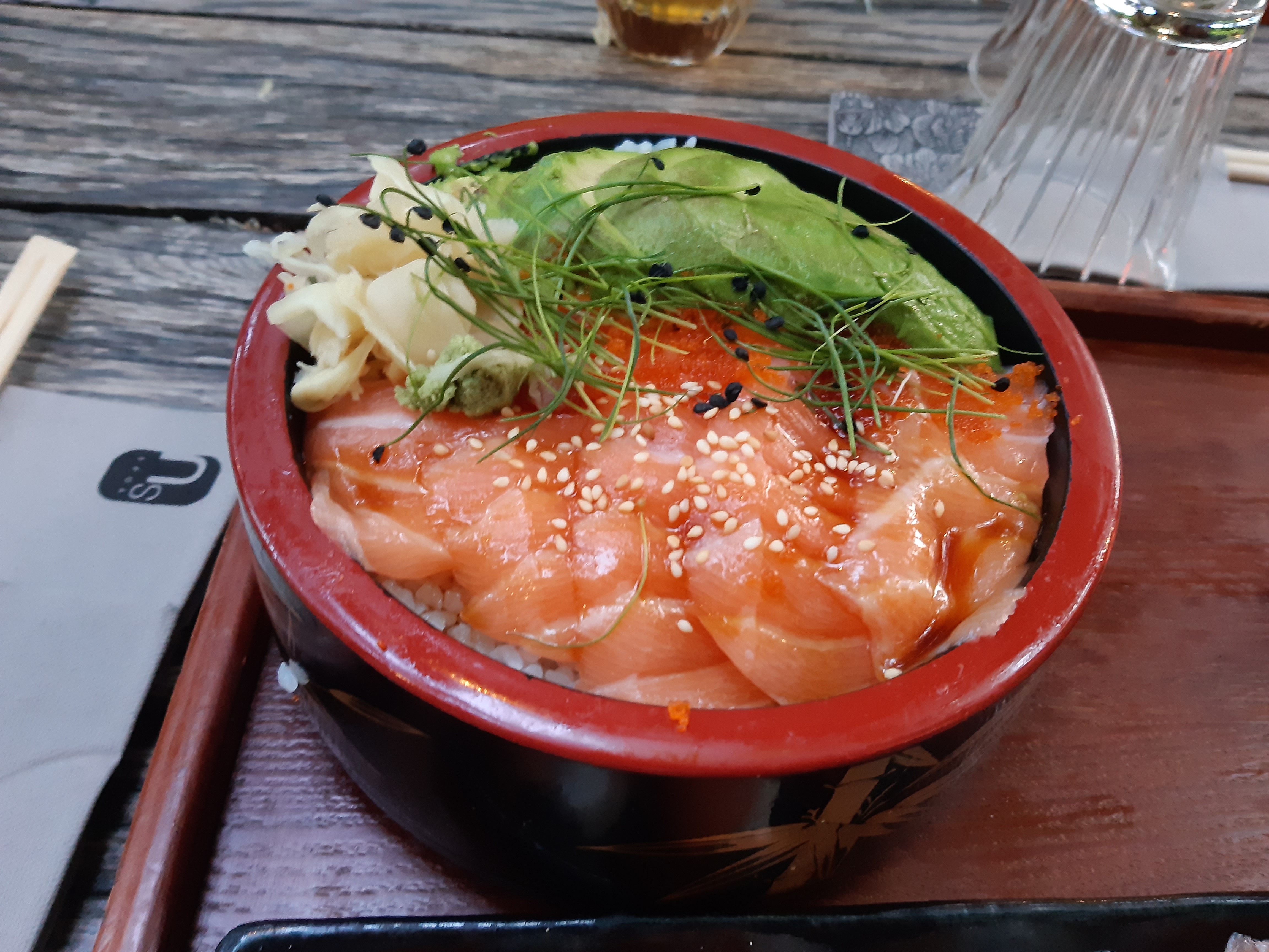 Ambiance japon avec sa cuisine ouverte. Terrasse agréable. Belle introduction à la cuisine japonaise telle qu’on l’imaginé : sushi, gyoza, maki, chirashi-zushi ...
