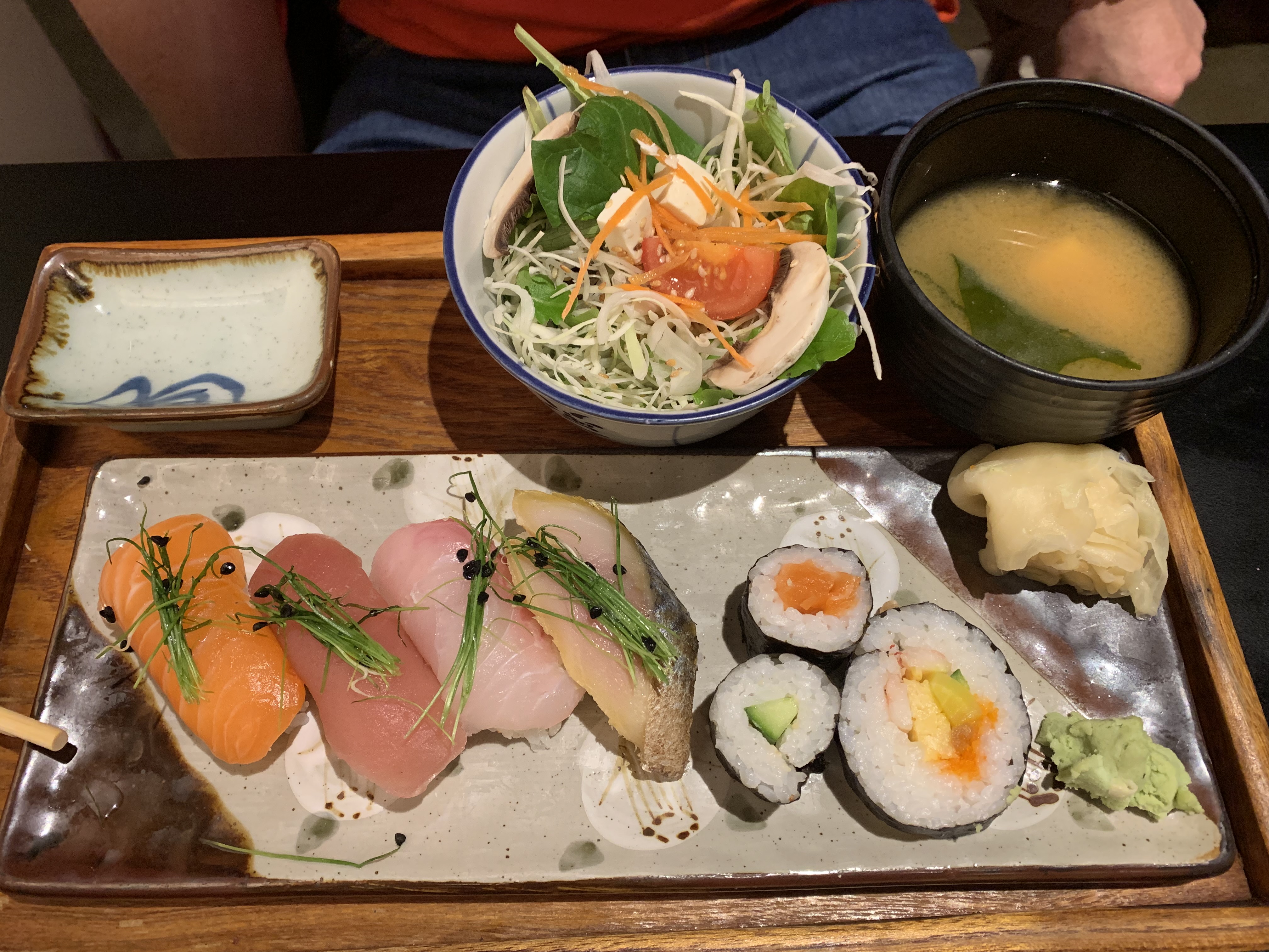 Situé dans un environnement de petite industrie, ce n'est pas un endroit où l'on s'attendrait à un si bon restaurant-traiteur-épicerie japonais, mais à quelques minutes en vélo du cœur d'Aix en Provence. Design intérieur industriel, table et comptoirs disponibles, section avec produits d'épicerie fine japonaise (à emporter) et fournitures d'exploitation japonaises L'accueil était sympathique et nous nous sommes assis immédiatement Dans le menu, nous avons sélectionné un menu Irodorizen (qui comprenait Misoshiro, Agenasu Dashi Shoyu, Edamame, Potimarron Dengaku, Kinoko Daikon Gomadare, Nigiri Sushi et Maki, Sashimi, Riz et Mini pâtisserie de la saison... le tout servi sur un seul plateau. et très bien présenté sur de la porcelaine intéressante. En dehors de cela, nous avons également commandé des petits pains et des sushis. Le service était sympathique et efficace et nous avons trouvé la nourriture d'excellente qualité et d'un excellent rapport qualité/prix. Certainement un endroit où nous reviendrons et fortement recommandé à ceux qui ont une véritable expérience culinaire japonaise.