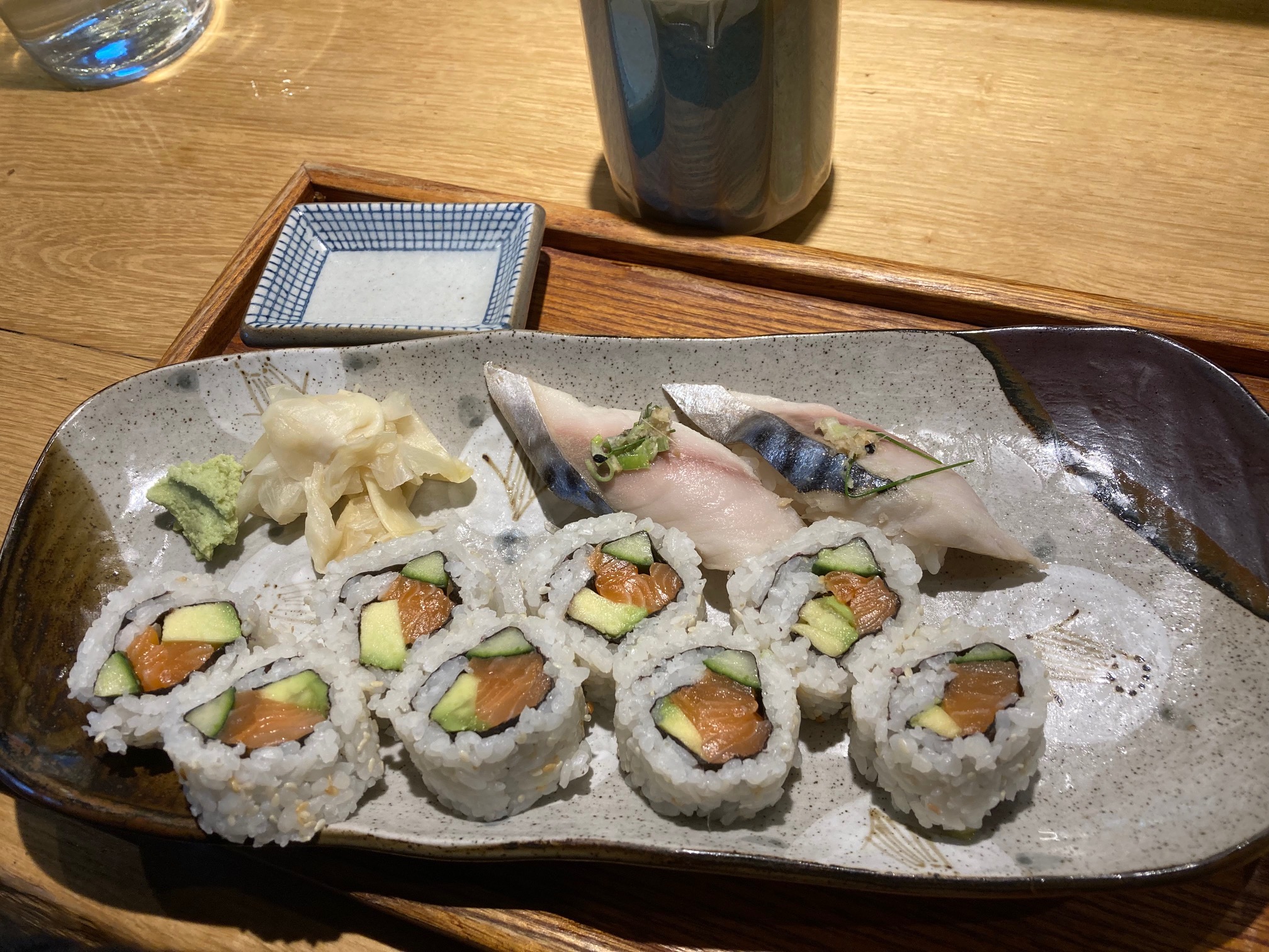 Quelle ambiance ! Bravo ! L’atmosphère est géniale, la cuisine et les filets de poissons sont bien mis en avant. l’éclairage est très reposant. Top. Côté cuisine, à l’inverse déçu. On s’attend à des produits faits maisons, raté !! De l’industriel pour les gyoza en tout cas. De plus, je suis ressorti pas vraiment rassasié pourtant deux plats de gyoza, un bol de riz, une soupe et sushi crevettes 25€ ! Un peu cher.