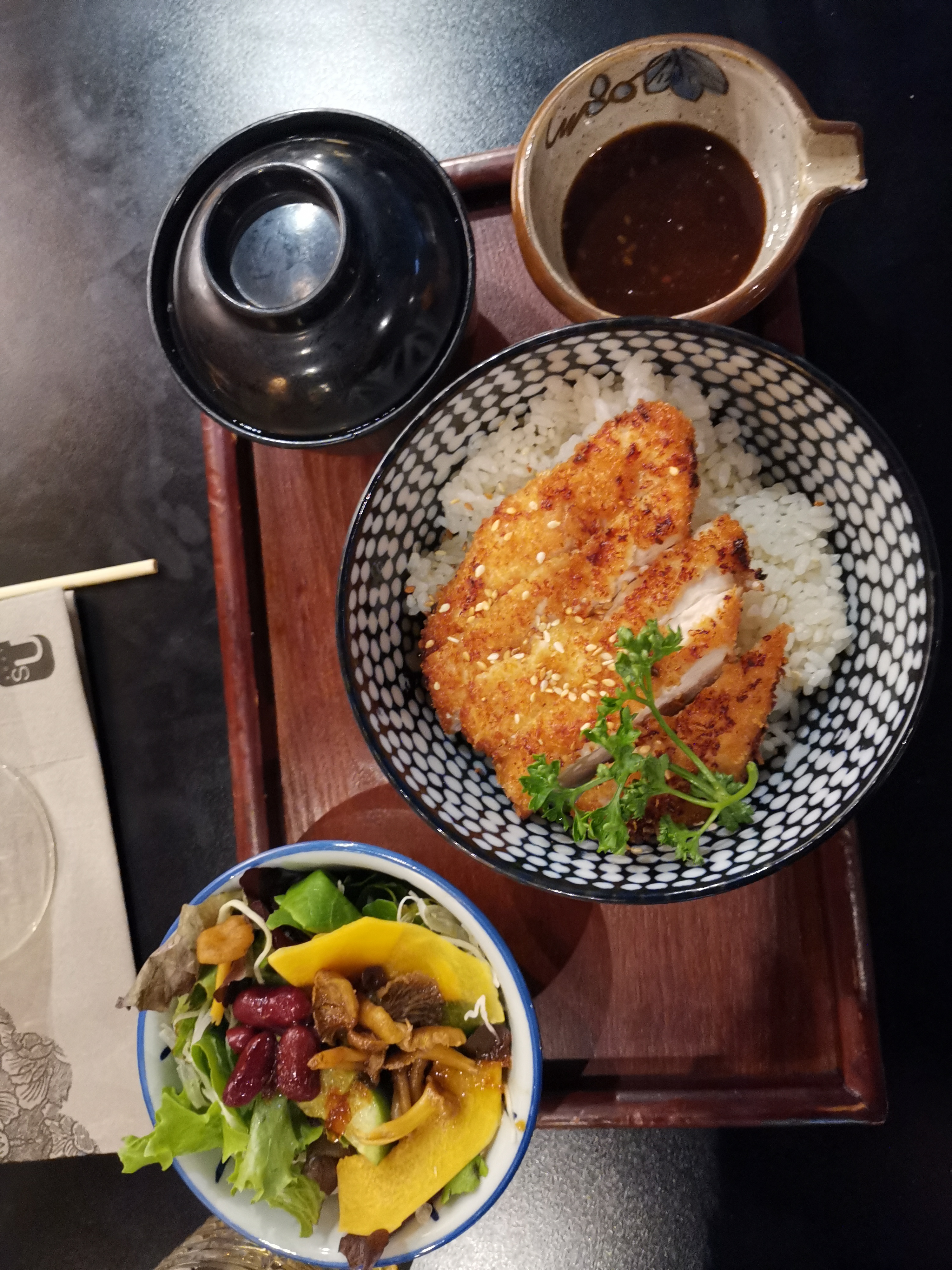De la fausse cuisine japonaise. Bien que la décoration du restaurant soit très atmosphérique et que le service soit bon, la nourriture est un désastre : - riz de qualité inférieure, cuisson très injuste; - les escalopes de poulet frites japonaises ne sont pas tendres du tout ; - mauvaise sauce ; - soupe miso incorrecte Légumes corrects ; - les nouilles n'étaient pas des ramen japonais ; - la base de la soupe ramen était fade et étrange ; - la viande dans les ramen était mal préparée. Évitez ce restaurant pour la vie de vous.