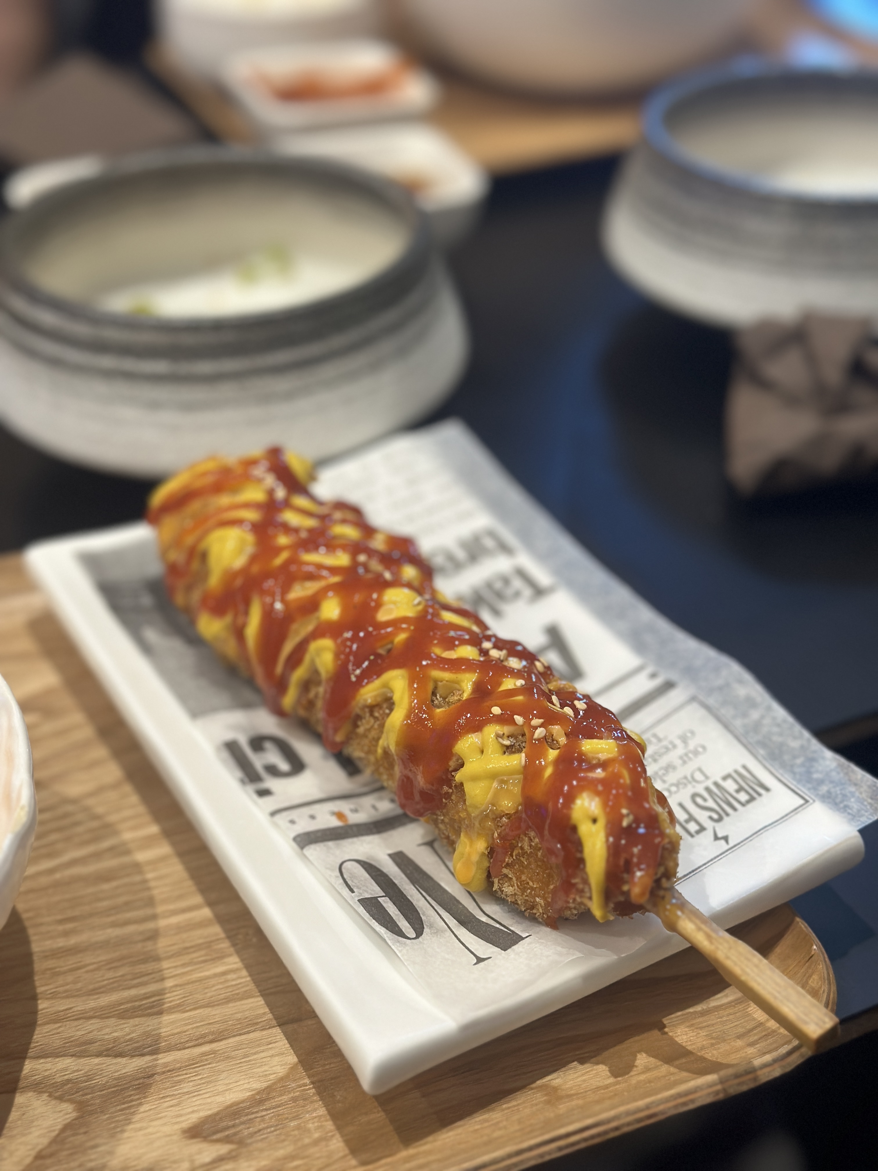 Petit restaurant coréen servant des corn dogs exceptionnels, des plats savoureux et un bon cocktail de melon. Personnel très agréable. Je reviendrai.