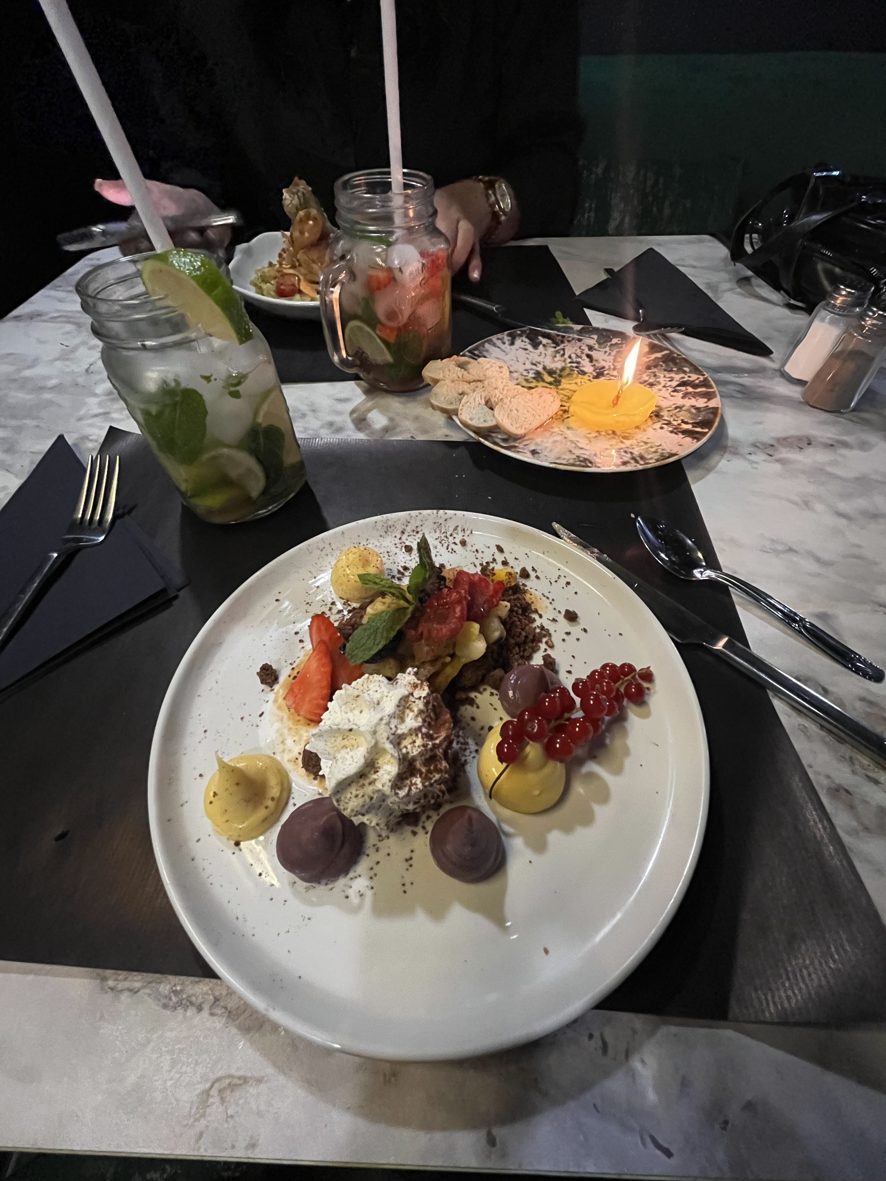 Accueil très sympathique, on a passé un excellent moment, serveuse à l’écoute et très agréable, c’était délicieux de l’entrée au dessert rien à dire et je vous parle même pas du cocktail !! Foncée les yeux fermé 🥰