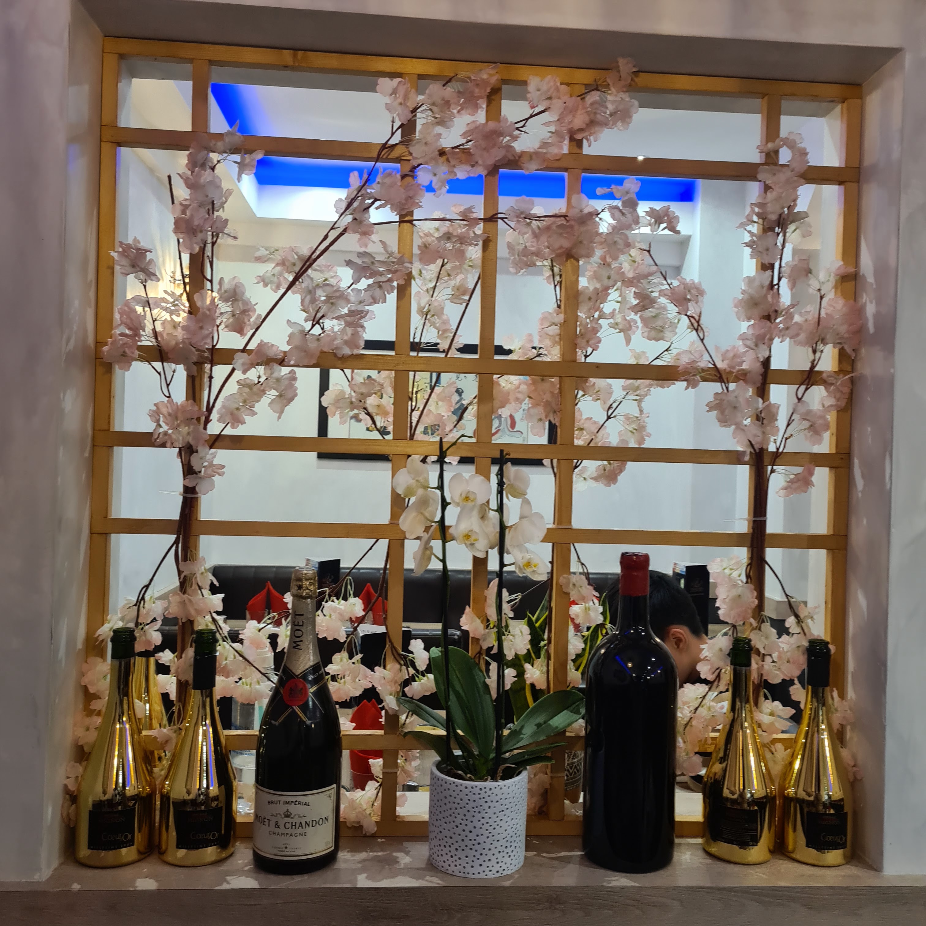 Déjeuner du 3 avril 2024 : rien de spécial mais j'aime le japonais. La salle du fond est beaucoup plus calme en période de pointe. Il y a deux cartes, une japonaise et une chinoise. Tadlak gris clair au mur. Fausses fleurs qui rendent encore bien. Sashimi servis sur de la glace ! Une première ! J'ai beaucoup apprécié ! 3 personnes au service : efficacité et rapidité ! Bravo ! Fleurs comestibles aussi : jolies. Locaux semblent neufs et sont propres. Merci à l'équipe de m'avoir servi en 10 minutes !!