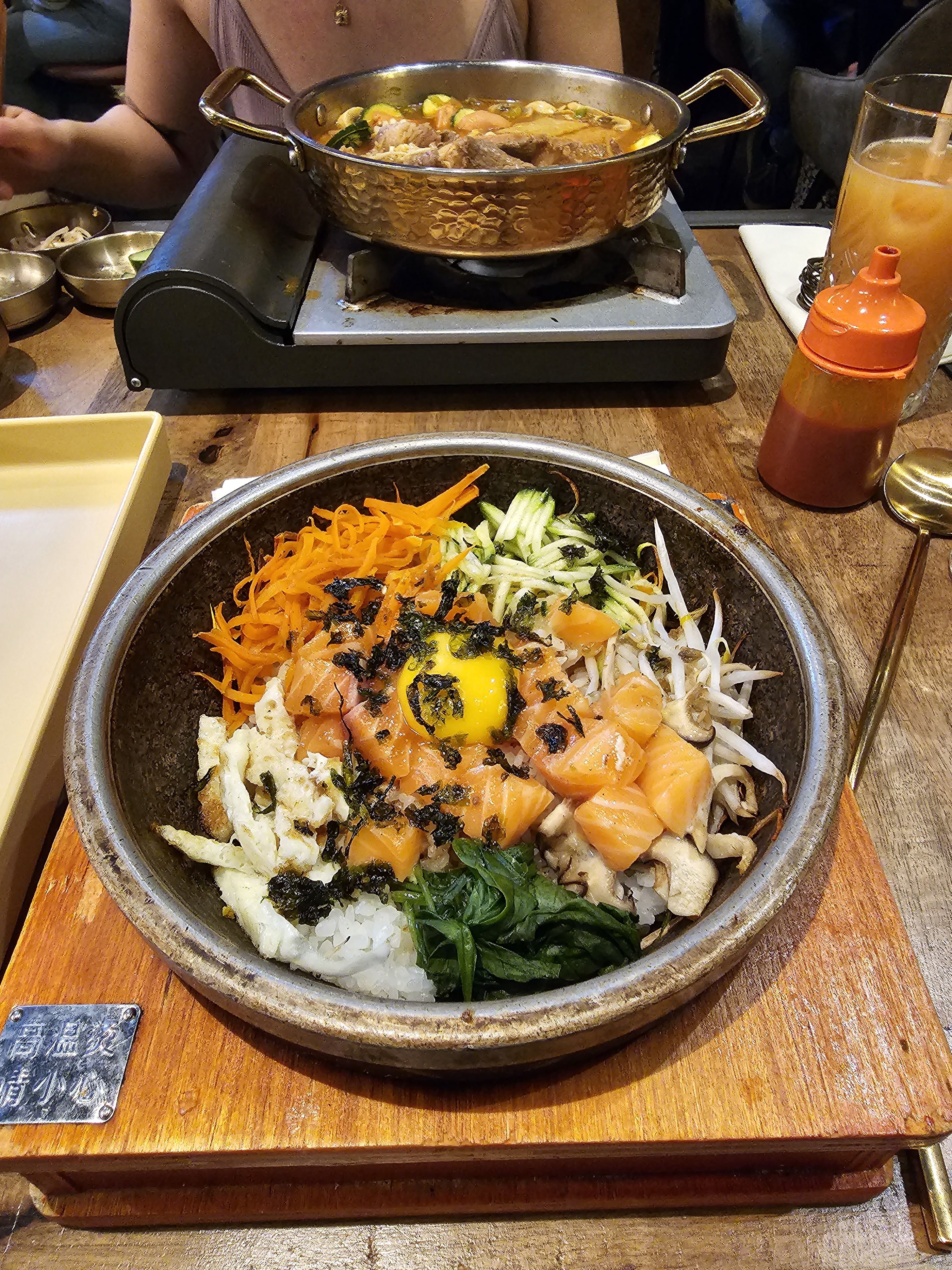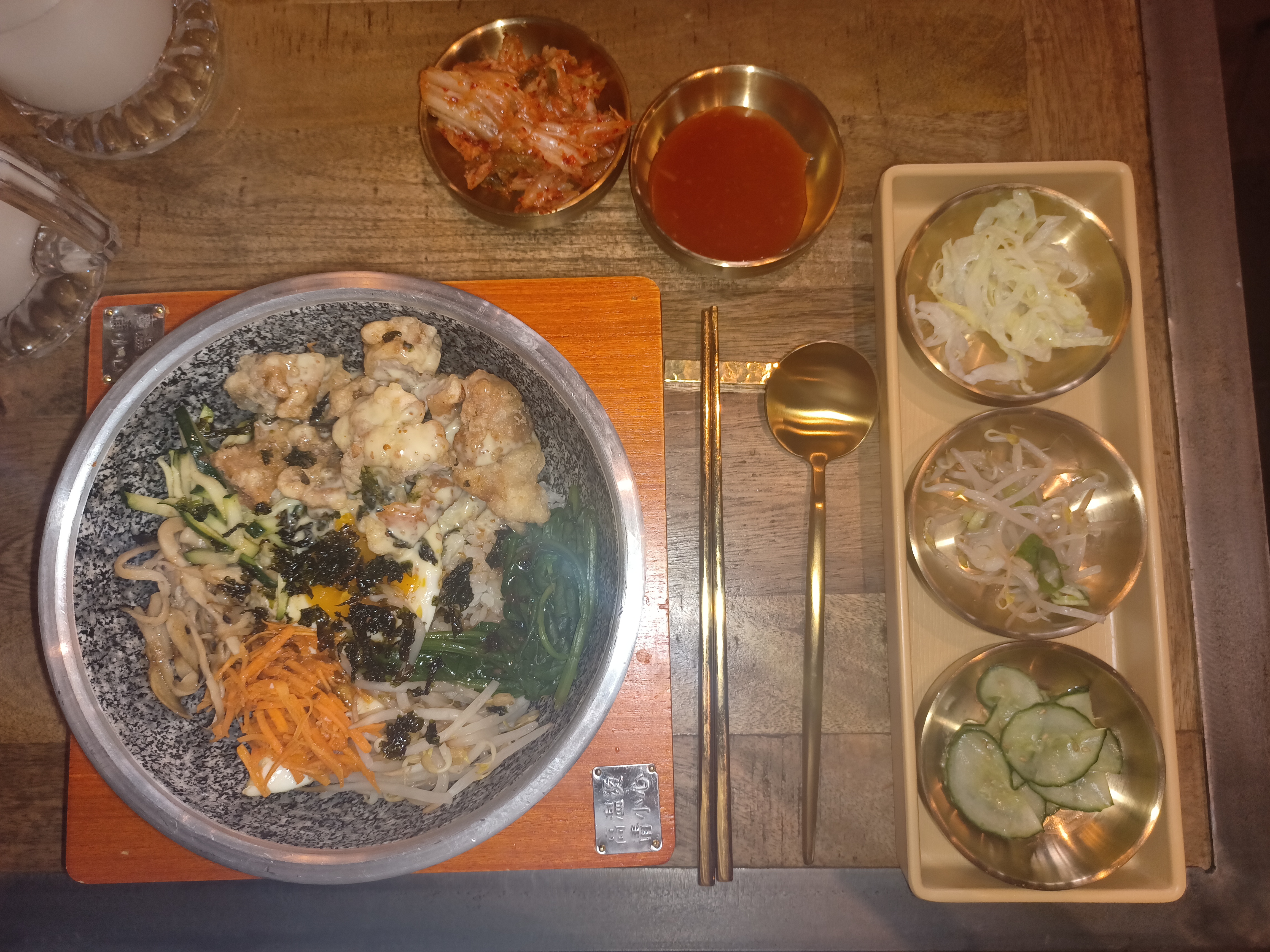 Venue pour la 1ere fois jeudi midi, le restaurant n’était pas complet mais il y avait du monde et ce qui m’a frappé c’est le calme du lieu, pas de musique assourdissante, pas d’éclat de voix, pas de gens pressés, stressés et stressants… J’ai pris un bibimbap poulet frit c’était très bon 😋avec les petits condiments qui vont bien. Le personnel est accueillant et agréable, très zen 👍