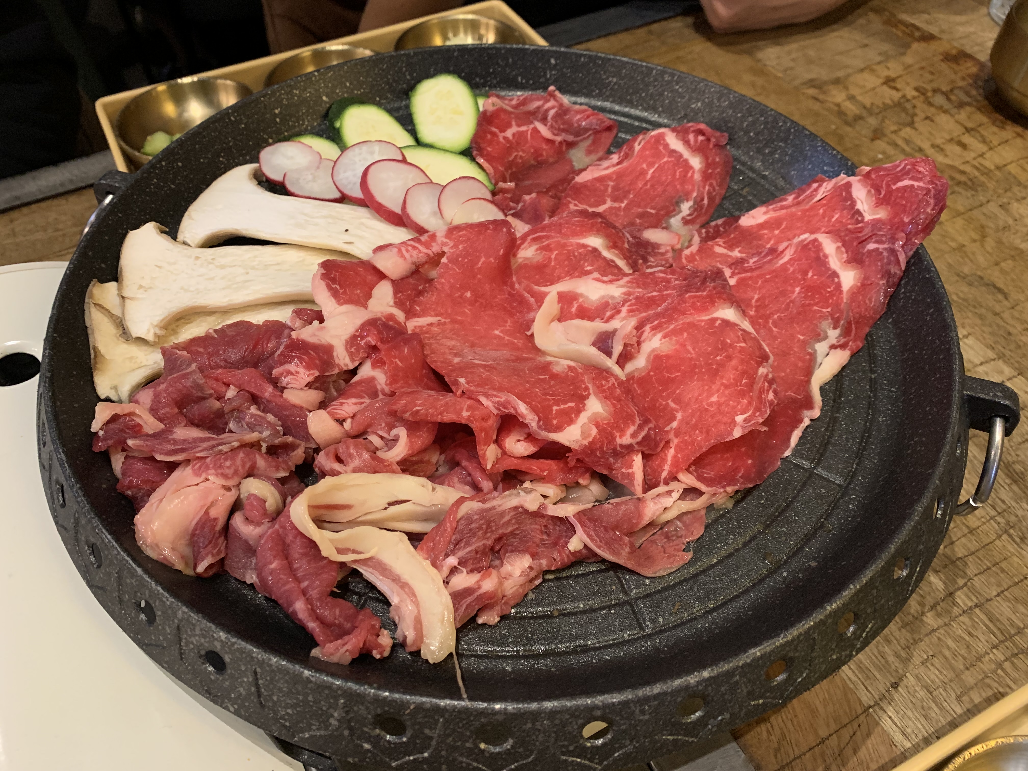 Première fois pour nous bbq coréen! Superbe viande ( dommage pour le Wagyu: indisponible) , un assaisonnement au top, des condiments superbes. Des serveurs à l'écoute, discrets et supers gentils. Tres bon RQP. À consommer sans moderation