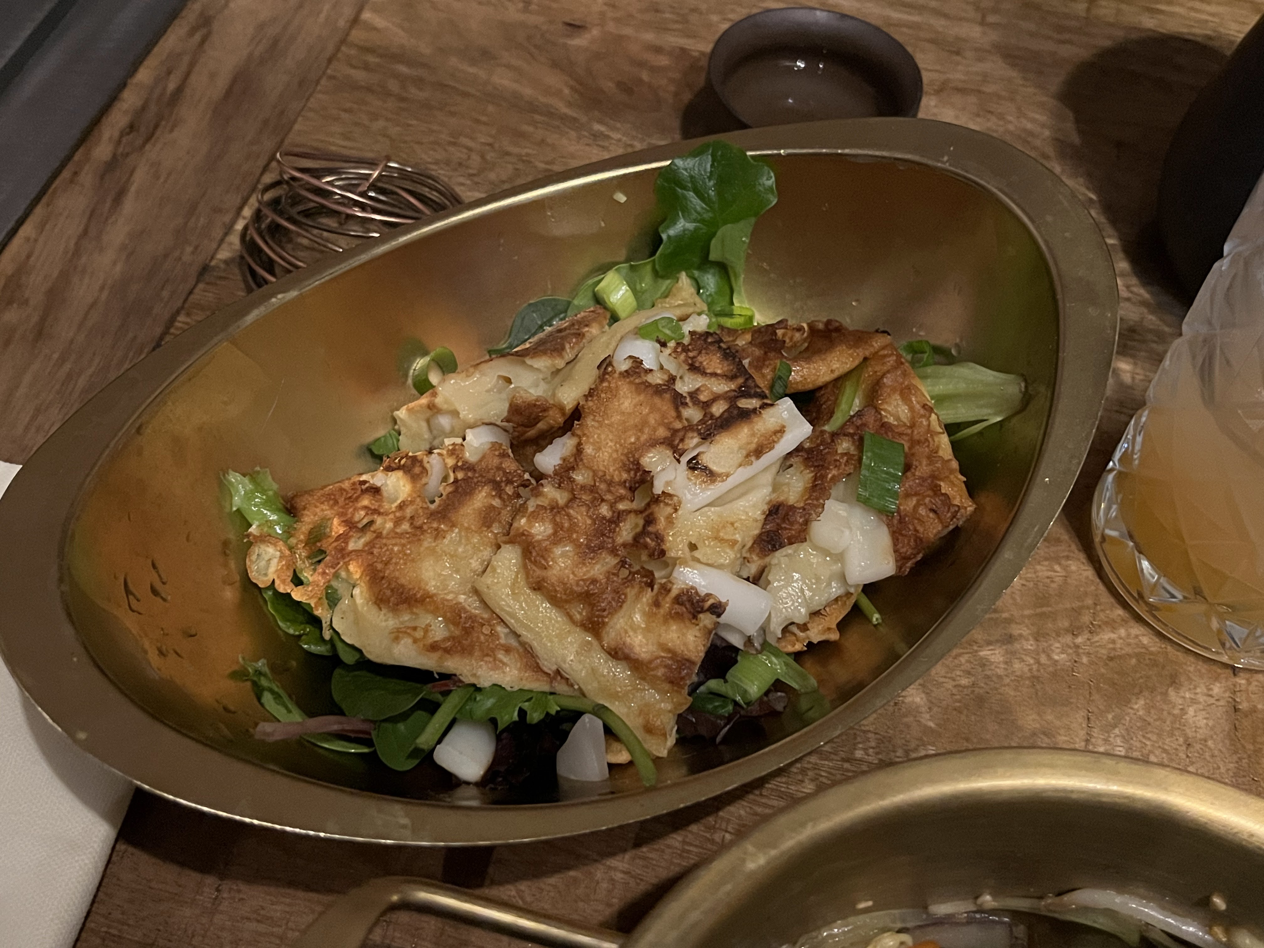 Tout était parfait J'ai pris la galette coréenne (Jeon) accompagnée d'une salade et il ne fallait pas plus. C'est très copieux. Personnellement je considère cela plutôt comme un plat qu'une entrée. C'était délicieux ! Je recommande !