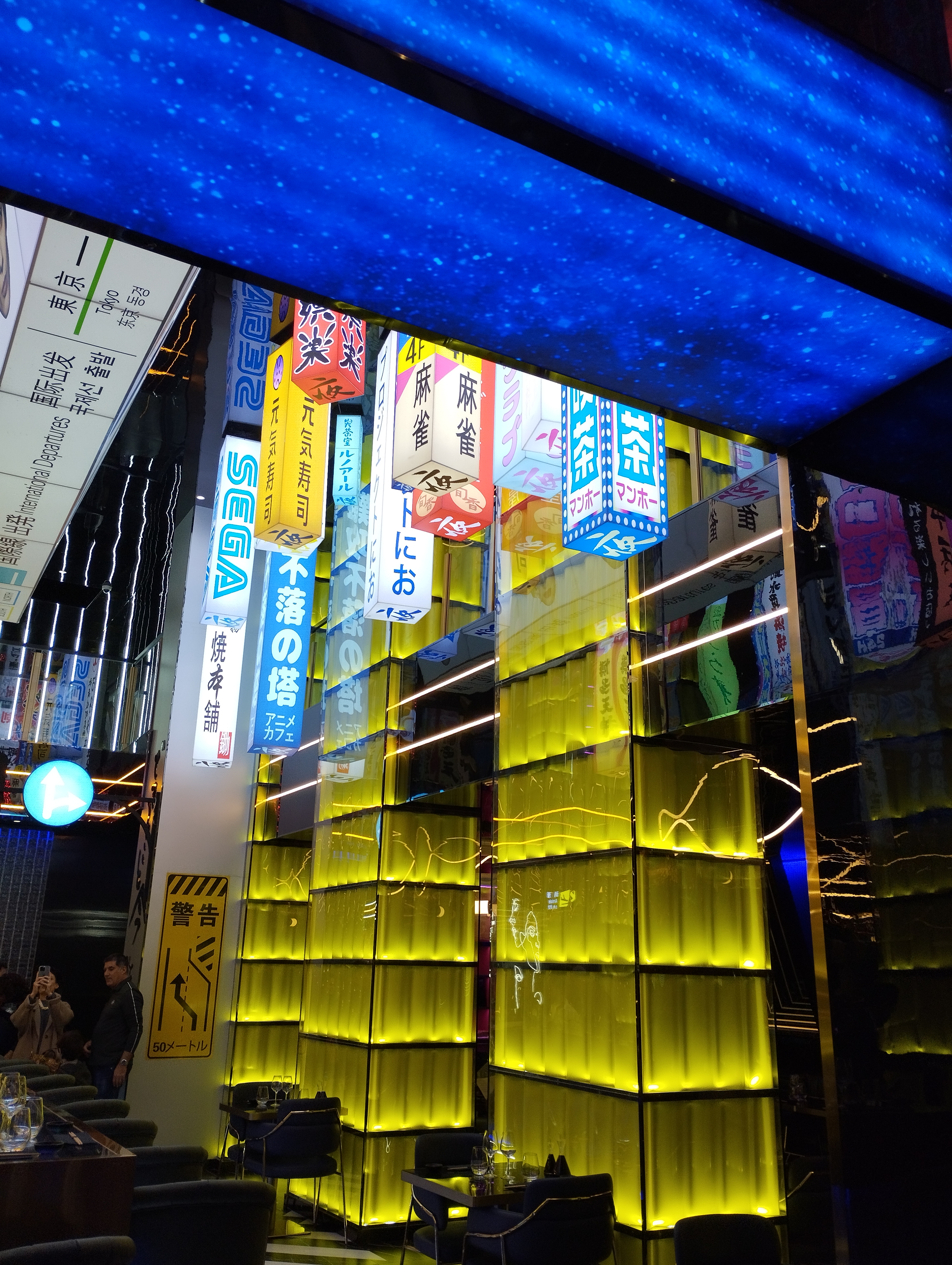 Edit: J'espère une réouverture rapide suite à l'incendie de Decembre 2023. Et souhaite tout le courage du monde à tout le personnel. Un seul mot me vient: surprenant. On ne peu pas s'attendre à un tel décors. Alors que j'en prenais encore plein les yeux à l'entrée, j'ai été chaleureusement accueilli et placé à table, là encore en avançant dans la salle, on ne sais plus où regarder dans ce décors de Japon moderne, de la lumière de toutes les couleurs, des jeux de miroirs, et bien d'autre... Une fois installé, le service est impeccable. La carte impressionnante et les plats excellents.