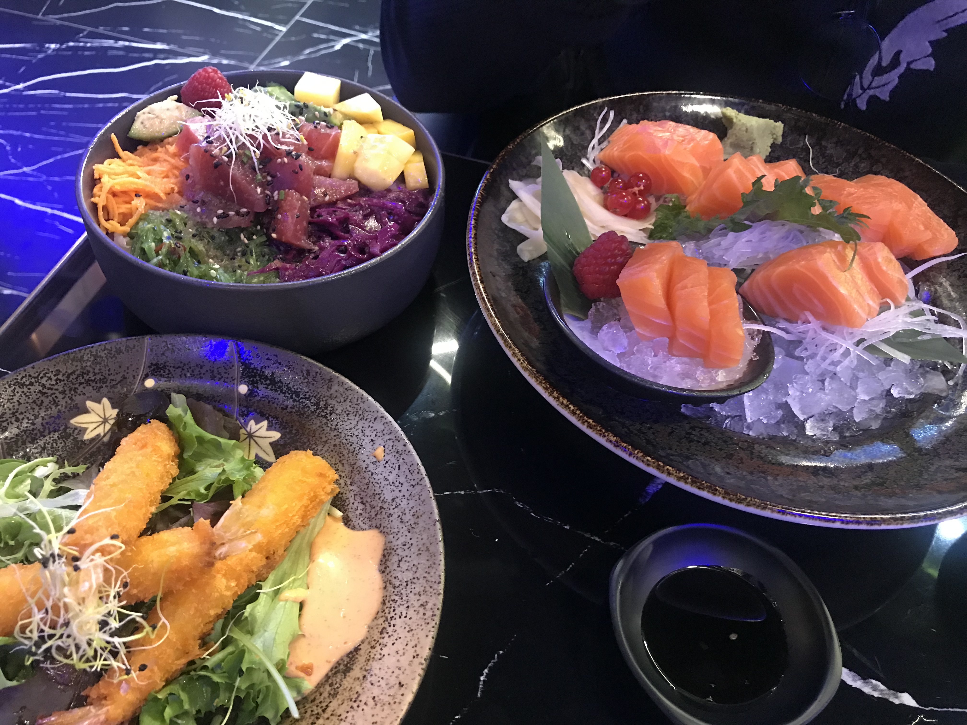 Déco hyper originale, poisson frais mais dommage que le riz soit beaucoup trop cuit. Du coup les rolls sont à revoir…. Pas vraiment d’ambiance…