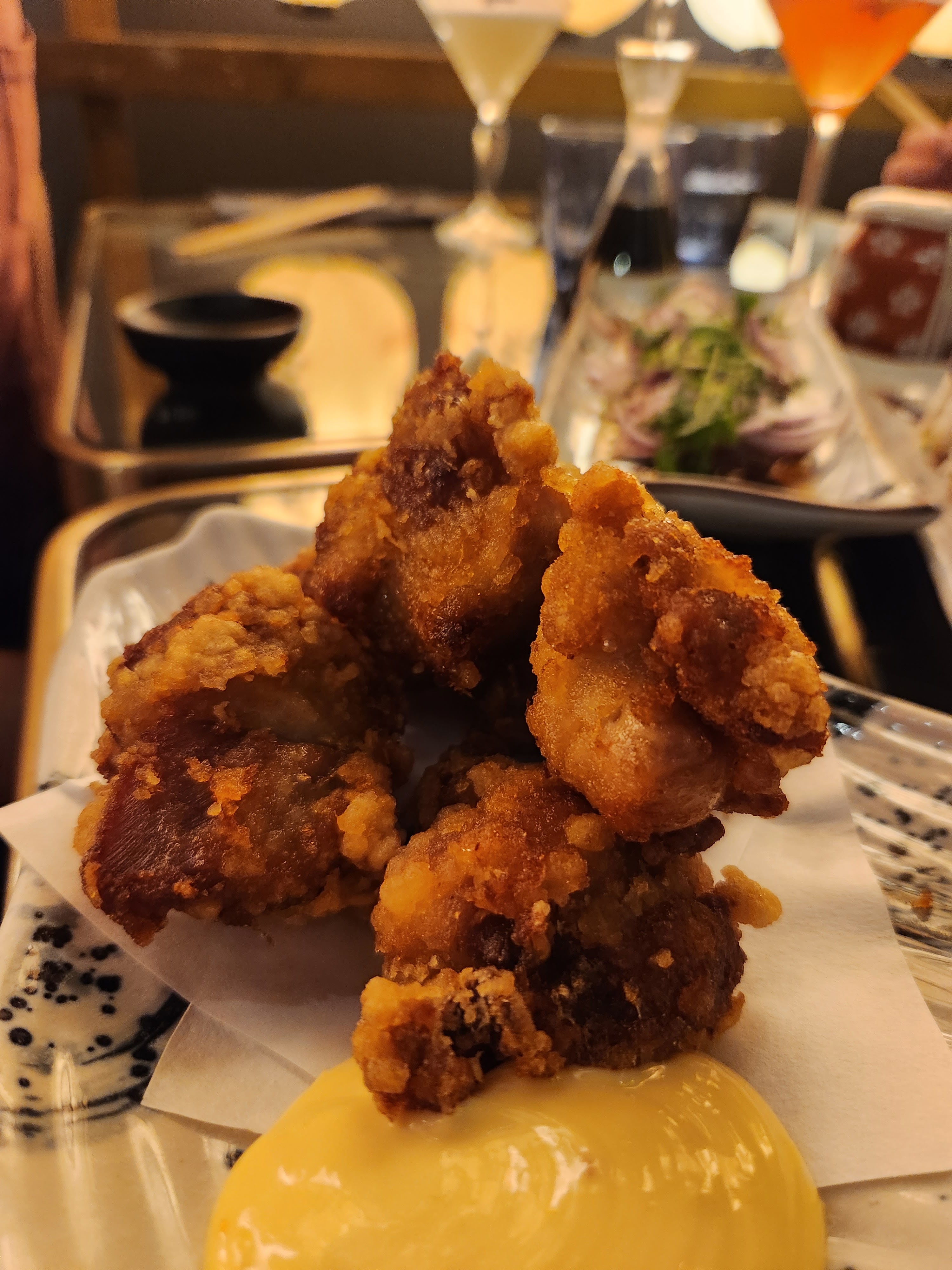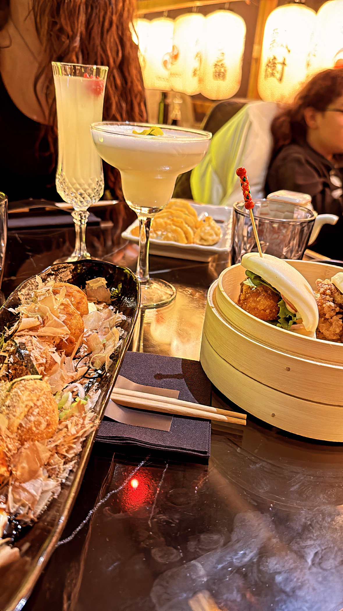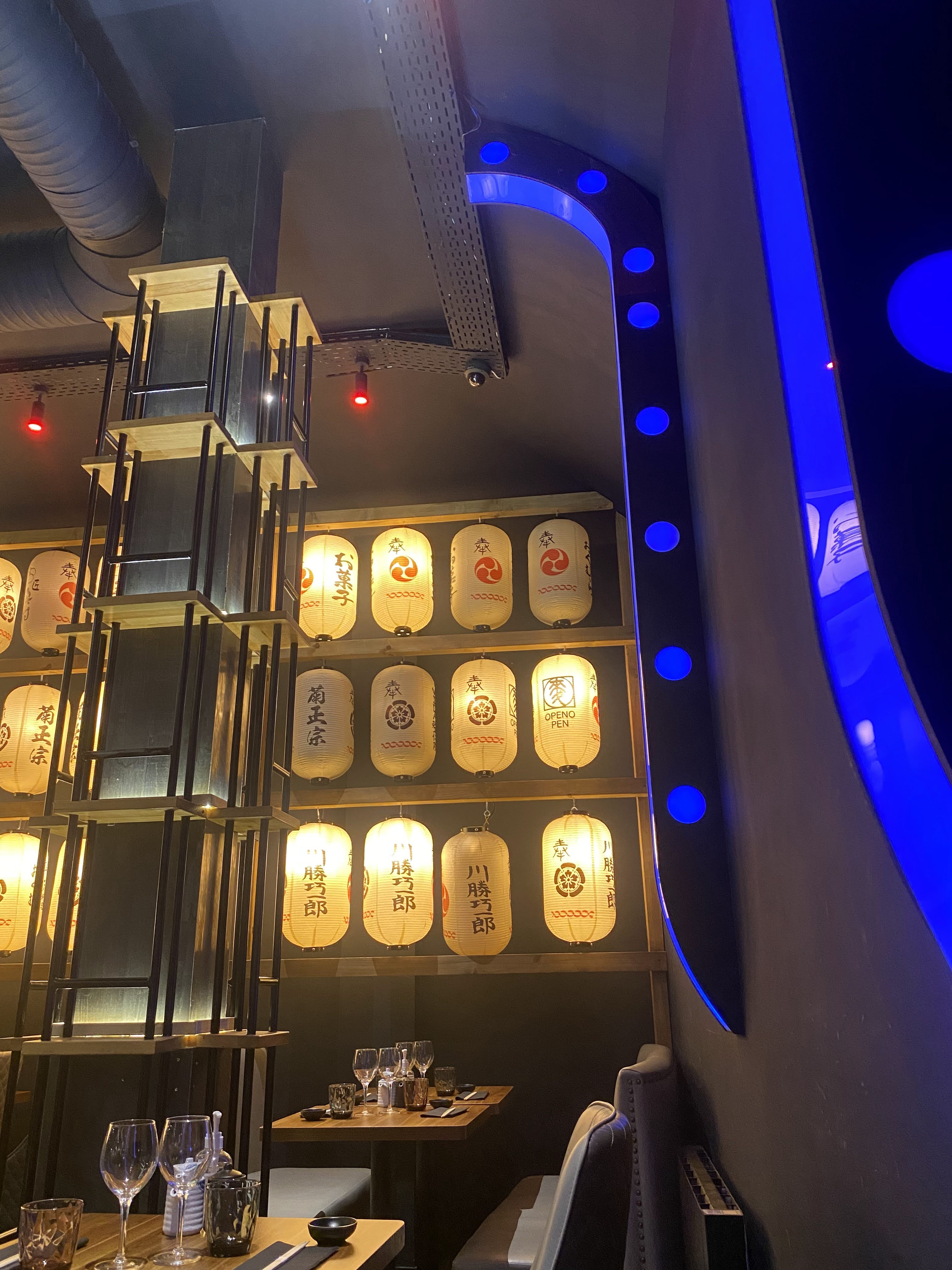 L'ambiance est très branchée, avec ce mélange japonais traditionnel et néons modernes. Le restaurant est immense tout en étant chaleureux. Très bons cocktails et tapas très originaux. Cependant, je n'appellerais pas le restaurant japonais authentique dans la mesure où il s'agirait plutôt d'une cuisine un peu fusion, entre baos et poulet frit, sushis roll sortant de l'ordinaire et desserts mélangeant savoir faire français et saveurs orientales. Mais c'était une très agréable découverte.