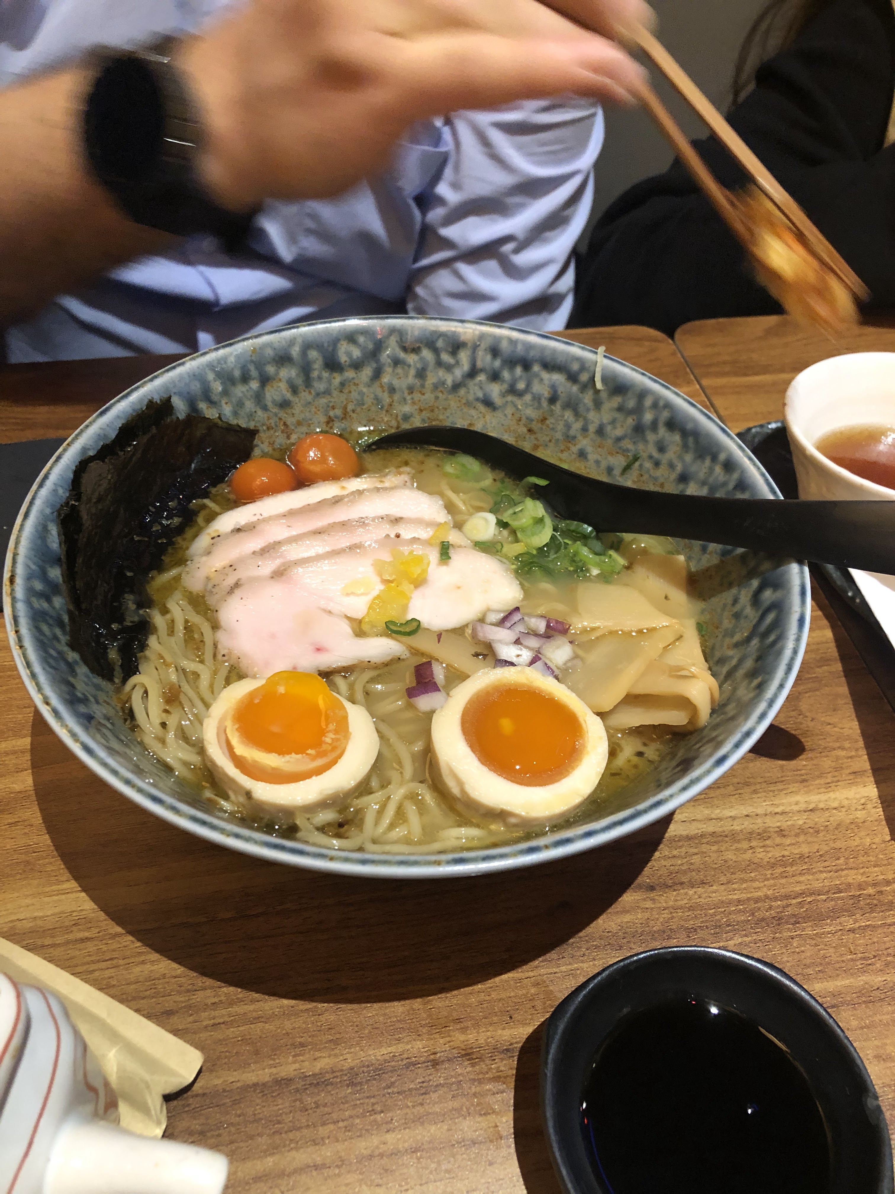 Magique. Nous avons mangé à 4 sans réservation et nous avons été installé super rapidement. Un plaisir. Nous avons eu le plaisir de déguster de superbes entrées (photos ci-jointes) et des ramen. Nous nous sommes régalés! Une petite pensée pour les serveurs qui sont toujours à bienveillants et souriant. Je recommande