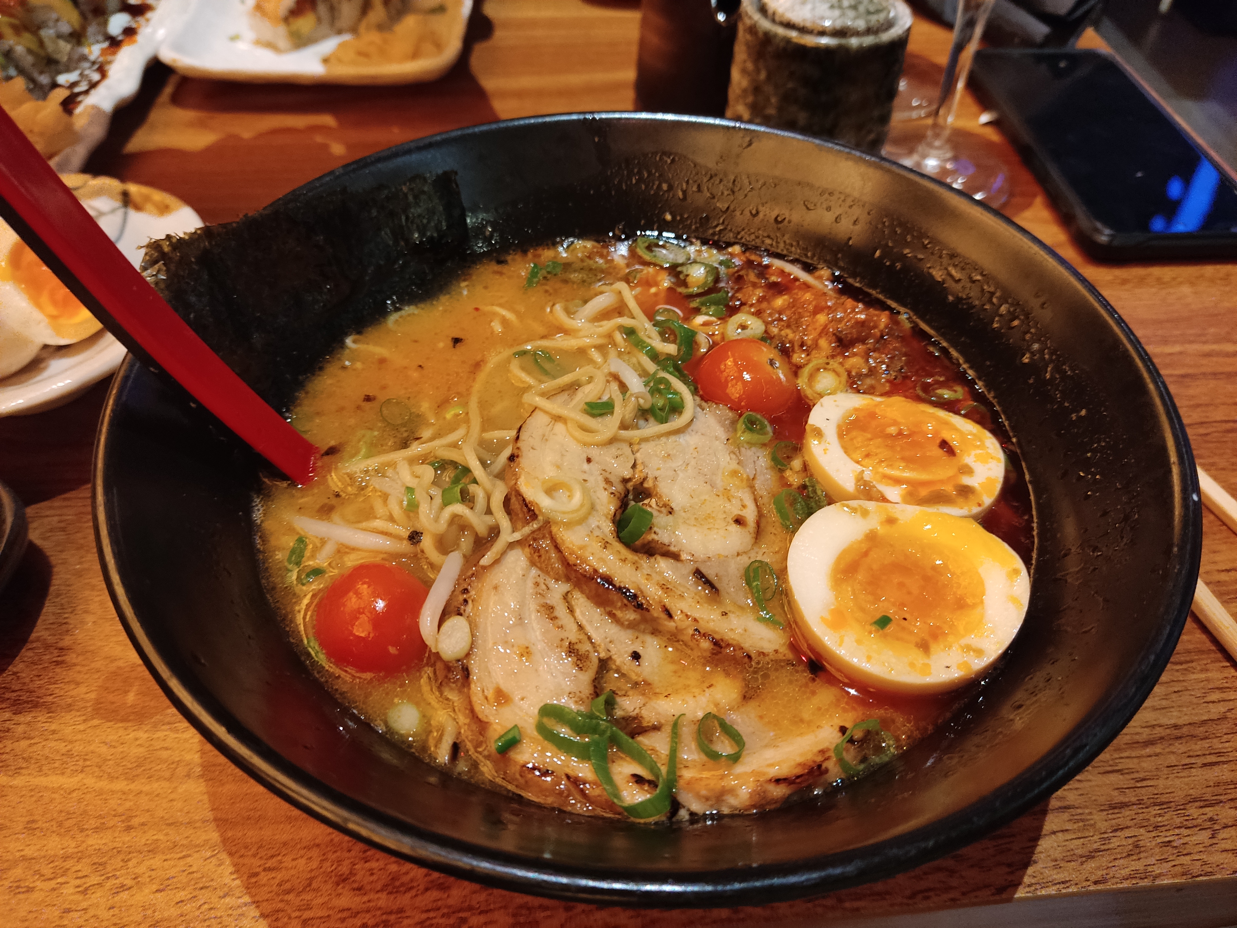 2eme fois pour nous. Encore une expérience très réussie. En revanche, j'ai opté cette fois pour un ramen et j'ai été assez déçu. Le bouillon est assez réussi même si pas assez epais à mon goût mais les nouilles ne sont vraiment pas très goûteuses, j'avais un peu l'impression de nouilles instantanées. Les entrées (boulettes de poulpe et gyoza) étaient en revanche très bonnes 😊