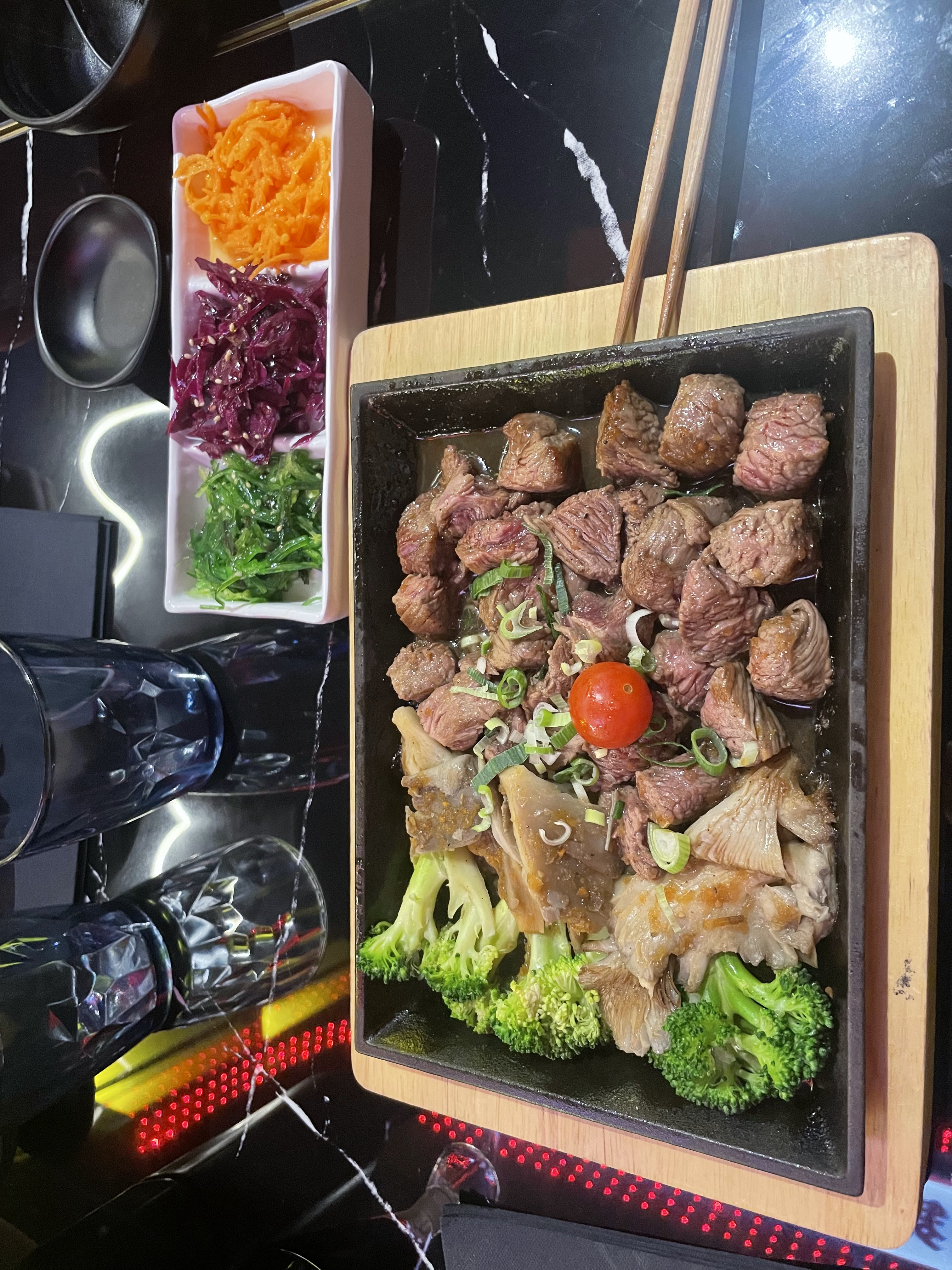 Expérience mitigée dans ce restaurant dont j’attendais beaucoup. Alors oui, le restaurant est magnifique, l’ambiance néon un peu futuriste est top, la salle est immense et très vraiment bien décorée. Le service très rapide, trop rapide ! On a voulu commencé par boire un verre et partager des assortiments, sauf que les plats principaux sont arrivés avant tout le reste. Et la nourriture était un peu… quelconque. Bref c’est chouette d’y aller une fois pour le cadre, mais pour le plaisir gustatif, je préfère aller voir ailleurs.