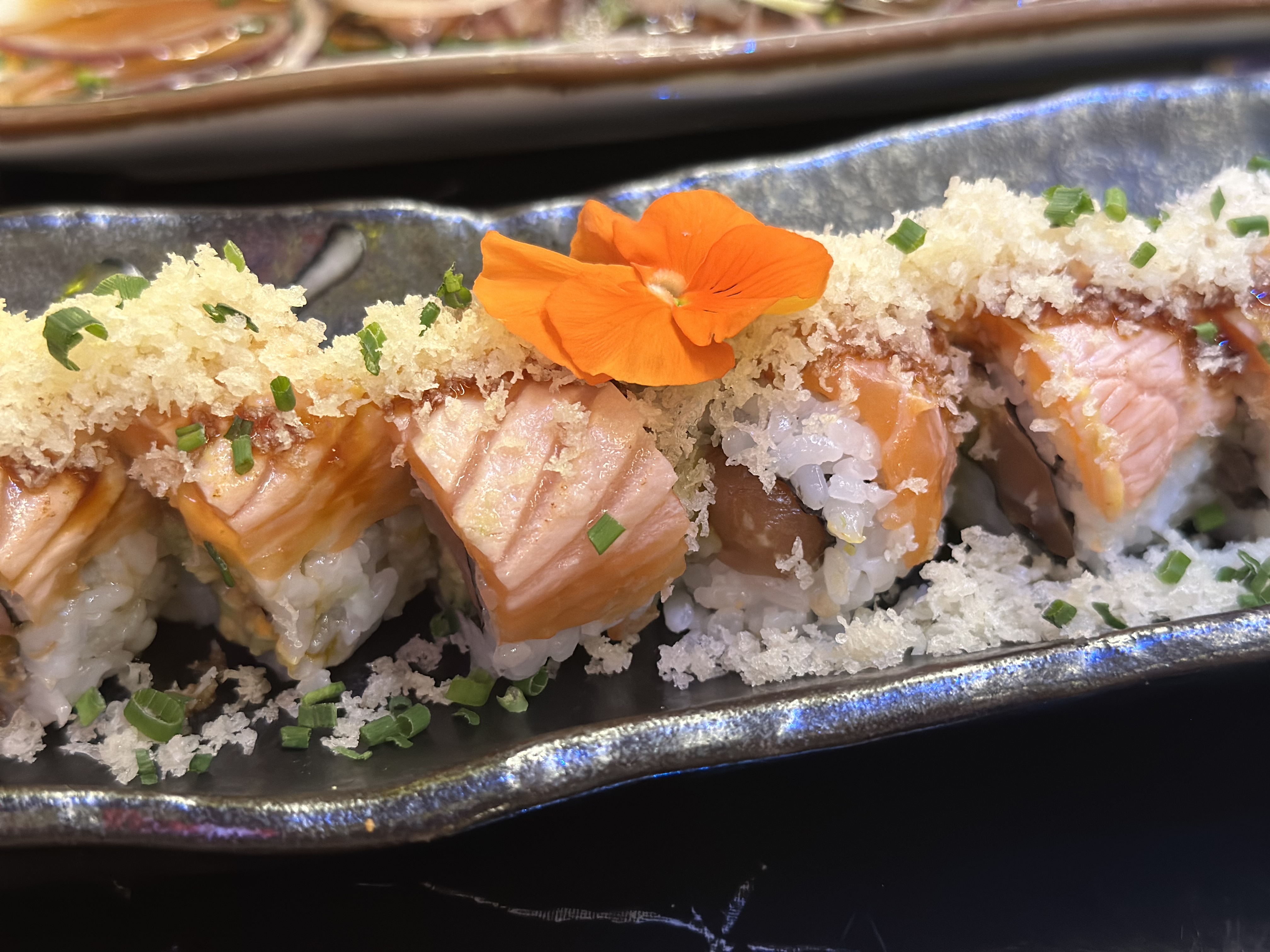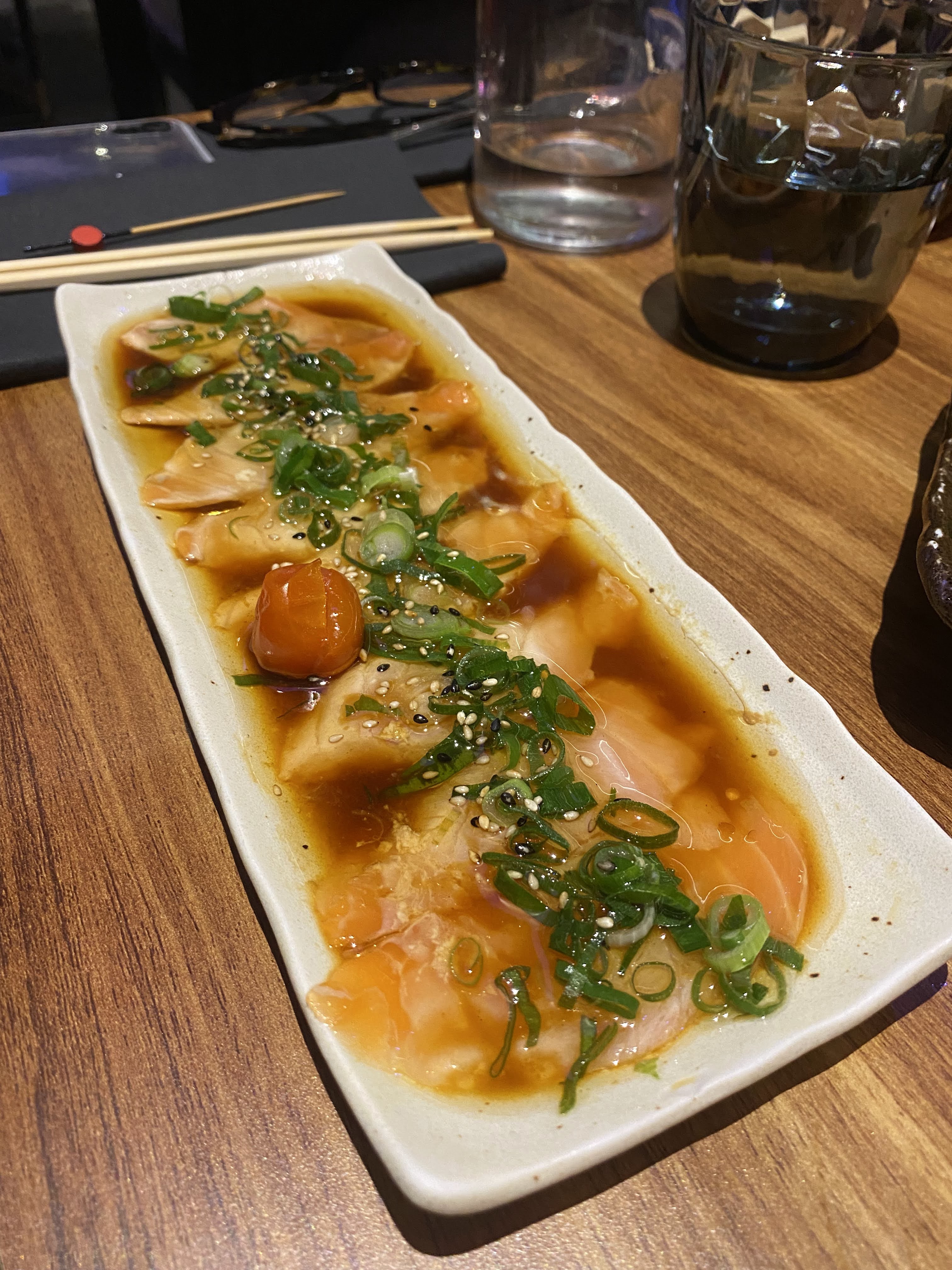 Belle découverte. Un bon équilibre des saveurs pour leur nouveau tataki saumon au piment ! Ambiance sonore correcte malgré le monde.