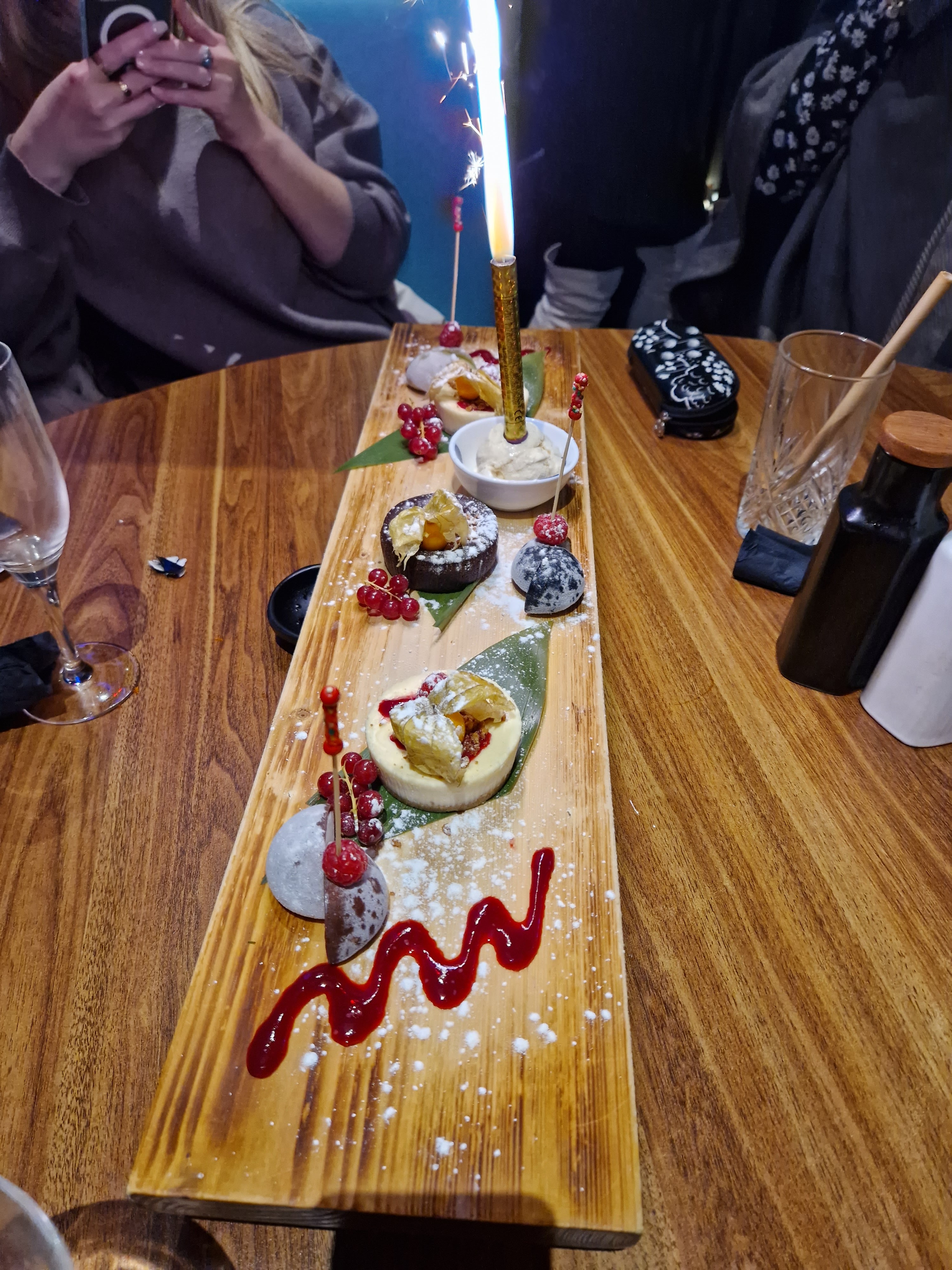 Tout était parfait de l'entree, aux plats jusqua la serveuse qui nous a très bien conseillée,.. Aimable souriante Juste grace a elle je mets 5 etoiles, j'aurais mis un 4 a cause du dessert anniversaire EXTRÊMEMENT déçu le fondant au chocolat etait TROP cuit limite bruler, le mocchi n'etait pas A notre gout et le cheesecake sans commentaire Nous nous attendions a autre chose, peut etre revoir sa farandole étant donné le prix exorbitant que vous lui accorder NOUS reviendrons sans la consommation de dessert malheureusement