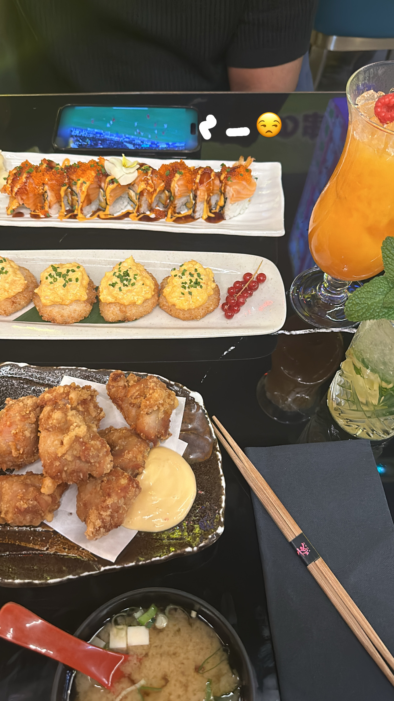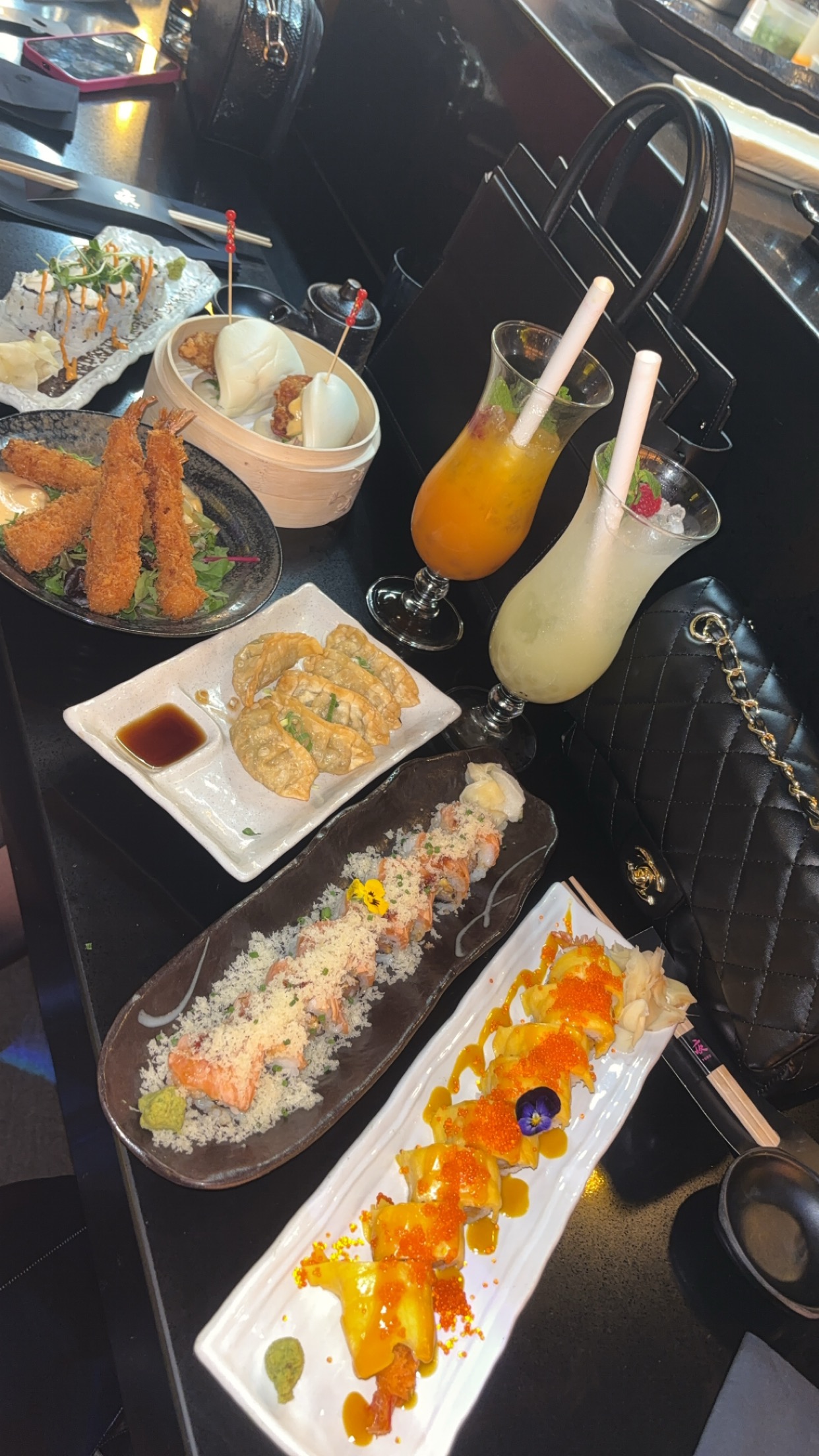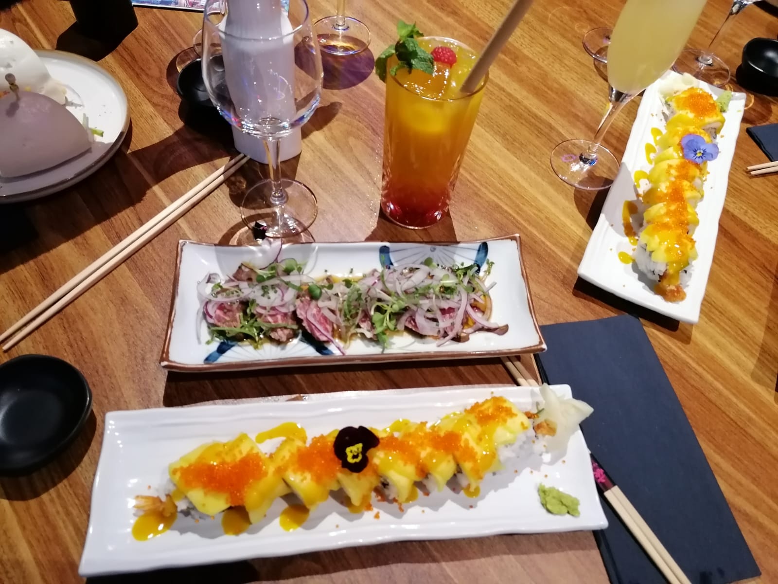 Tout était très bon. Cocktails, tapas, rolls. La carte propose beaucoup de choix. Le service est ultra rapide, il n'y a pas d'attente c'est appréciable. Le personnel est souriant et très aimable. Un petit bémol sur la propreté des cartes et des murs qui étaient recouverts d'éclaboussures à notre table et aussi agrandir le choix des rolls végétariens.