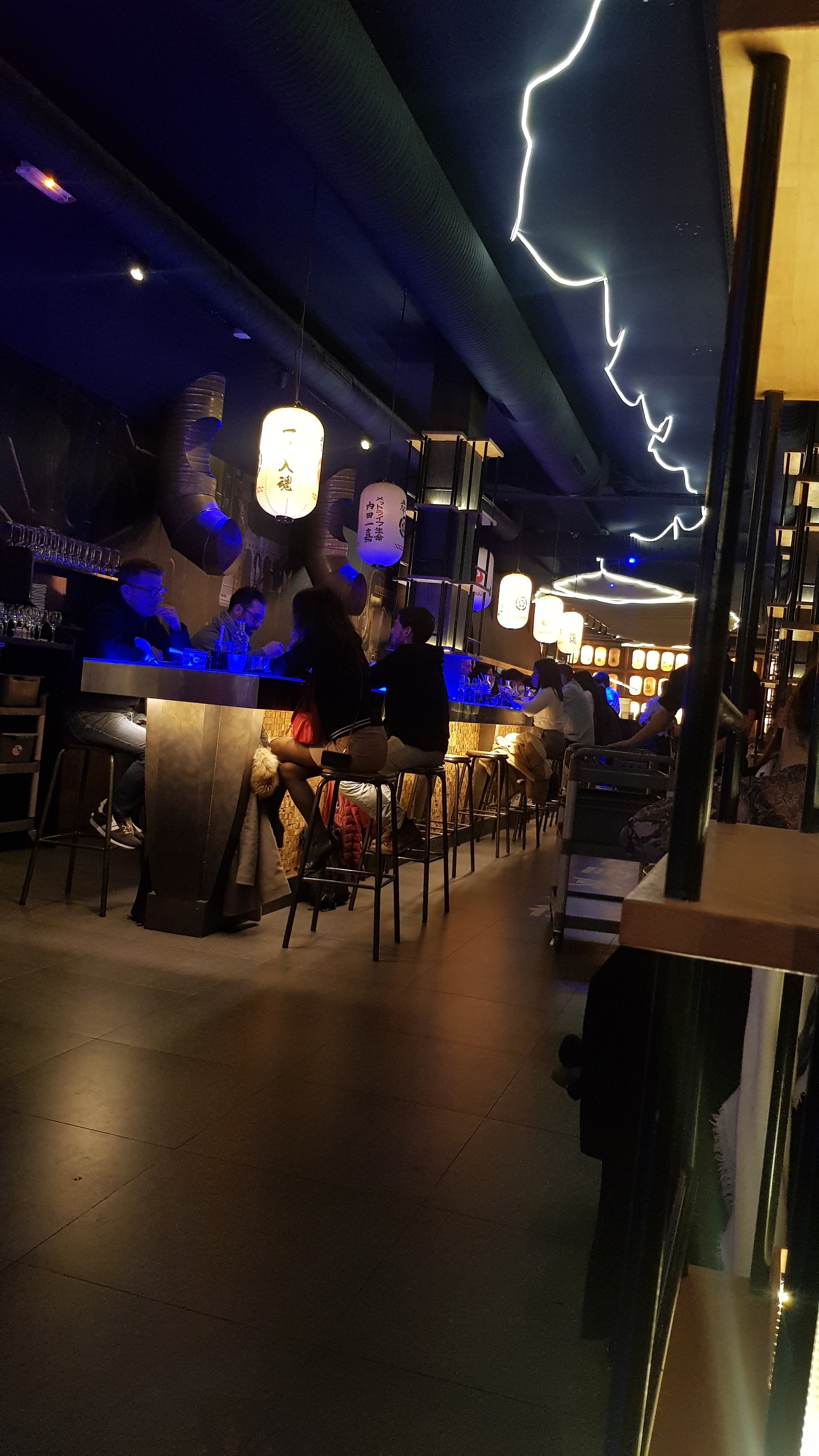 Restaurant assez bon. On y retrouve de la fusion food a base de gastronomie japonnaise. J'ai été agréablement surpris par plusieurs plats. C'est un endroit idéal pour un repas entre amis ou en couple (l'ambiance tamisée et les néons sont au rdv) Malgré tout on a quand même le sentiment que le rapport qualité-prix n'est pas forcément intéressant. C'est peut-être le prix a payé pour le décors instagramable