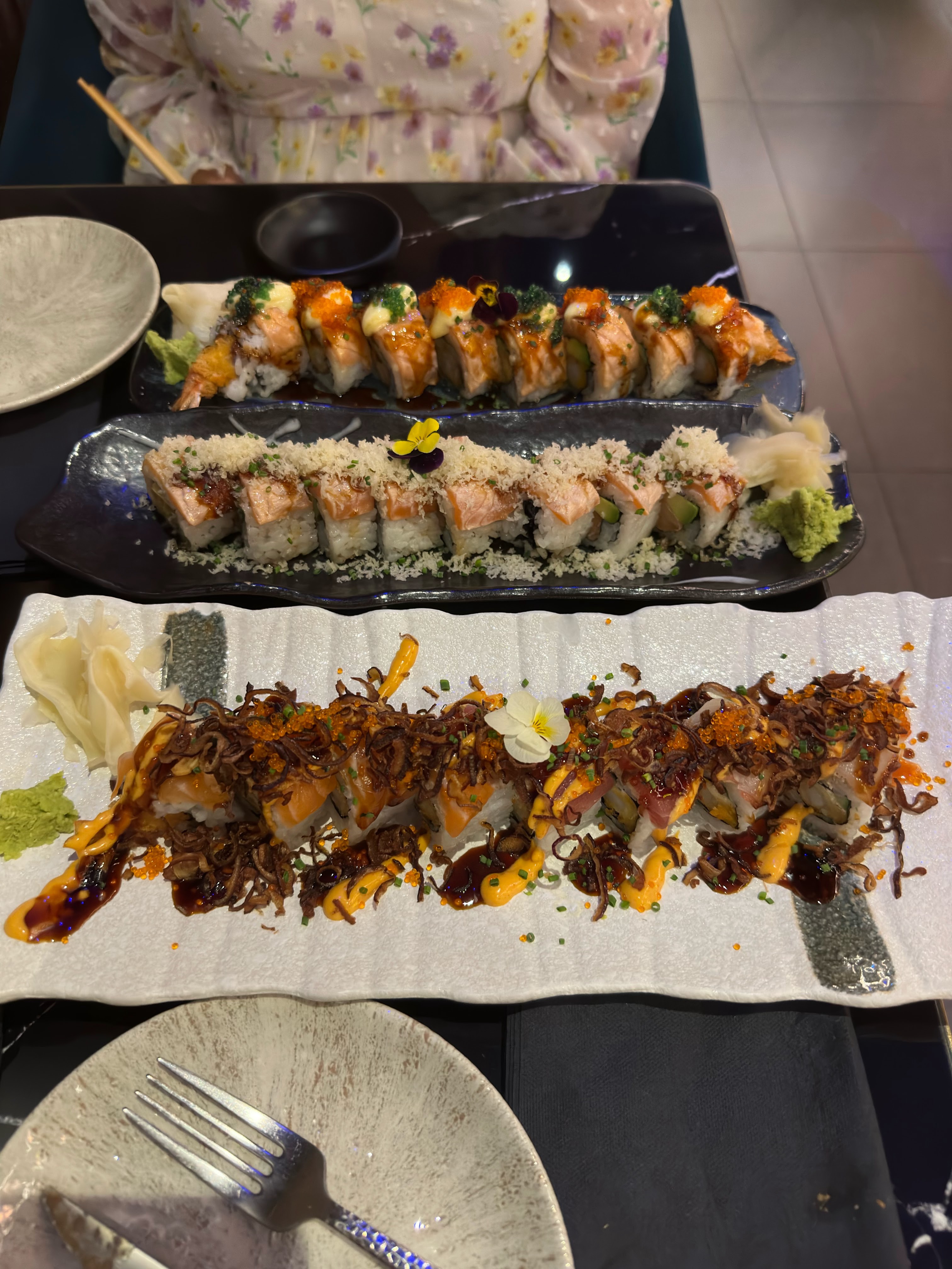 Pour commencer, le lieu a été facilement trouvé. La présentation des tables étaient très jolies, le restaurant est assez grand (de ce que j'ai pu voir). L'accueil ainsi que le service ont été très rapides. Le personnel est gentil. La cuisine était vraiment bonne, notamment les rolls signatures BMW, ils étaient tellement bons que nous en avons recommandé. Les mocktails étaient bien présentés et également très bons à boire. Nous avons passé un très agréable midi autour de ce repas pour fêter l'anniversaire de ma mère. Je vous recommande cet endroit 😊