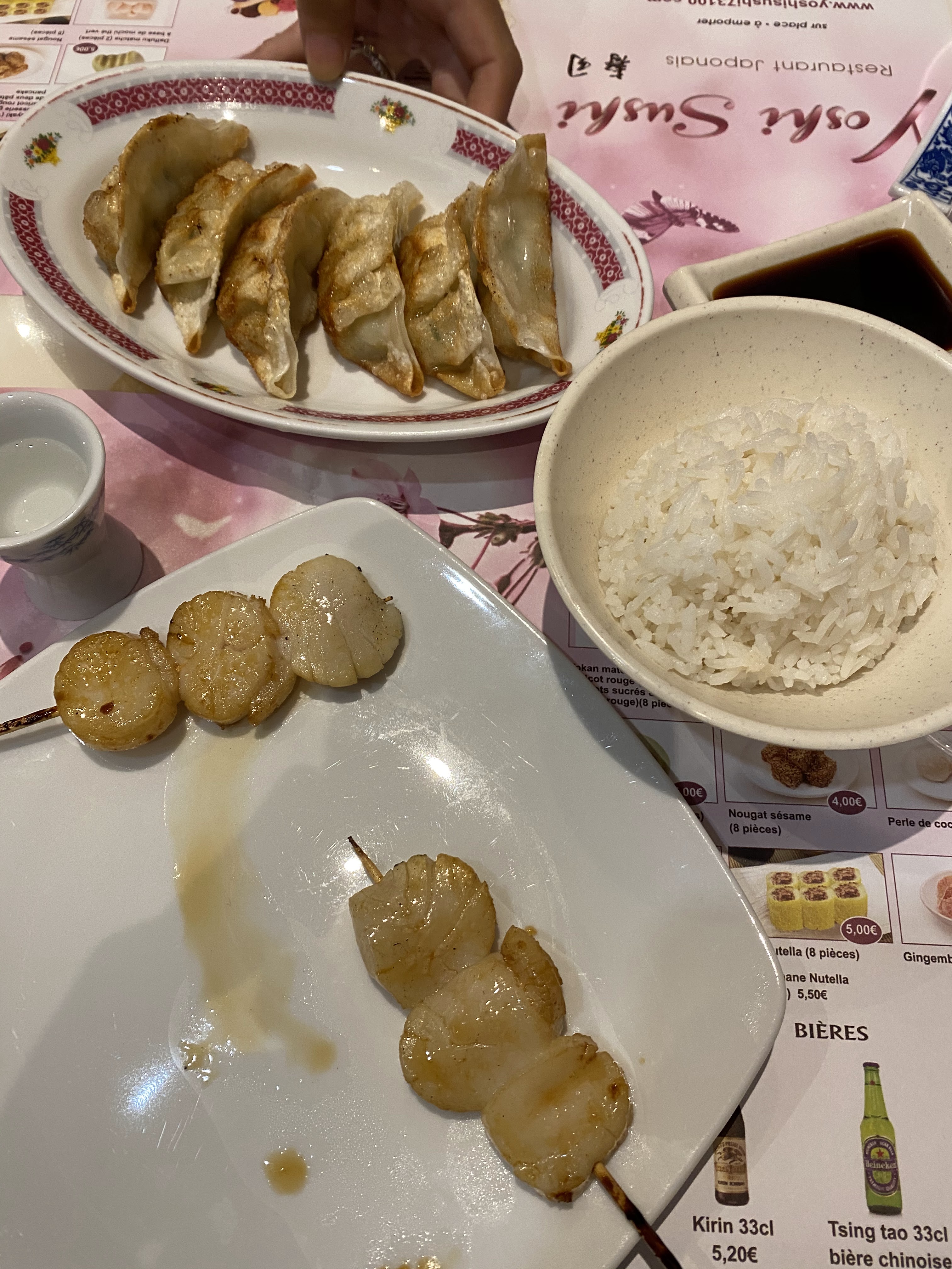 .Sashimi fait à la demande gyosa grillés pas trop gras service rapide et très sympathique. Resto très propre et ...... les wc aussi. Donc sans soucis à recommander.
