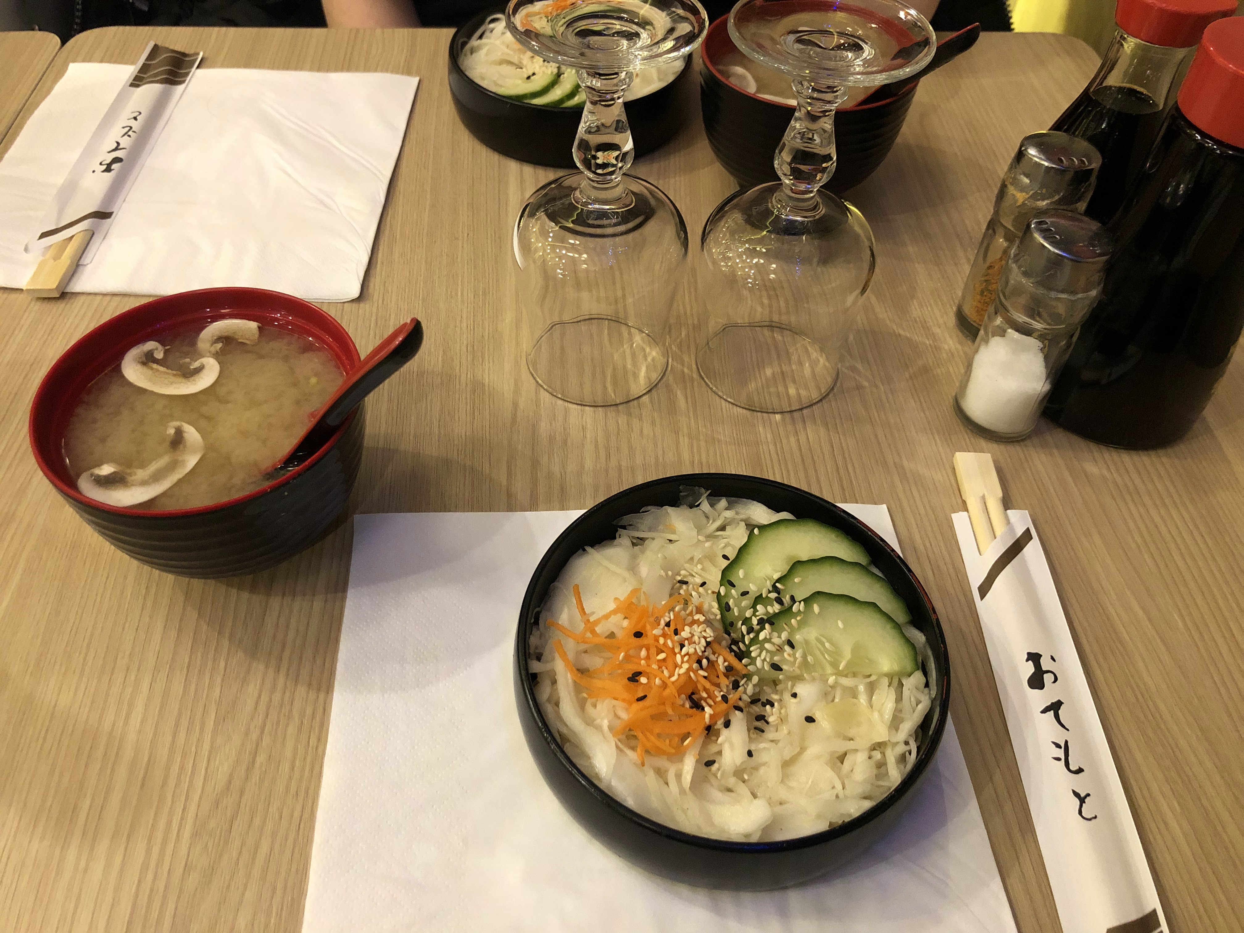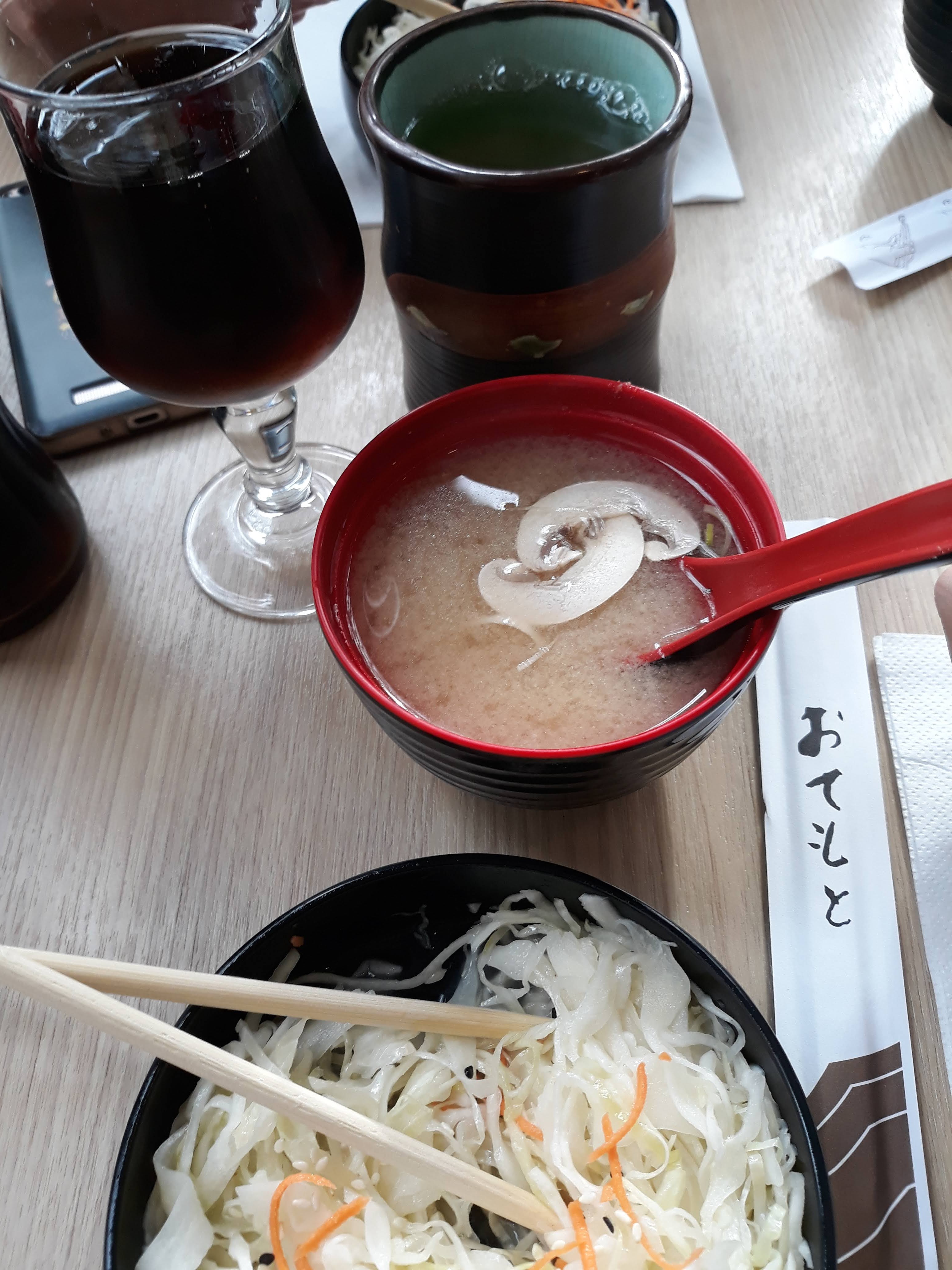 Une très bonne expérience. Une vrai soupe avec du goût et pas un vulgaire bouillon. Une salade très bonne et pas microscopique. Sushi avec un poisson de bonne qualité et de taille conséquente. Les california sont aussi assez gros et le riz qui va avec est bon. Les brochettes boeuf fromage étaient bonnes sans être exceptionnel bien que légèrement plus grosse que la moyenne. Seul bémol, la sauce soja que j'ai trouvé vraiment salé.