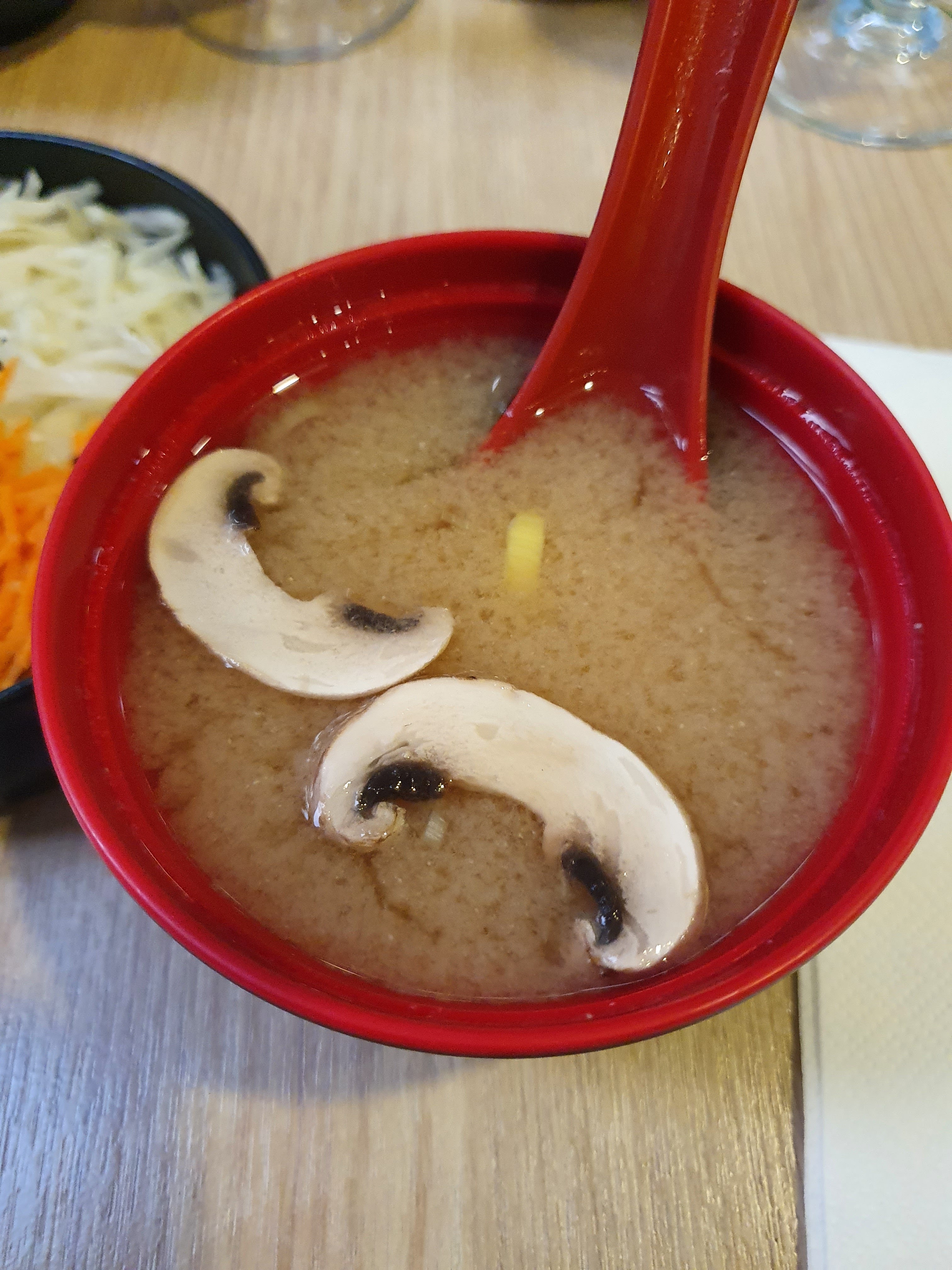 Les proportions sont trop petites que ce soit :california; sushi ou surtout brochettes qui étaient vraiment MINISCULES !!!) le prix du menu n'est pas en adéquation; surtout que j'y suis allée pour le midi jour de semaine!!! Après il faut reconnaître que le cadre du restaurant est sympa, c'est propre, et les serveuse sont gentilles et aimables;la soupe meso est Bonne; malheureusement ça ne suffit pas, je n'y retournerai pas, trop cher pour ce que c'est. Bonne amélioration et bonne continuation 😊