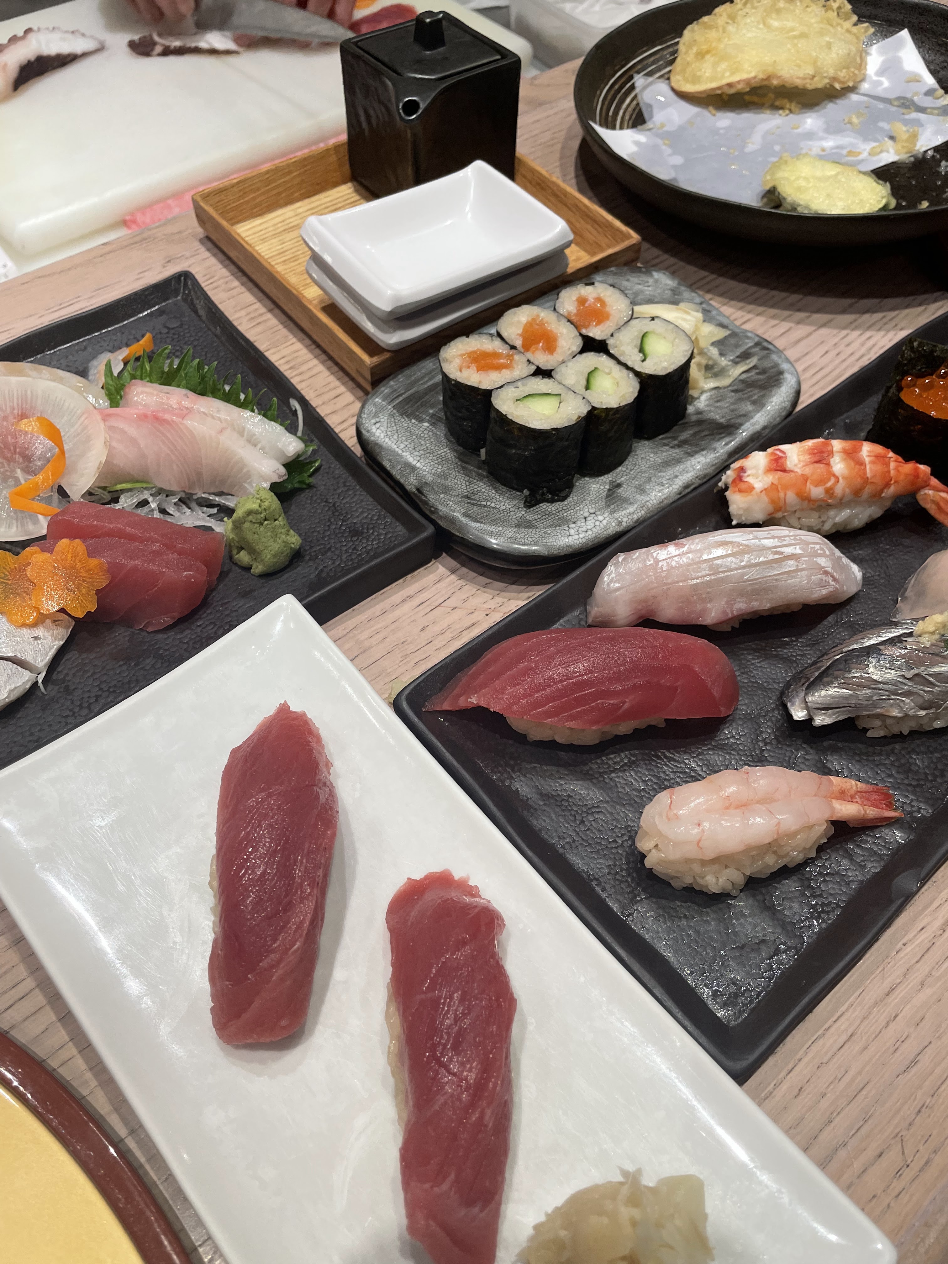 Nous avons mangé à 4 dans ce beau restaurant ce samedi soir. D’ailleurs grosse dédicace au serveur qui nous a bien fait rire ! Le poisson est frais et très bon, il dépasse du riz pour les sushis et ça on le trouve pas partout. Tous les poissons fondent sur la langue. Nous avons prise temps de manger alors qu’il y avait de l’attente et personne nous a demander de nous dépêcher, ça c’est top ! Je peux pas vous mettre de photo en passant par le téléphone 😭