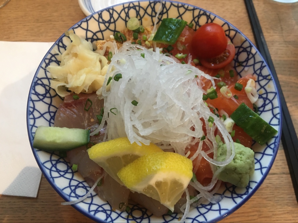 Accueilli en japonais, nous y sommes allés pour déjeuner (donc aucune idée des prix pratiqués le soir) et nous avons commandé shirashi, bento (plat du jour) et un shakedon. Le poisson était de bonne qualité (heureusement), les plats préparés minute et servis rapidement. Pour un déjeuner d’affaire ou en famille je recommande !
