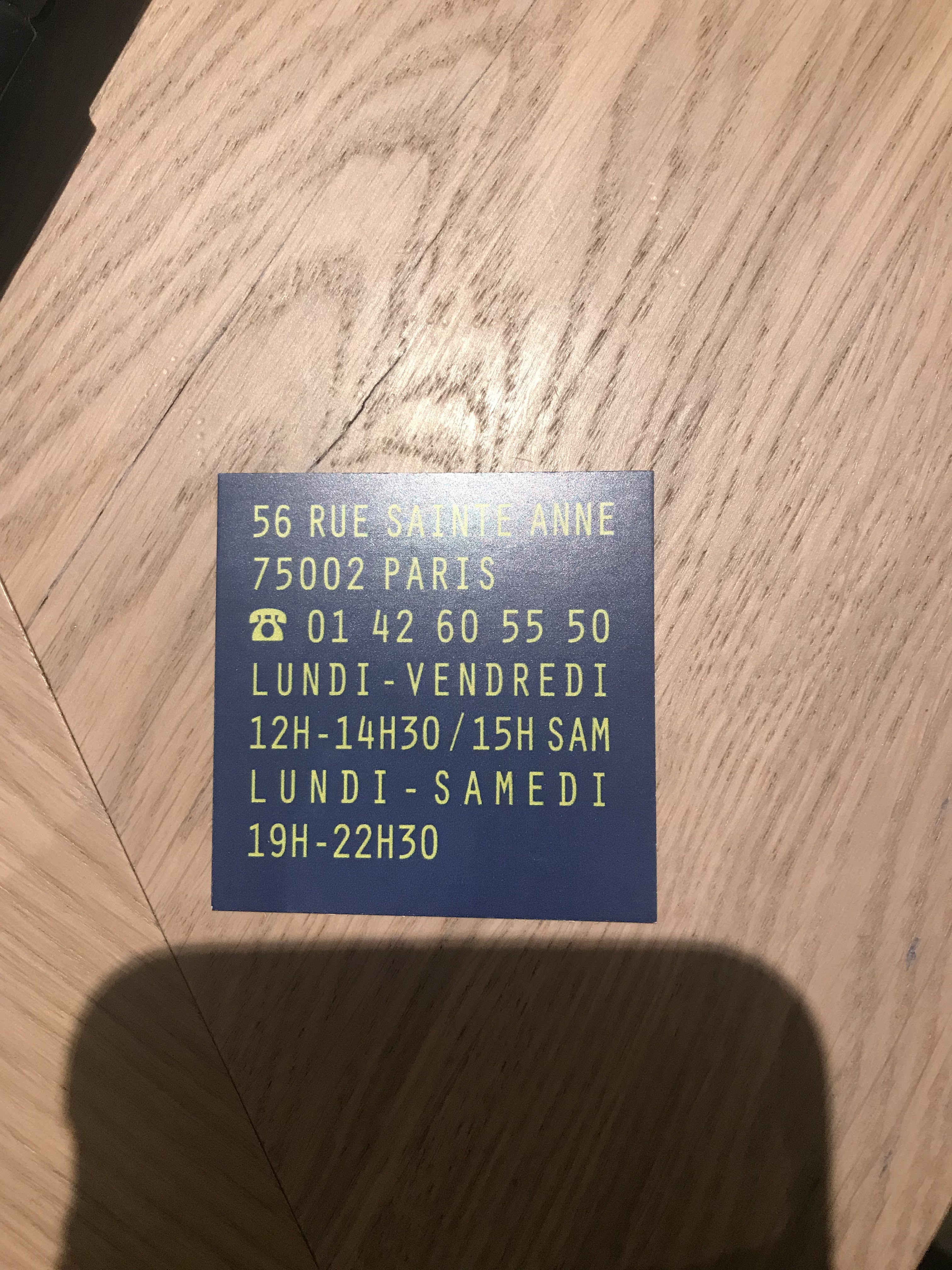 Resto japonais de la rue Sainte Anne dans lequel il est possible de réserver, ce qui représente un avantage indéniable dans le quartier. Plats de sushi, sahsimi excellents, Udon au diapason, tempura au top servis dans une vaisselle très sympa. Les tarifs sont corrects mais nous sommes ici dans un vrai japonais, donc compter quand même environ 40 euros par personne si on veut se faire un peu plaisir.