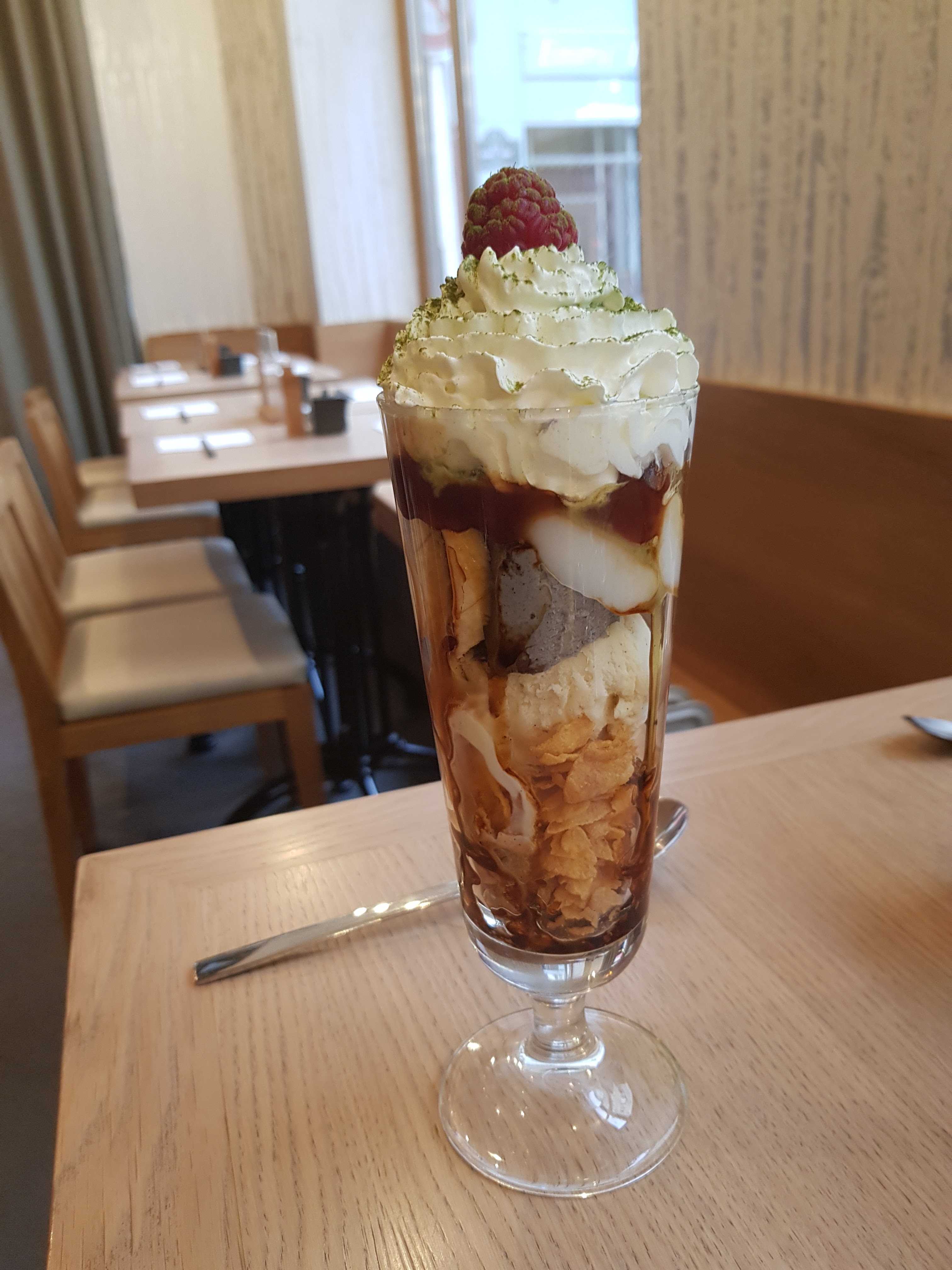Pâtisserie délicieuse.. Cadre hyper cosy, avec possibilité de manger au comptoir devant les cuisiniers japonais.. Endroit à recommander !!
