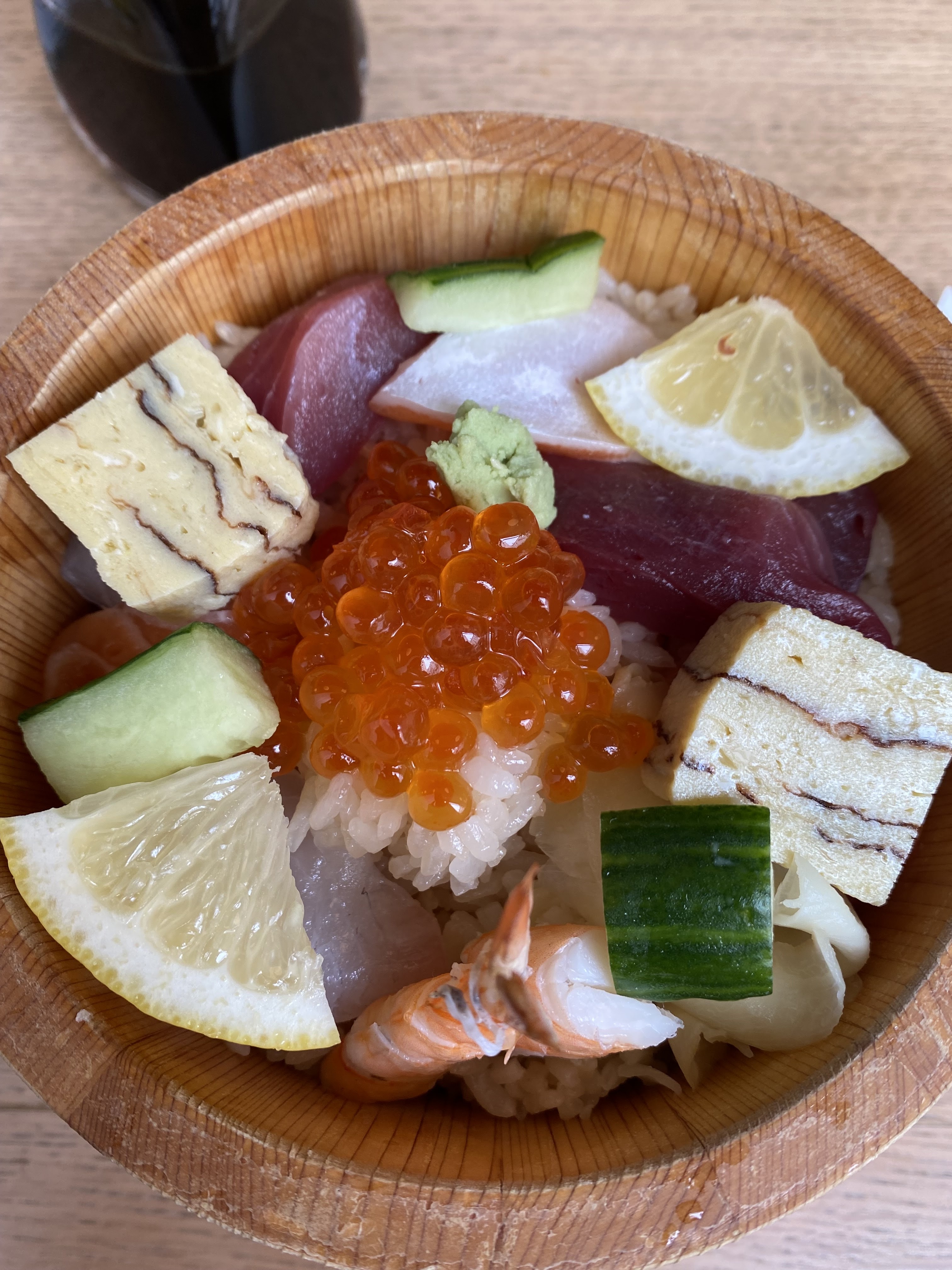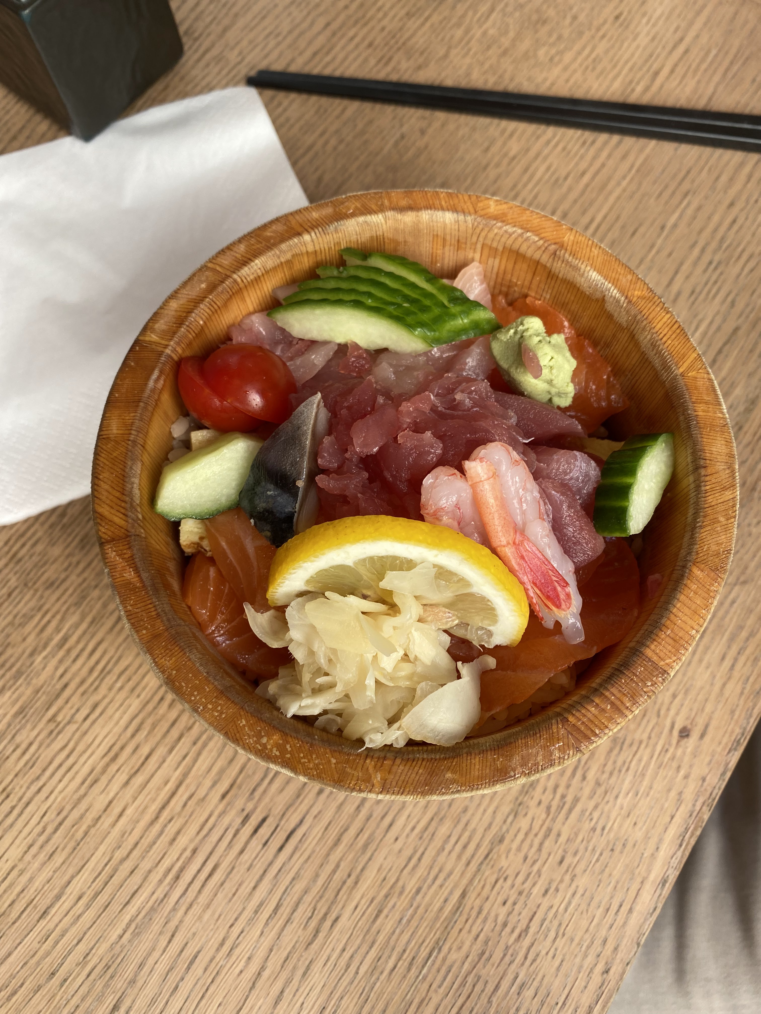 Très déçu d’avoir eu des chutes de poisson (le thon au milieu) alors que j’étais censé avoir des sashimis dans mon chirachi comme marqué sur le menu. Ce sont les chutes qu’on gratte au niveau des arrêtes du poisson. Je ne pensais pas avoir cela vu le prix… Mais le service était aimable