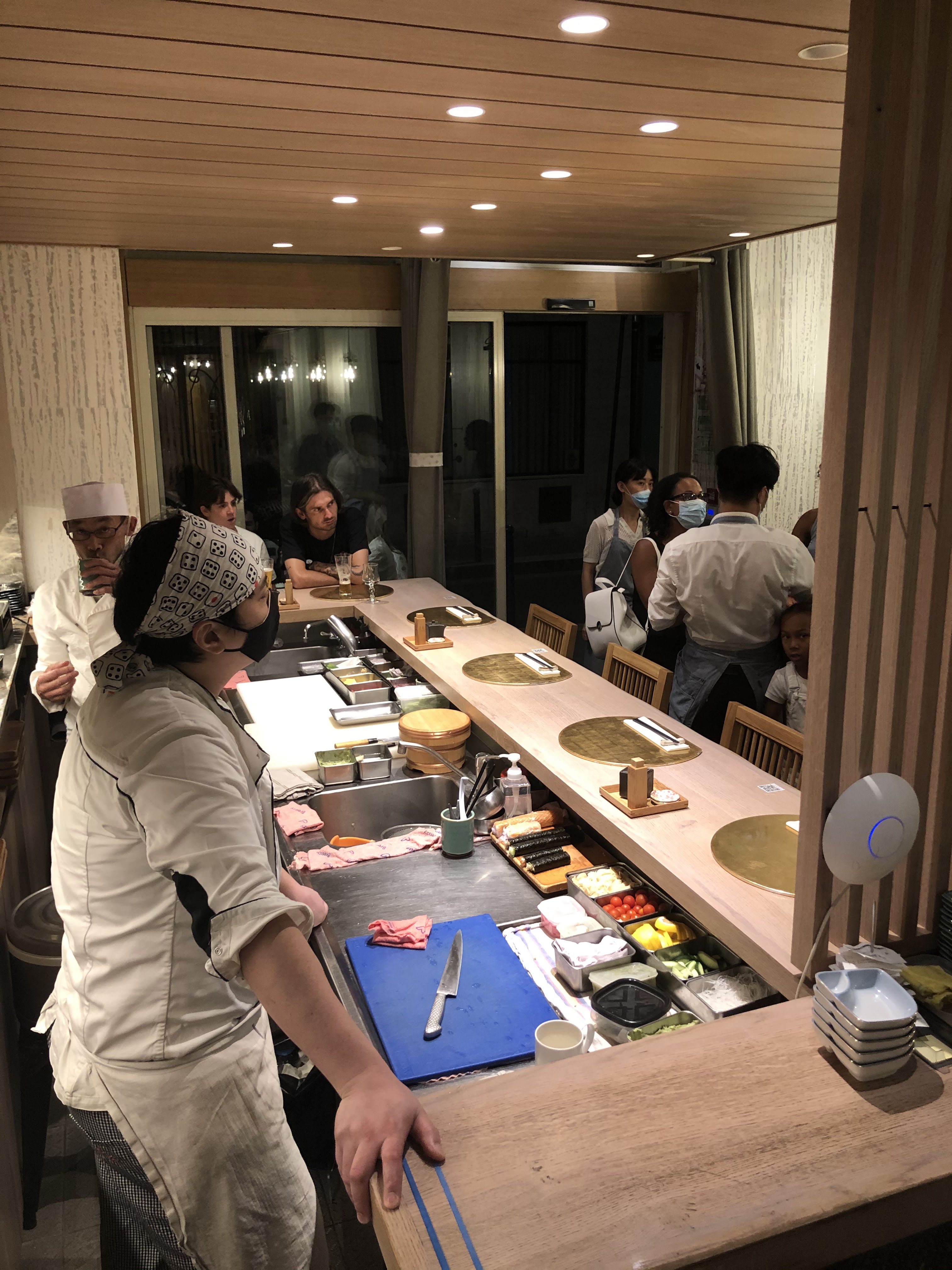 Super restaurant japonais avec des chefs cuisinant devant vous. Je recommande.