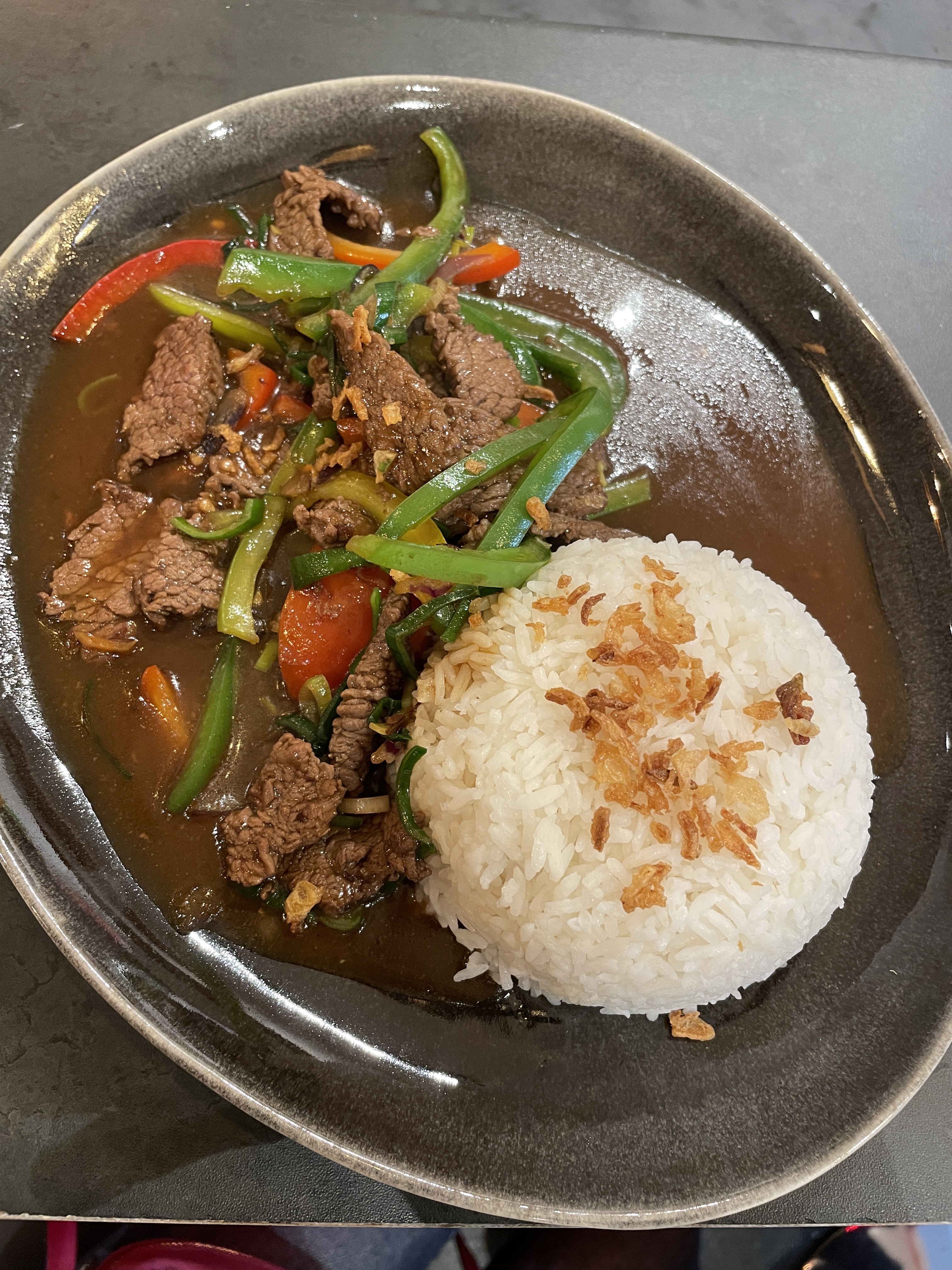 Ce restau propose 3 types de plats : base riz, base nouilles ou bao. Ces spécialités peuvent être Chinoises, Vietnamiennes, Thaïlandaises, Japonaises ou Taïwanaises. J’ai arpenté beaucoup de restaus asiat, et même si c’était la première fois, mon plat (Loc Lac bœuf) était juste délicieux… et copieux !! Option végé (tofu) dispo. Je recommande vivement !