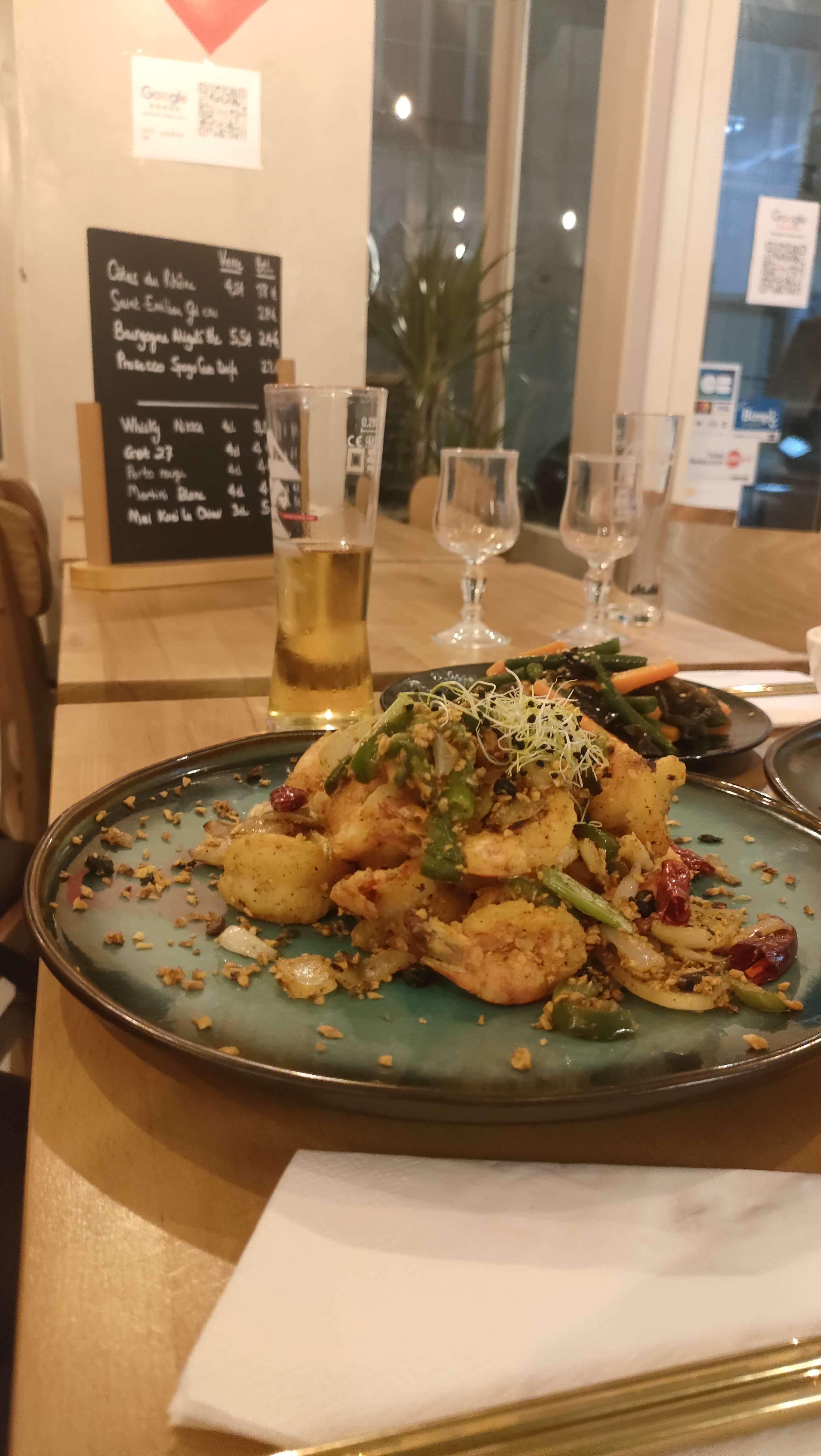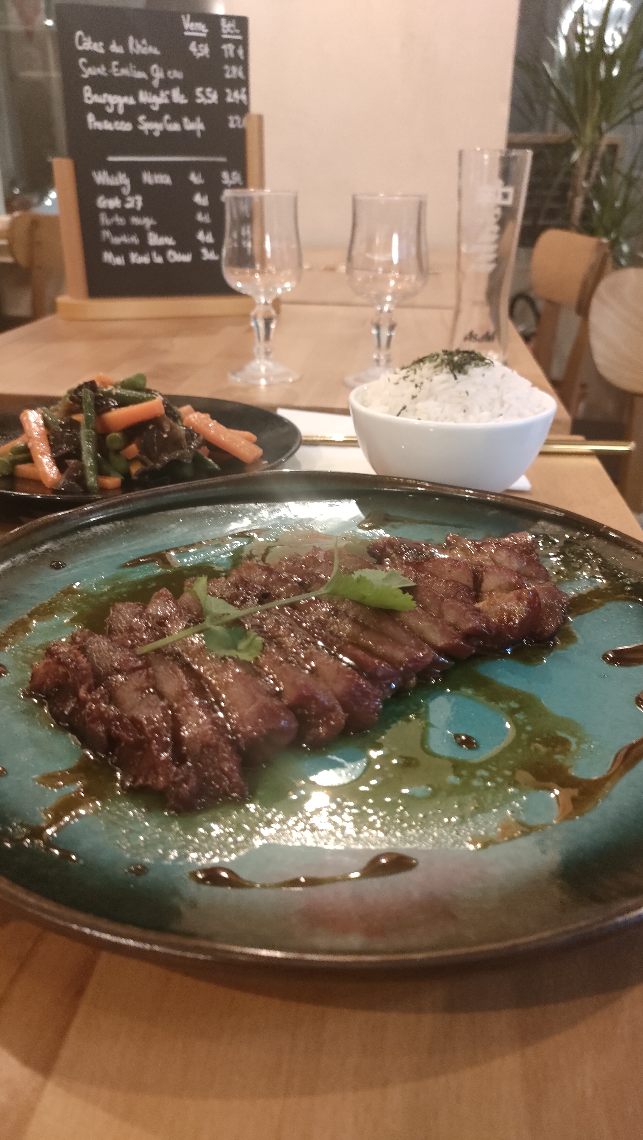 Plats réchauffés au micro-ondes… Nous avons pris un canard laqué. Très sec , viande caoutchouteuse. Les entrées boffs aussi Le plat en sauce bien mais pas de la haute gastronomie. Entrée plat bière + de 40€. Dommage, ça semblait simpa et bon sur les commentaires