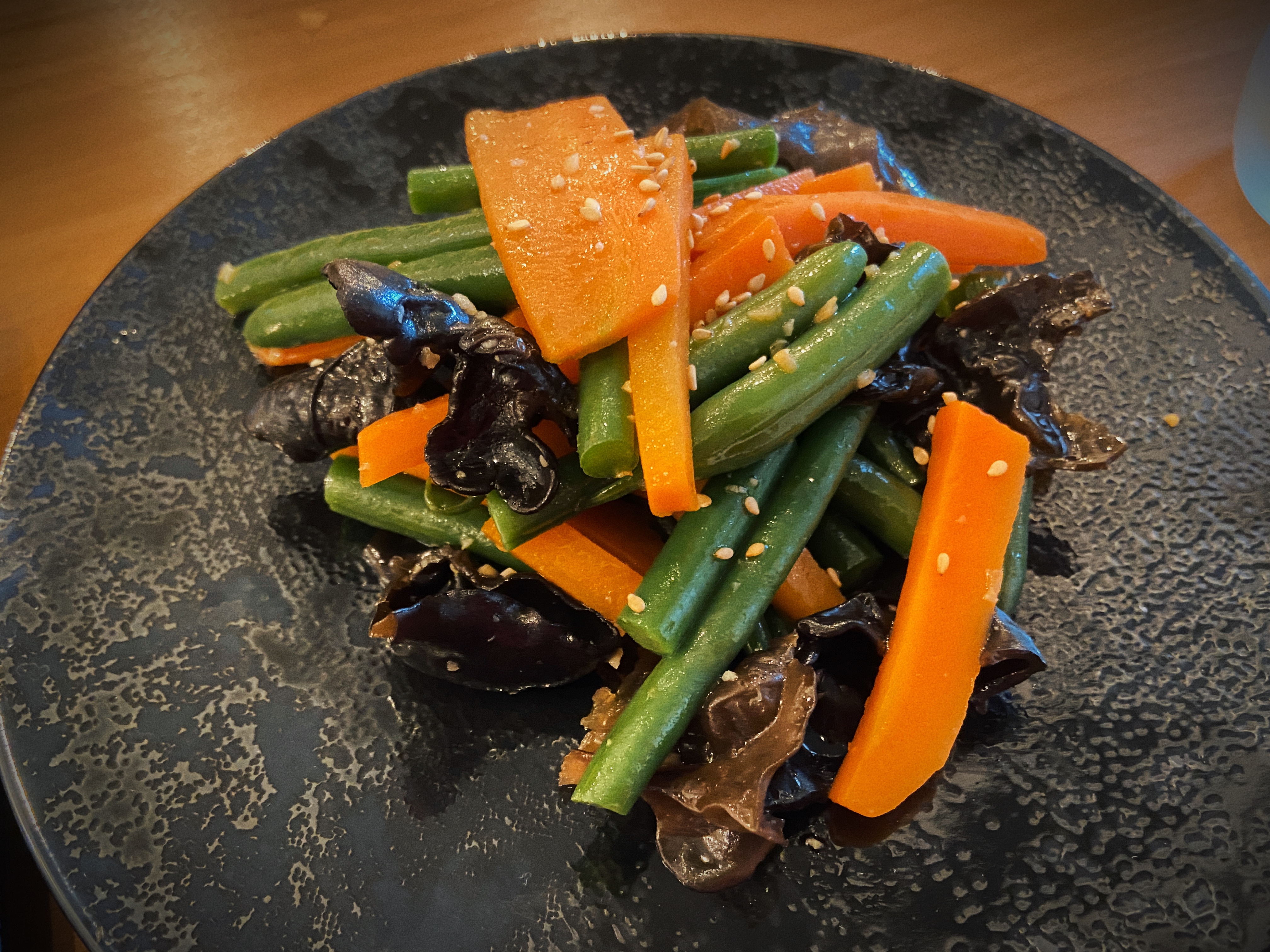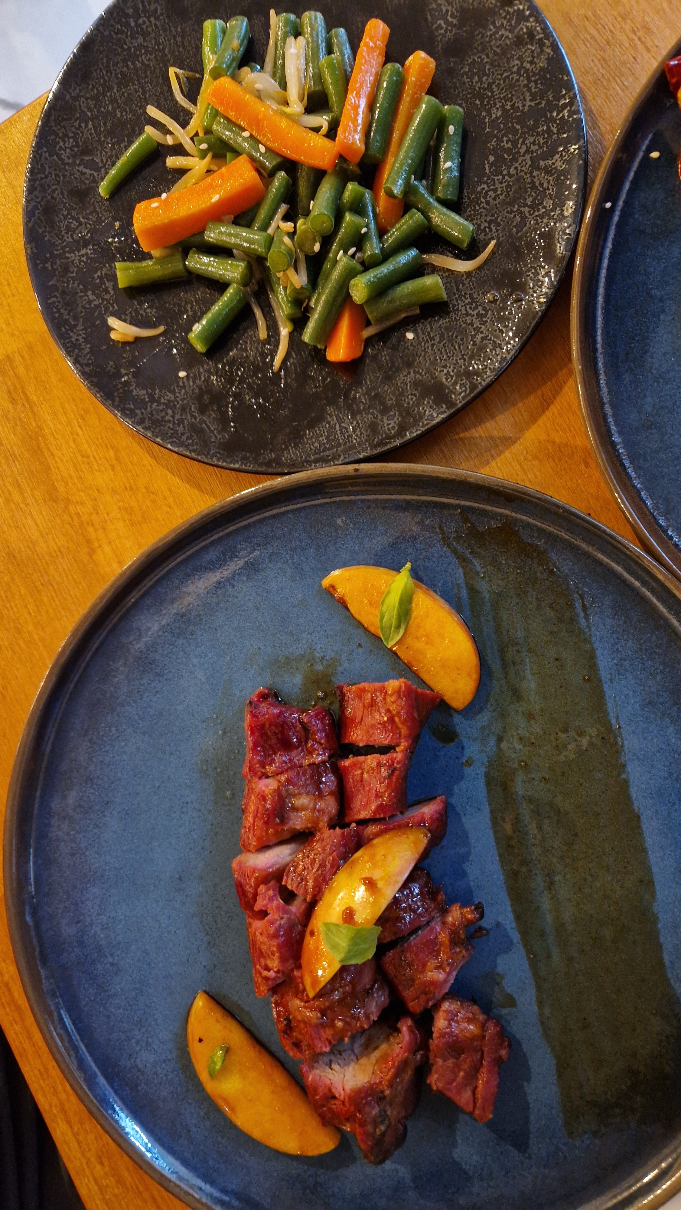Un restaurant basé sur la cuisine cantonaise récemment ouvert. Nous avions envie de plats chinois et nous sommes tombés par hasard sur Yue Dore, près de l'hôtel où nous avons séjourné. Le propriétaire a recommandé des asperges sautées avec des champignons noirs, une soupe aigre et épicée et leur canard rôti signature.