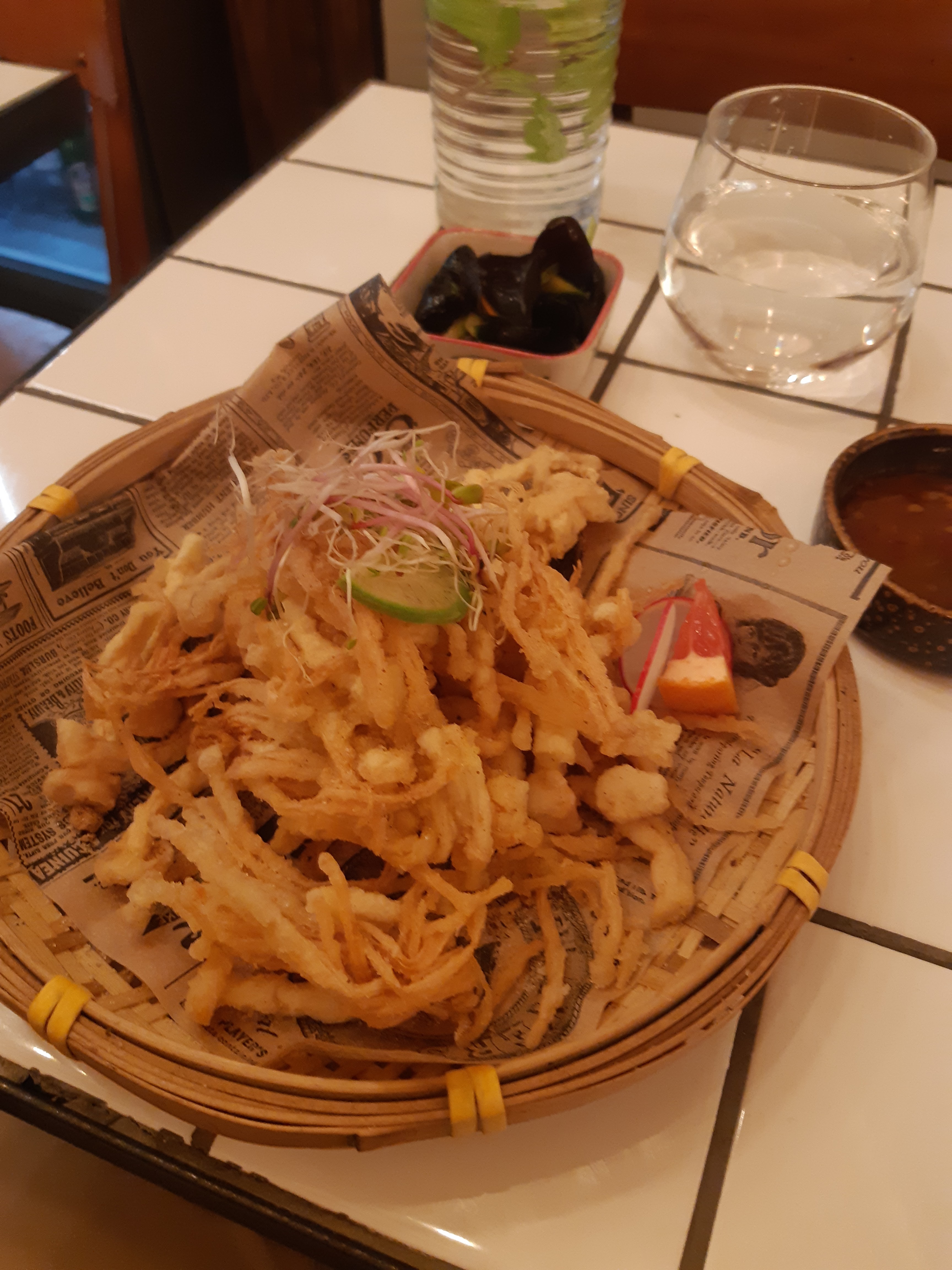 L'endroit a une très bonne ambiance et le personnel est vraiment sympathique. Attendez-vous à du bon saké mais la nourriture... enfin, pas grand chose à dire. Crevettes avec la carapace encore posée (je comprends que certains pays asiatiques la mangent ainsi mais c'est toujours éteint pour nous les Européens) et noyée dans du panko (chapelure de pain). Nous avions aussi des côtes courtes qui étaient très dures, peut-être qu'elles n'avaient pas été cuites assez longtemps. Globalement acceptable mais nous ne voudrions pas revenir manger. Juste du saké.