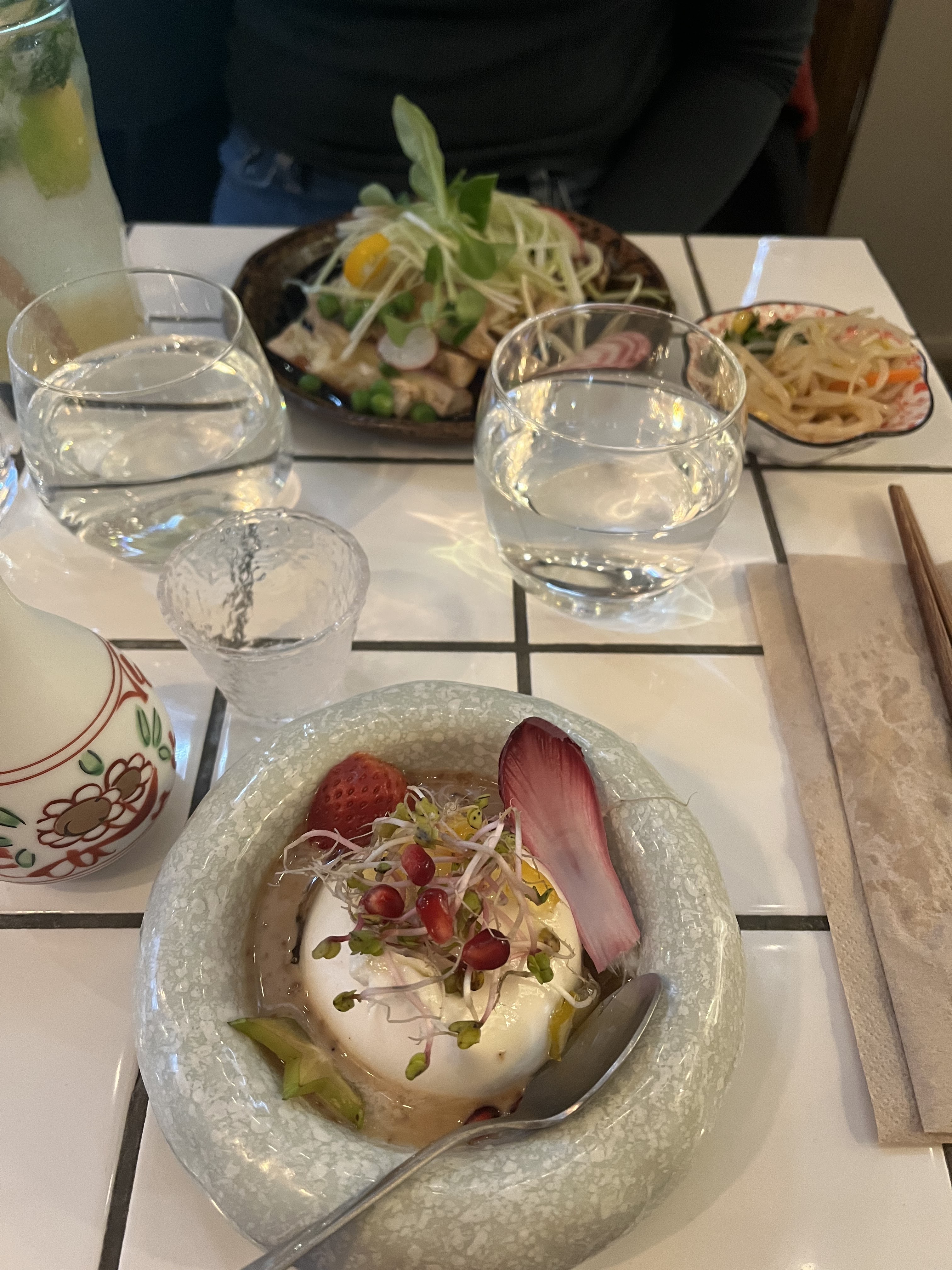 Mes enfants adultes et moi nous sommes arrêtés ici en revenant à notre hôtel, après avoir consulté le menu intrigant en ligne. Nous étions les premiers clients dans un petit espace de restauration (7 tables) mais joli. Au bout de quelques minutes, nous avons appris que le monsieur qui s'occupait de nous était le chef et la seule personne présente dans le restaurant, car un hôte/serveur n'avait pas pu se rendre au travail en raison d'une urgence familiale. Le chef nous a gracieusement accueillis, en nous offrant notamment du vin gratuit, et un sous-hôte est arrivé environ 20 minutes plus tard. Tout ce que nous avons commandé était délicieux - assaisonné et présenté de manière créative. Bon saké et cocktails. Bel endroit, fortement recommandé.