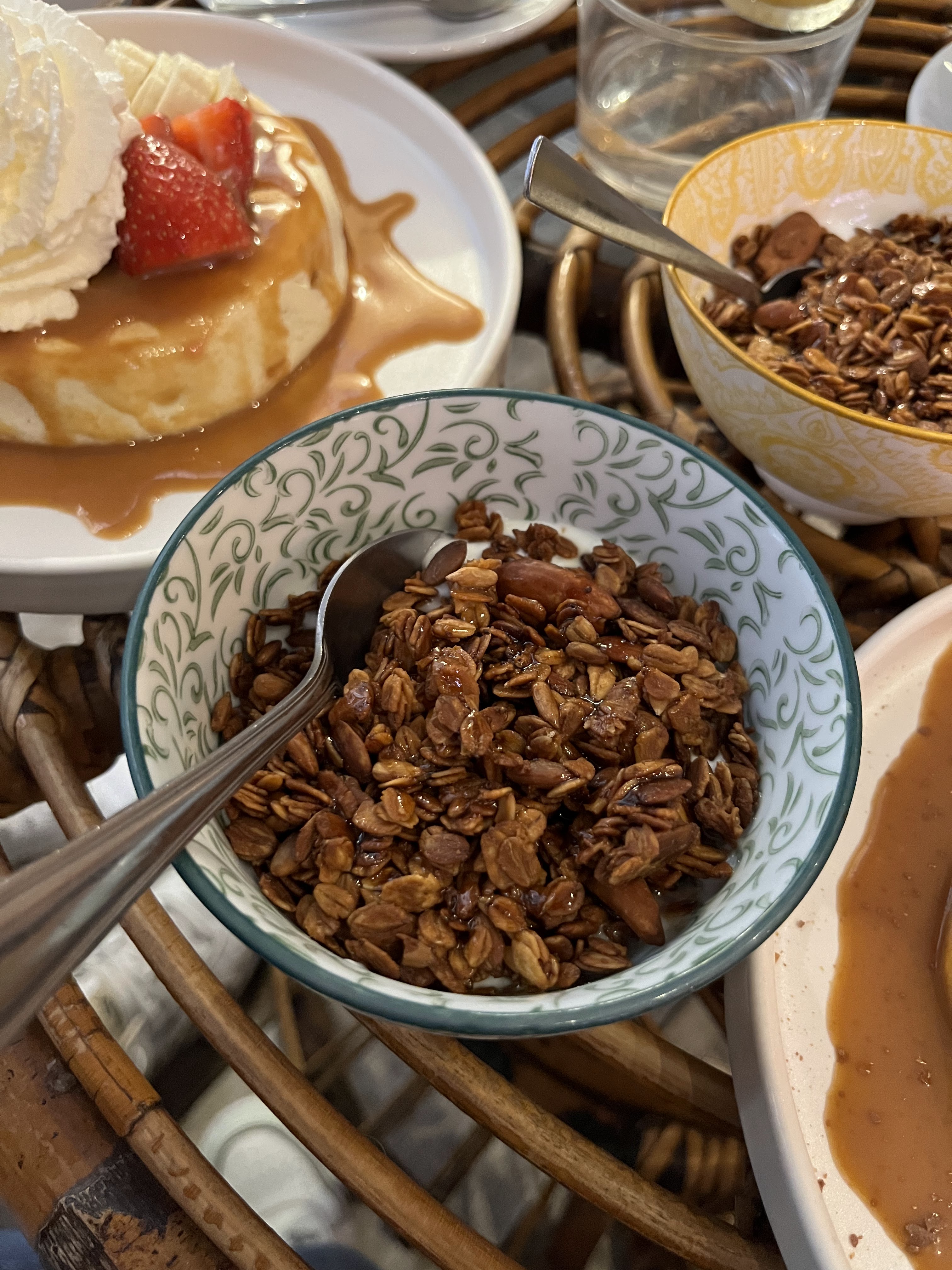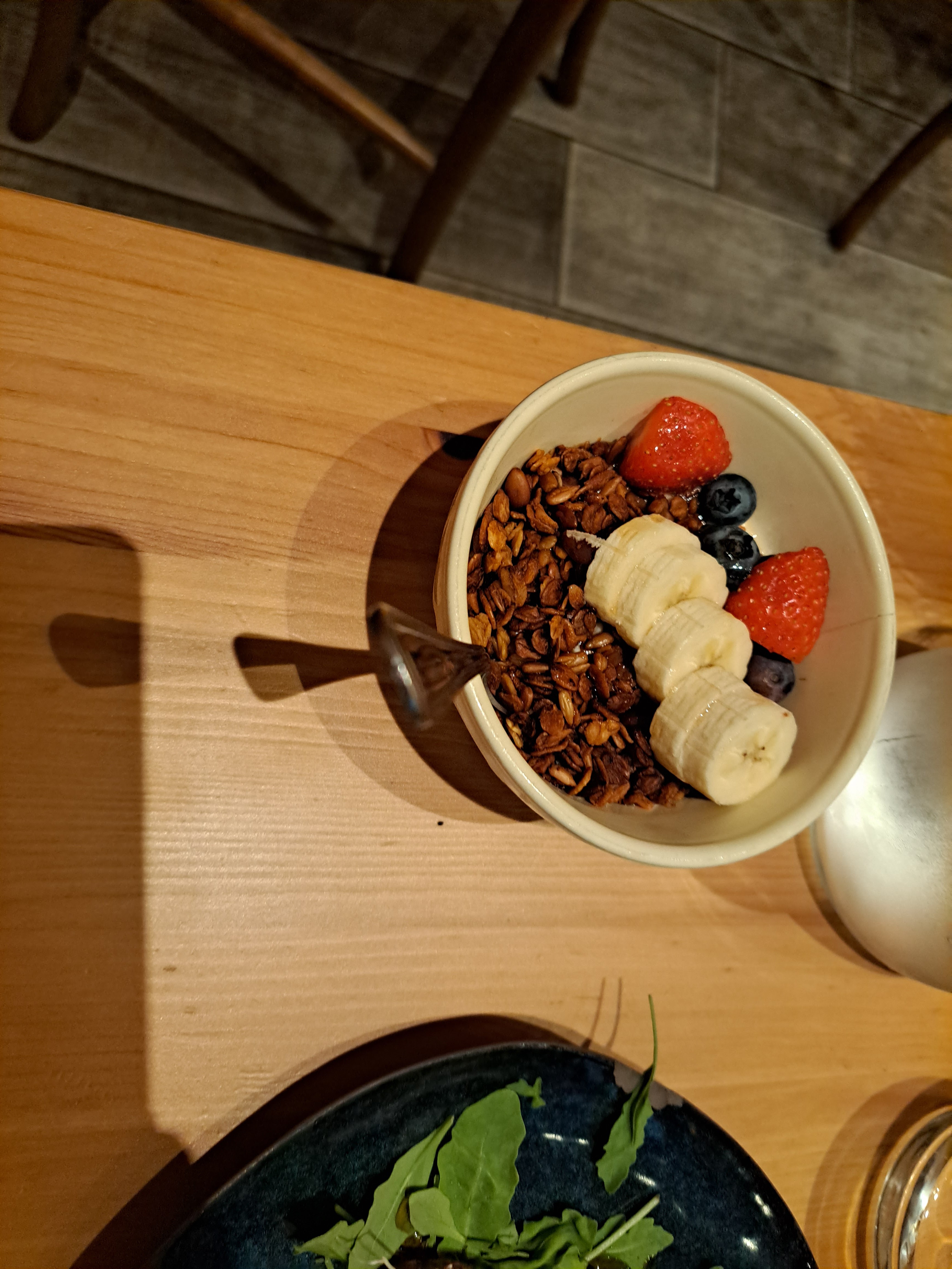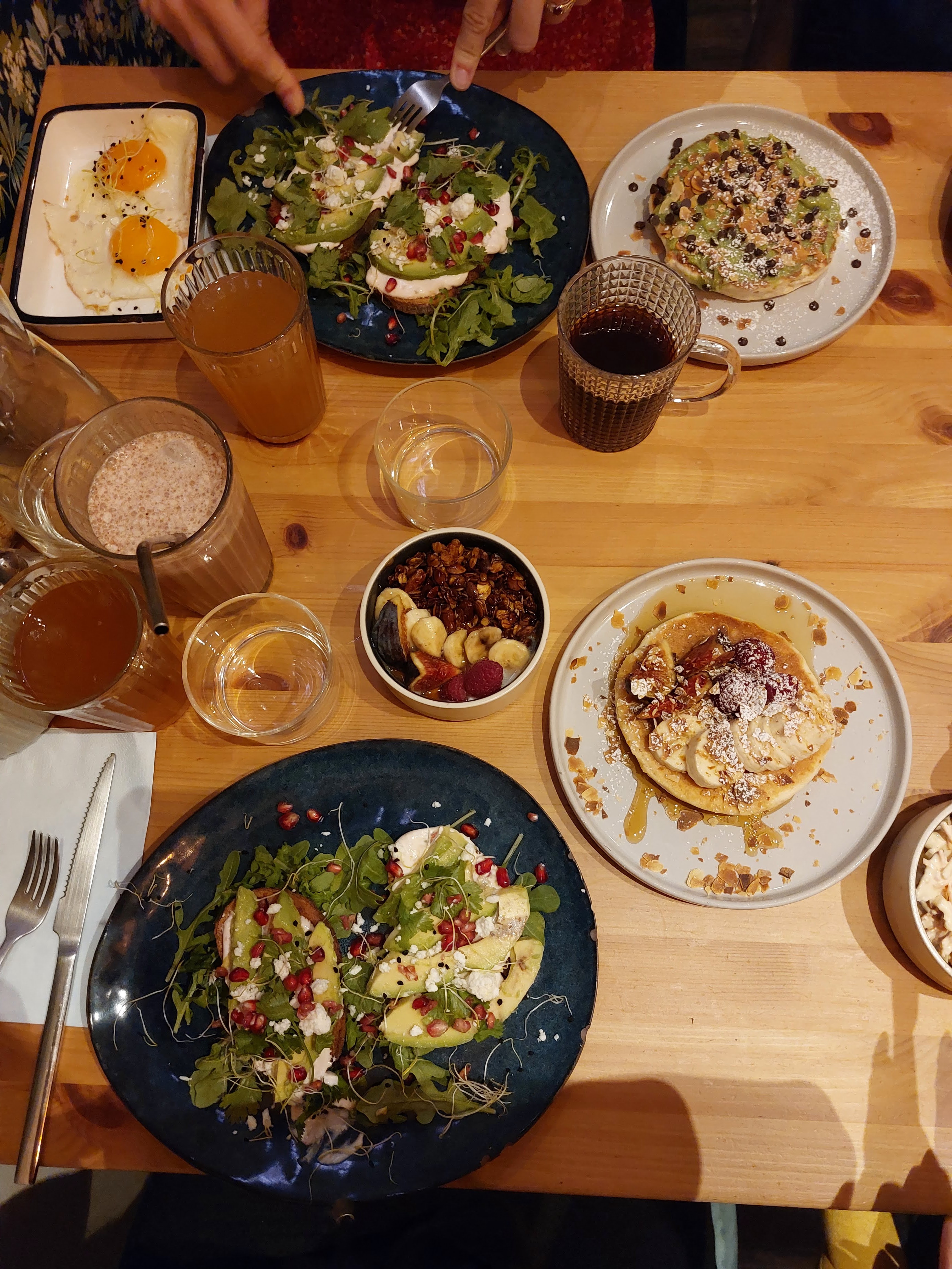 heureusement qu’on est arrivé avant l’ouverture, du monde attendait déjà devant. pensez à venir a l’avance ! c’était super bon !! on a pris deux menus et c’était vraiment très copieux, a peine réussi à finir. les pancakes sont super fluffy. le granola très bon aussi. la pâte à tartiner à la pistache est à tomber !!!😋