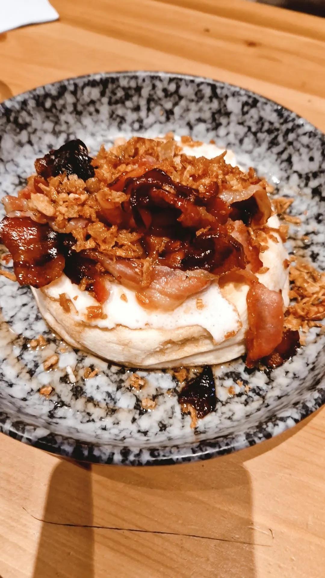 Longue queue, mais ça vaut totalement le coup ! Je recommande à 100%. Leurs pancakes salés au bacon sont incroyables.