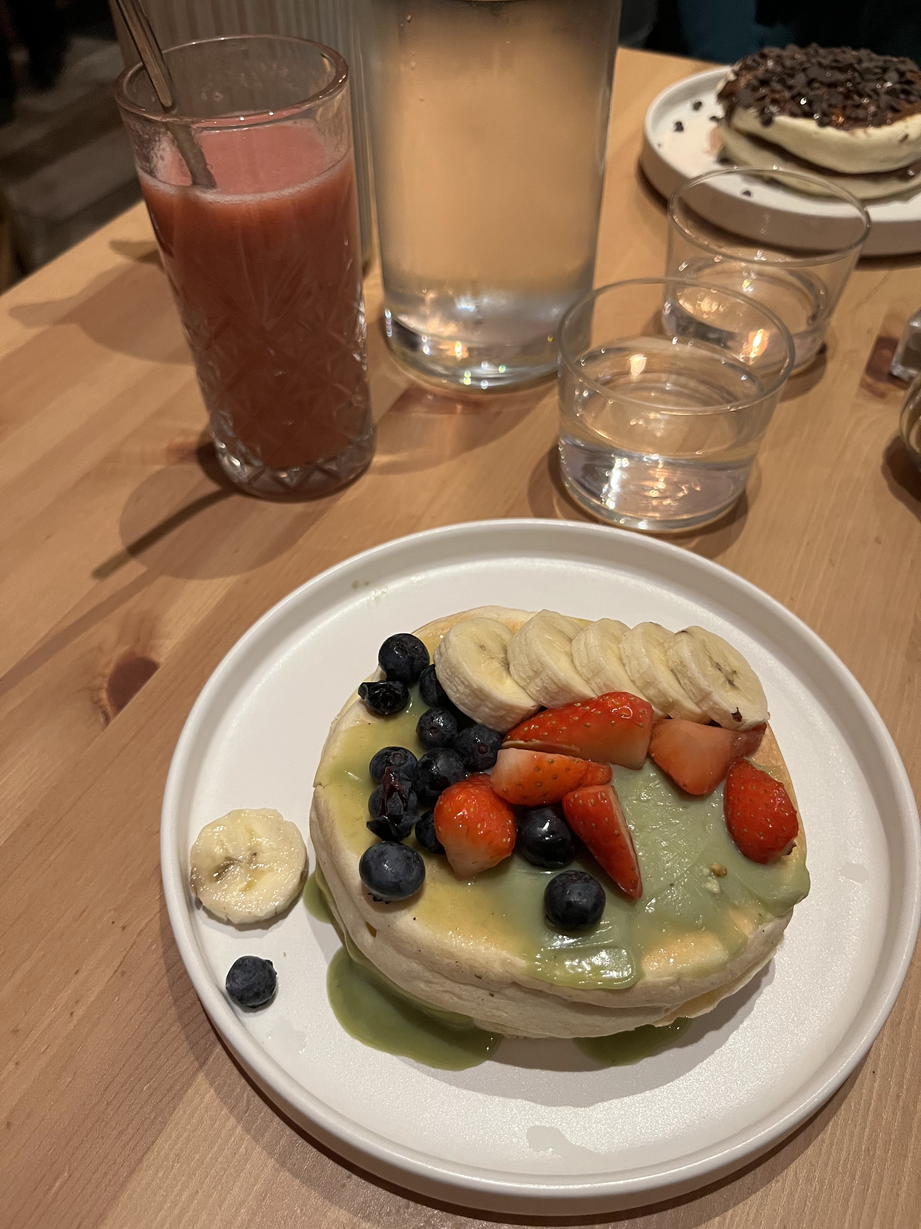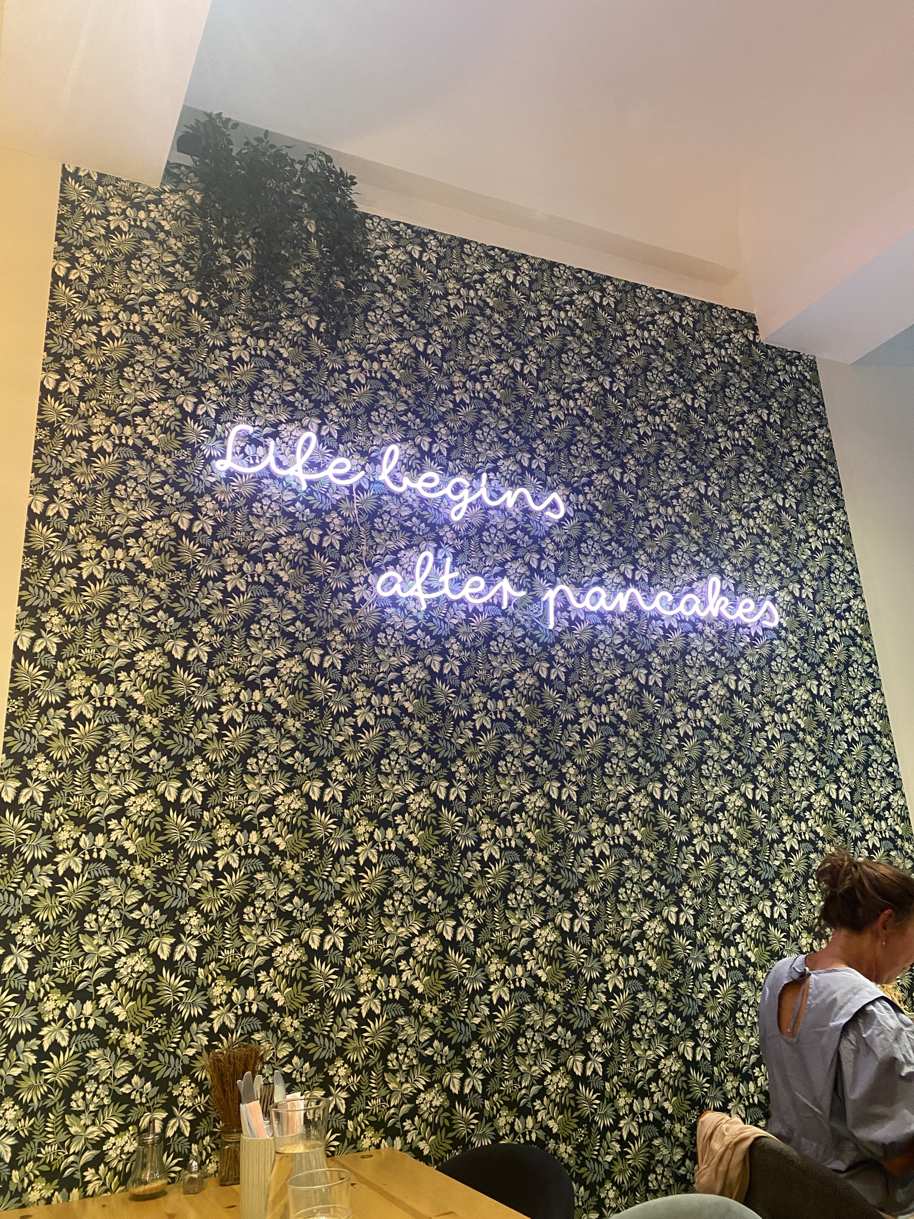 Au détour d une ruelle étroite se trouve yummy pancakes ça vaut le détour allez y les yeux fermés . Une déco minimaliste mais très élégante et des pancakes très fluffy😊