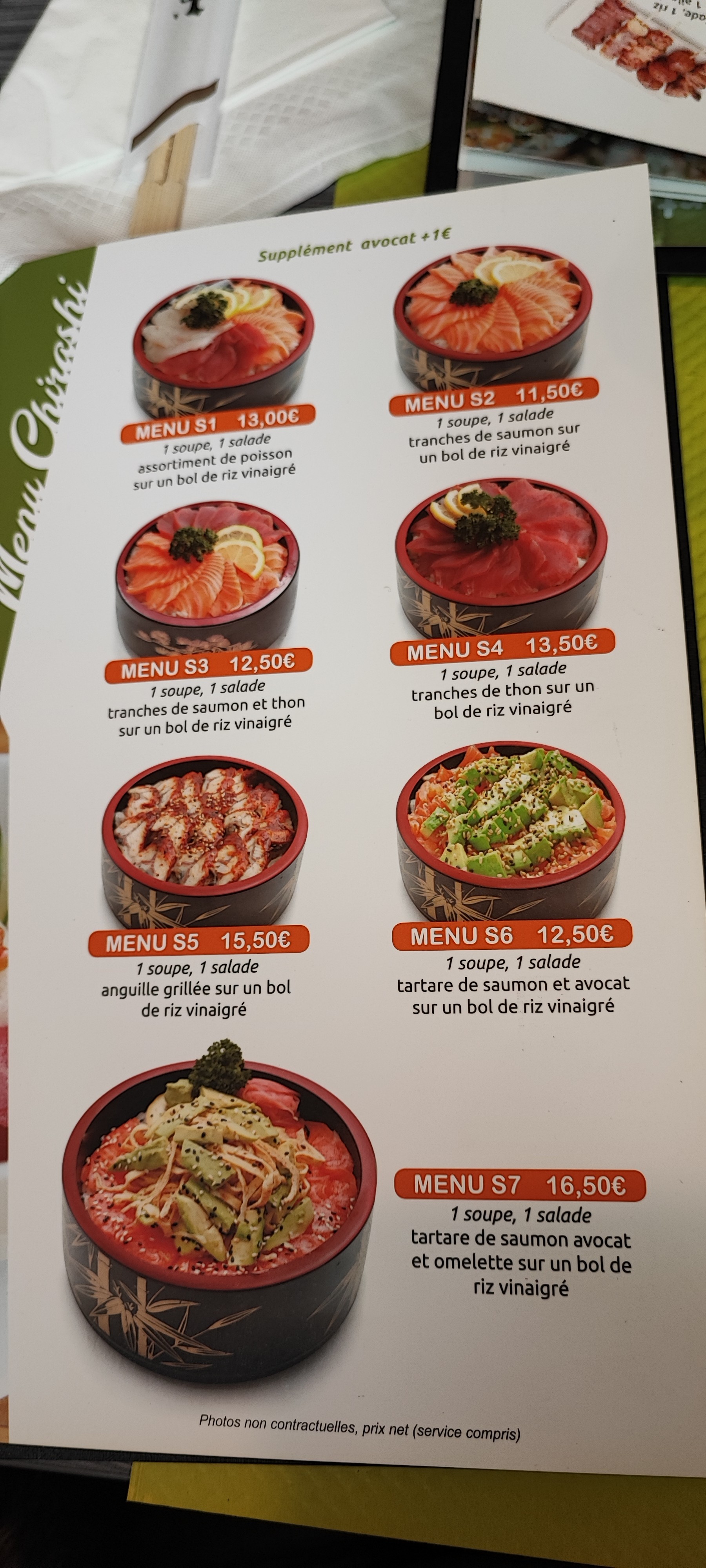 Très bon restaurant, je n'ai pris que des plats à emporter pour l'instant aux heures de midi . L'attente est très courte, et l'accueil chaleureux. le menu shirashi saumon avocat est très bon !