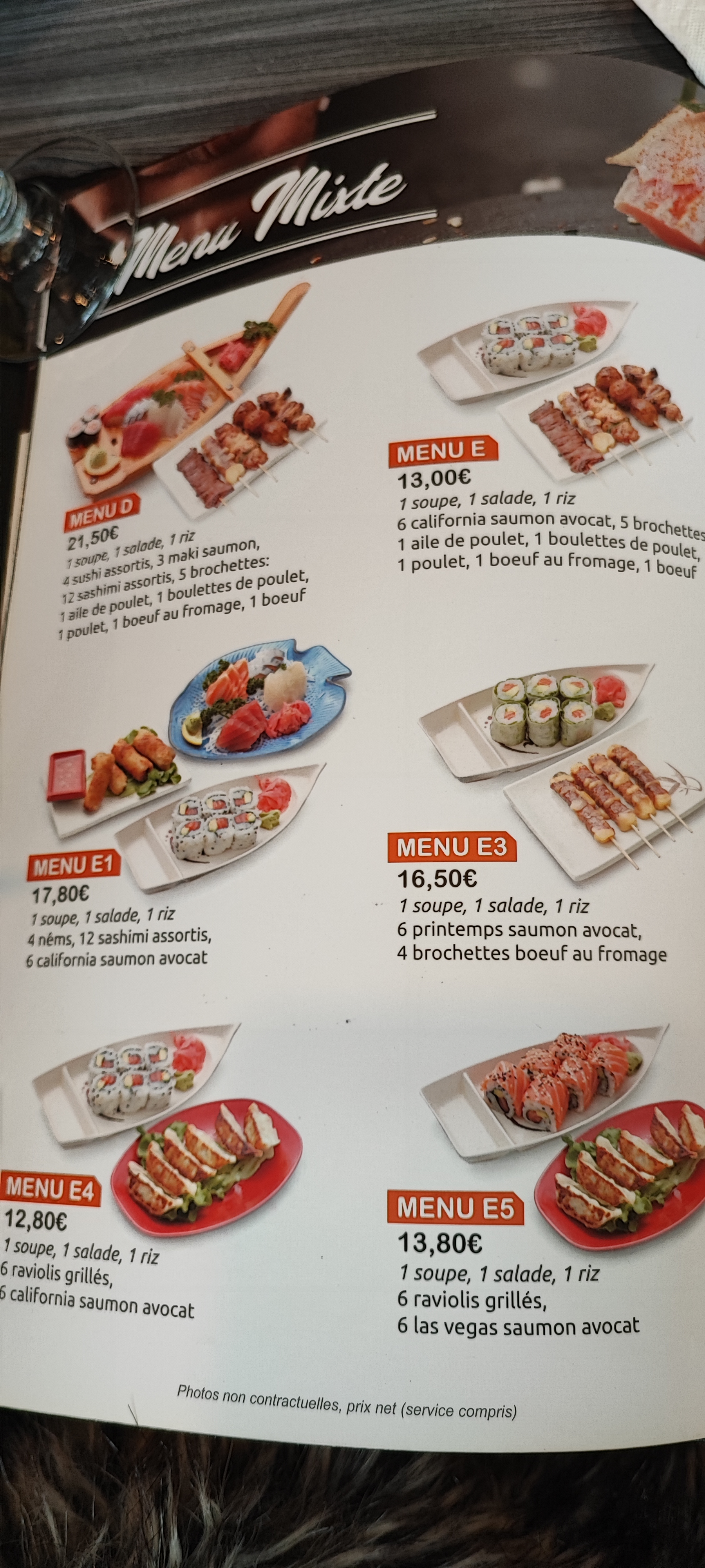 Je le suis rendu dans ce restaurant sur la base des commentaires lu sur Google. J’ai été accueilli et servi rapidement. J’ai pris un menu Z (16,50€) composé de kakis, sushis et brochettes. Les makis californiens sont de taille impressionnante. Tout ce que j’ai mangé est bon. Par contre, contrairement aux autres clients, je n’ai pas eu droit au cocktail de bienvenue.