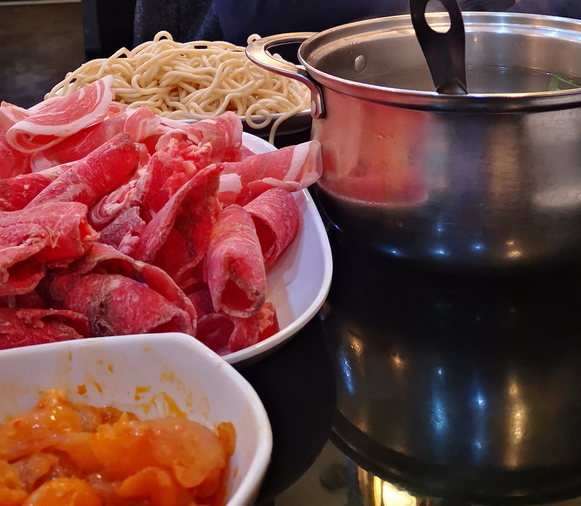 Première expérience de fondue chinoise, je recommande ! Le bouillon était délicieux, on a vraiment bien mangé, on nous a bien expliqué la puissance des plaques, le fonctionnement des commandes ainsi que le temps de cuisson des aliments. Lieu convivial, on y retournera 🙂