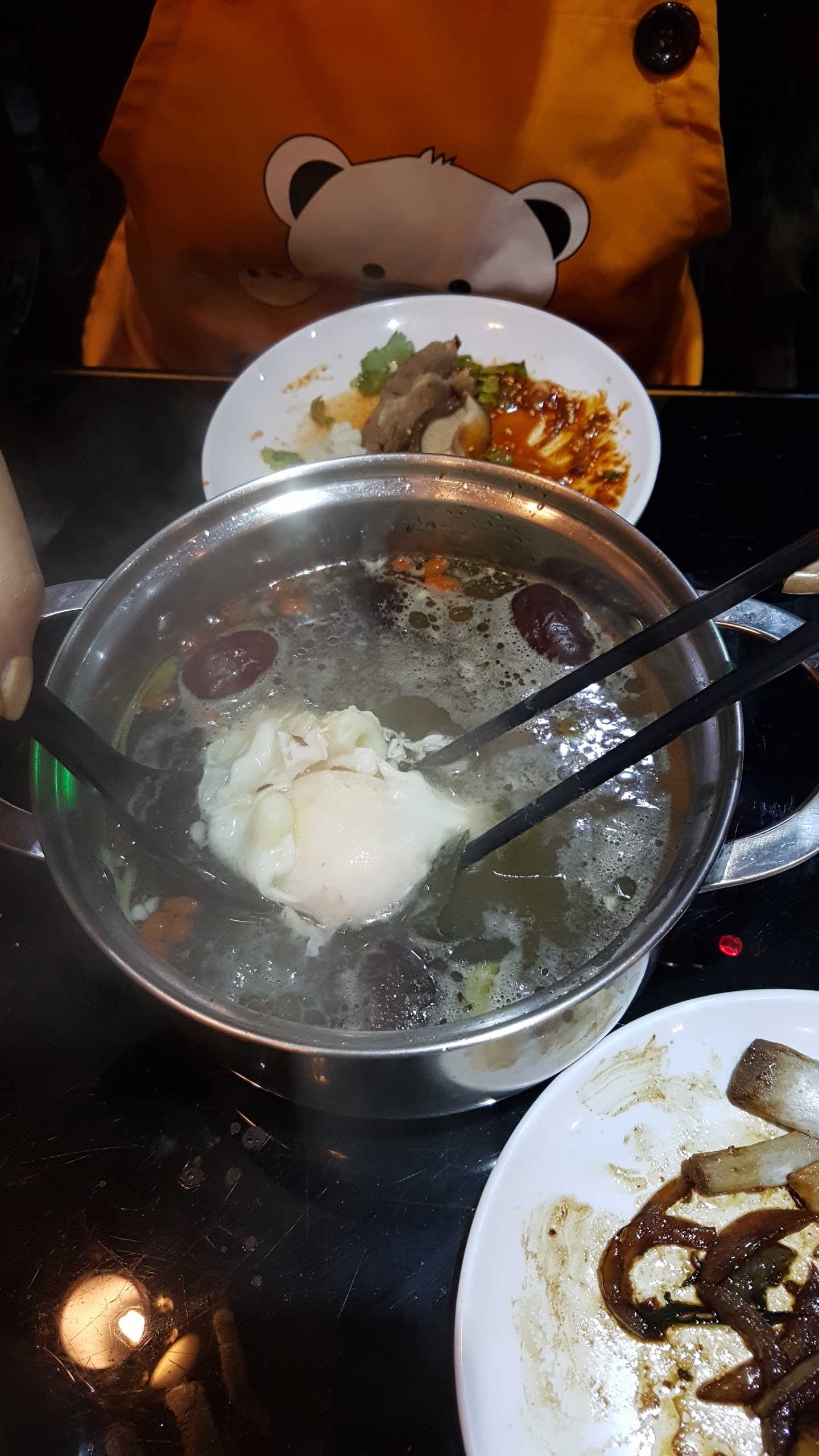 Mon copain et moi avions apprécié le service et la gentillesse du personnel. Nous avions tous les deux opté pour la formule à volonté et donc très bien mangé. Les ingrédients étaient bien frais et les soupes très bonnes. Je recommande particulièrement les tranches d’agneau, la pâte aux crevettes, les petits calamars et une portion bien copieuse de légumes ! Nous avions choisi pour un bouillon au poulet ainsi qu’un bouillon épicé. Il y a un self-bar pour se servir et concocter sa propre sauce et toutes les options imaginables. Il y en a pour tous les goûts !