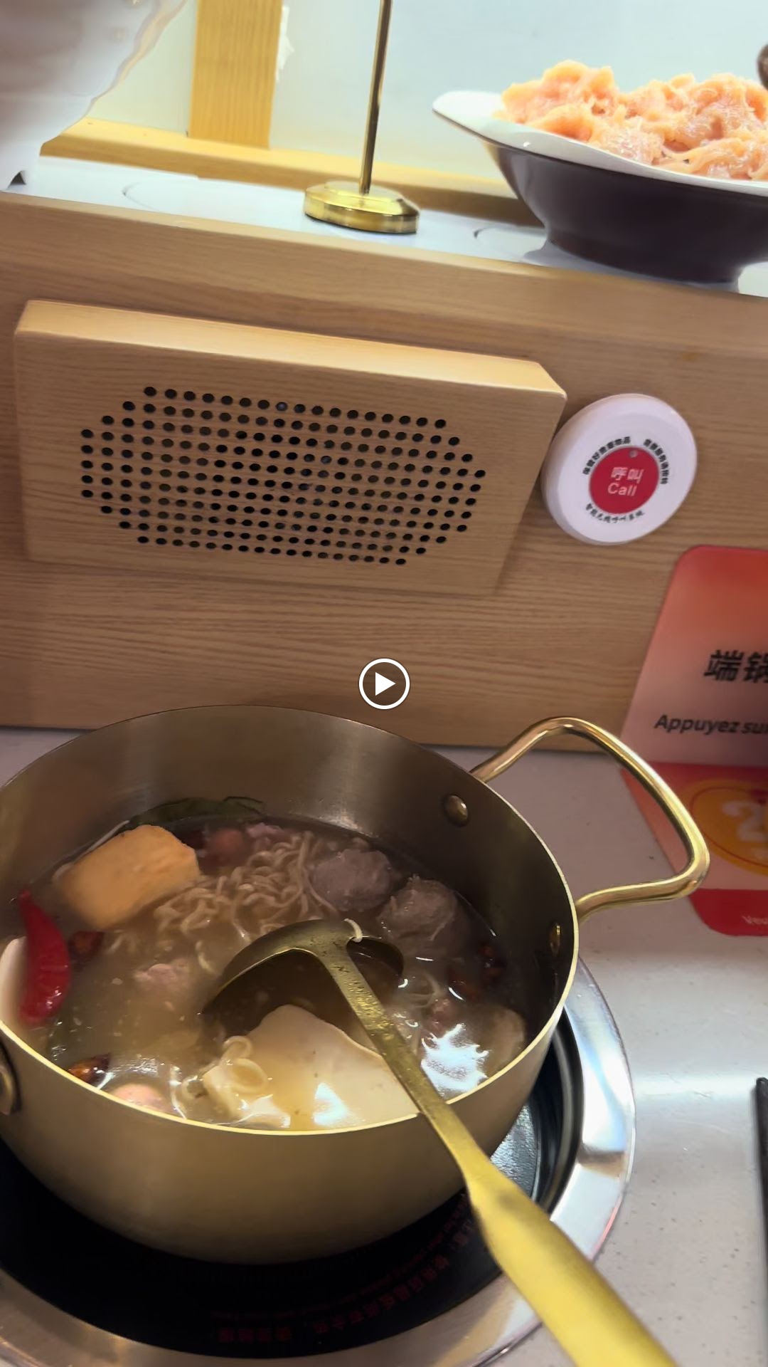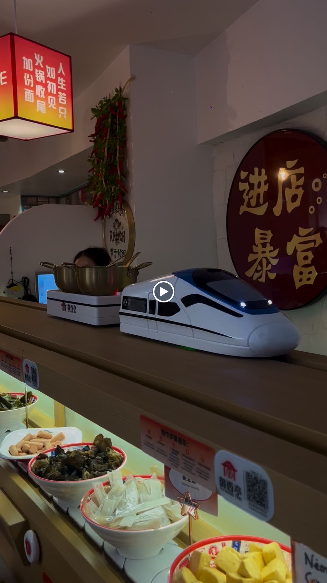 Un restaurant hotpot très original ,j'adore le concept. Le personnel est gentil, aimable et attentionné. Un petit train qui vous sert le bouillon, et une plaque tournante qui expose les produits frais. J'ai hâte d'y revenir.