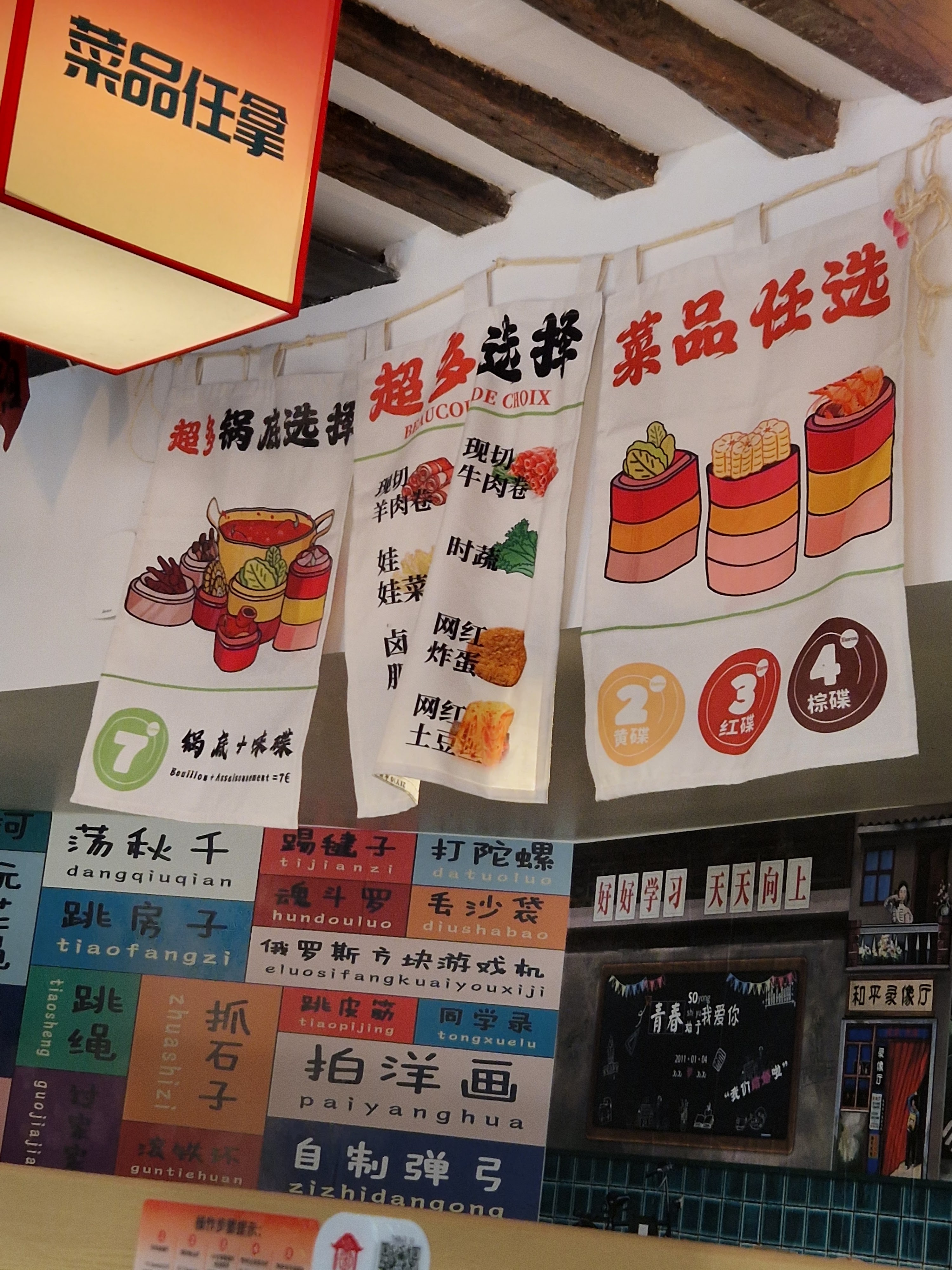 Le BGM est un mélange de succès de Taylor Swift. Il existe de nombreux plats et les œufs au plat étaient délicieux pour la première fois. Les desserts étaient excellents, surtout les beignets. J'y suis allé avec mon enfant de moins d'un an. Le cadre du bar est très convivial pour les mamans avec des bébés. L'enfant dans mes bras ne peut pas du tout toucher la marmite. Le bol à sauce ne touche pas du tout. placé à l'intérieur. Pendant tout ce temps, l'enfant était assis sur mes genoux et était très heureux de manger des fruits et des jaunes d'œufs à base d'œufs entiers au plat ! J'espère que les nouilles larges pourront être trempées à l'avance à l'avenir, et que les plats pourront ensuite inclure du canard rôti et des boules de taro frites yuanxiao frites !