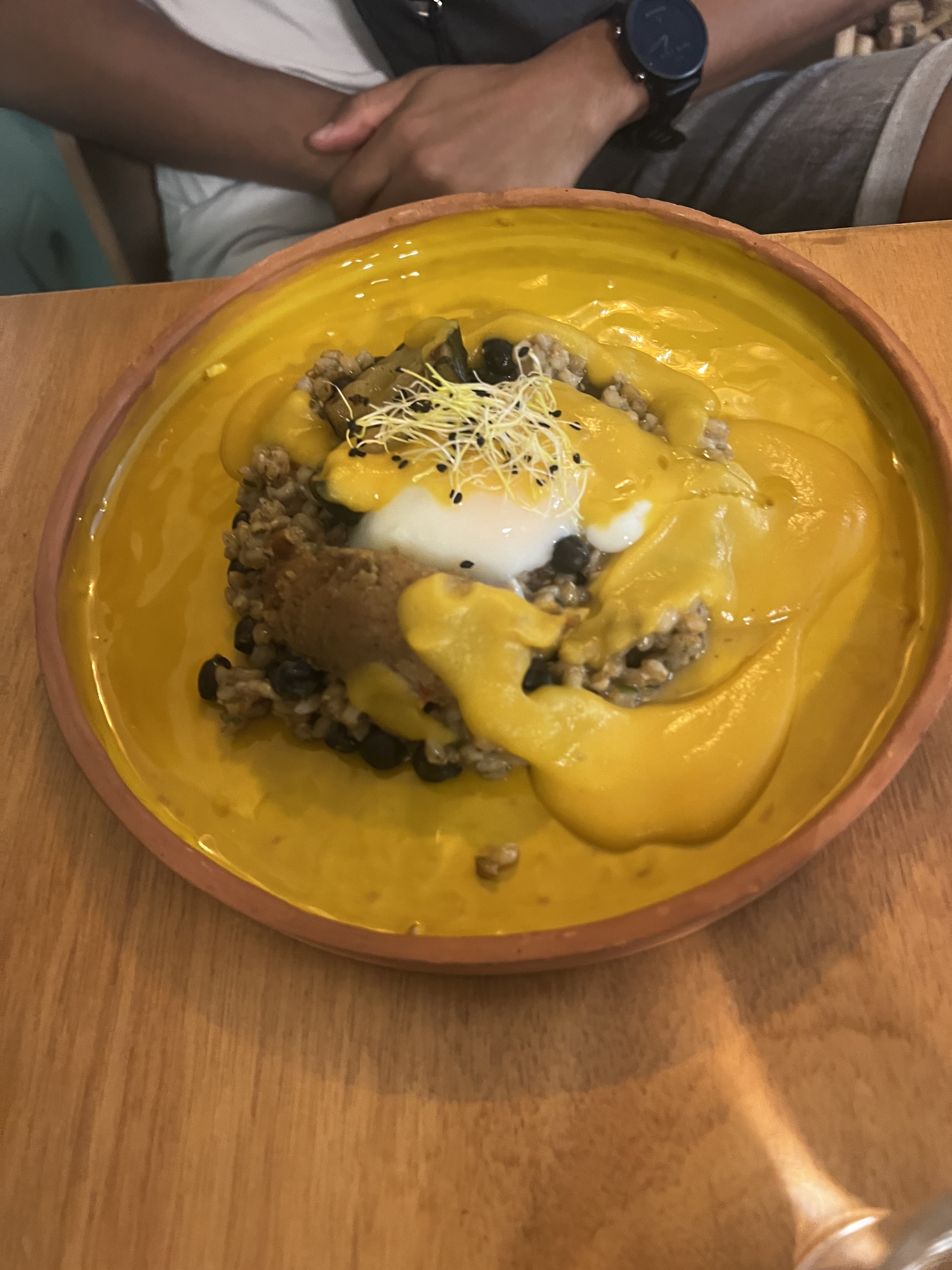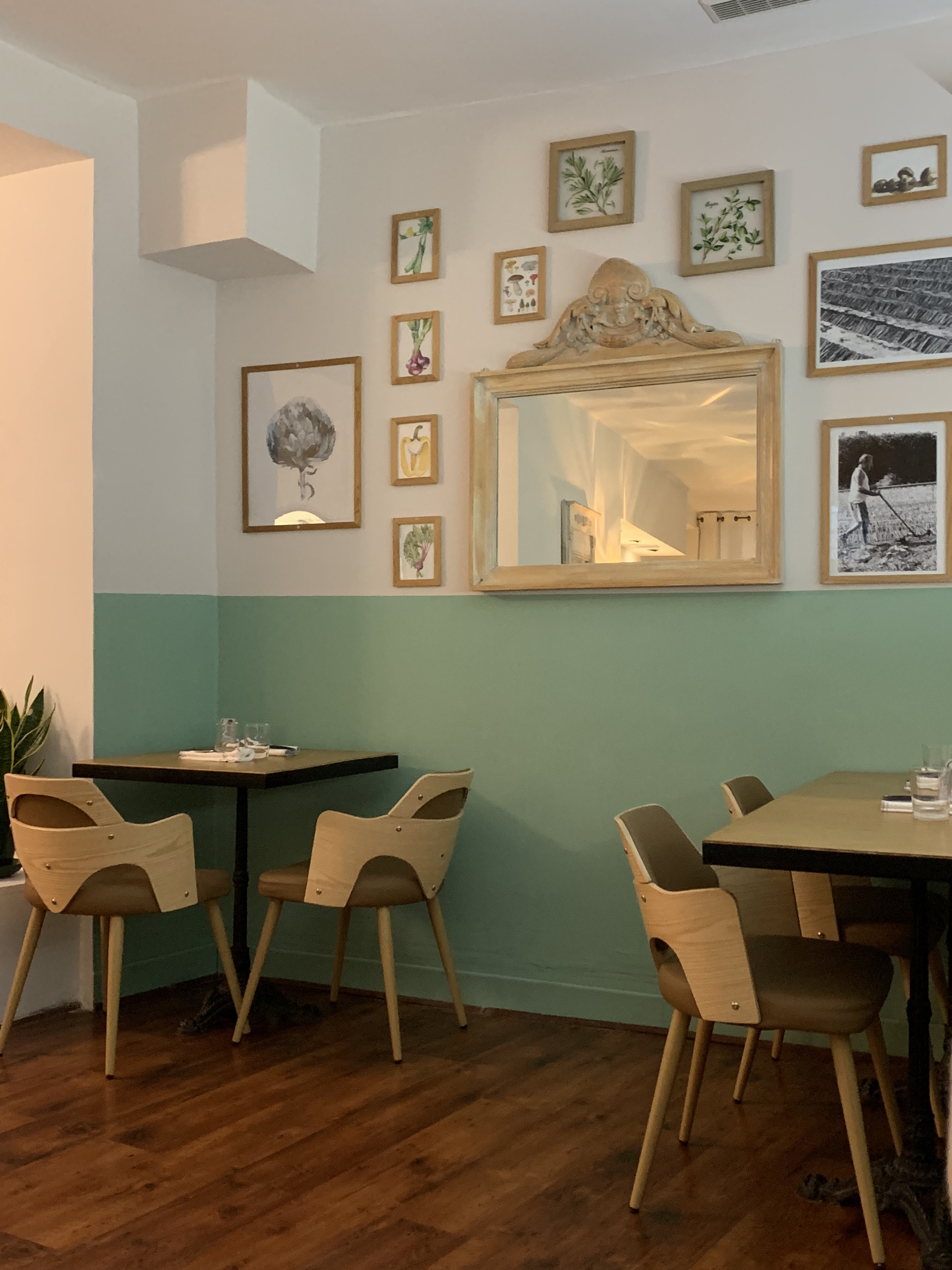 Nous avons déjeuné à deux en semaine un jour de pluie . Le repas était inventif et fait à la minute . Produits frais , bien présentés, jolie vaisselle . Il y a un plat viande , un plat vegan et un plat poisson, donc il y en a pour tout le monde . Un bémol les portions sont trop petites , mon plat ne comportait pas de sucres lents. A éviter pour les gros mangeurs . L'éclairage est à revoir ambiance tristoune. Sinon une jolie adresse