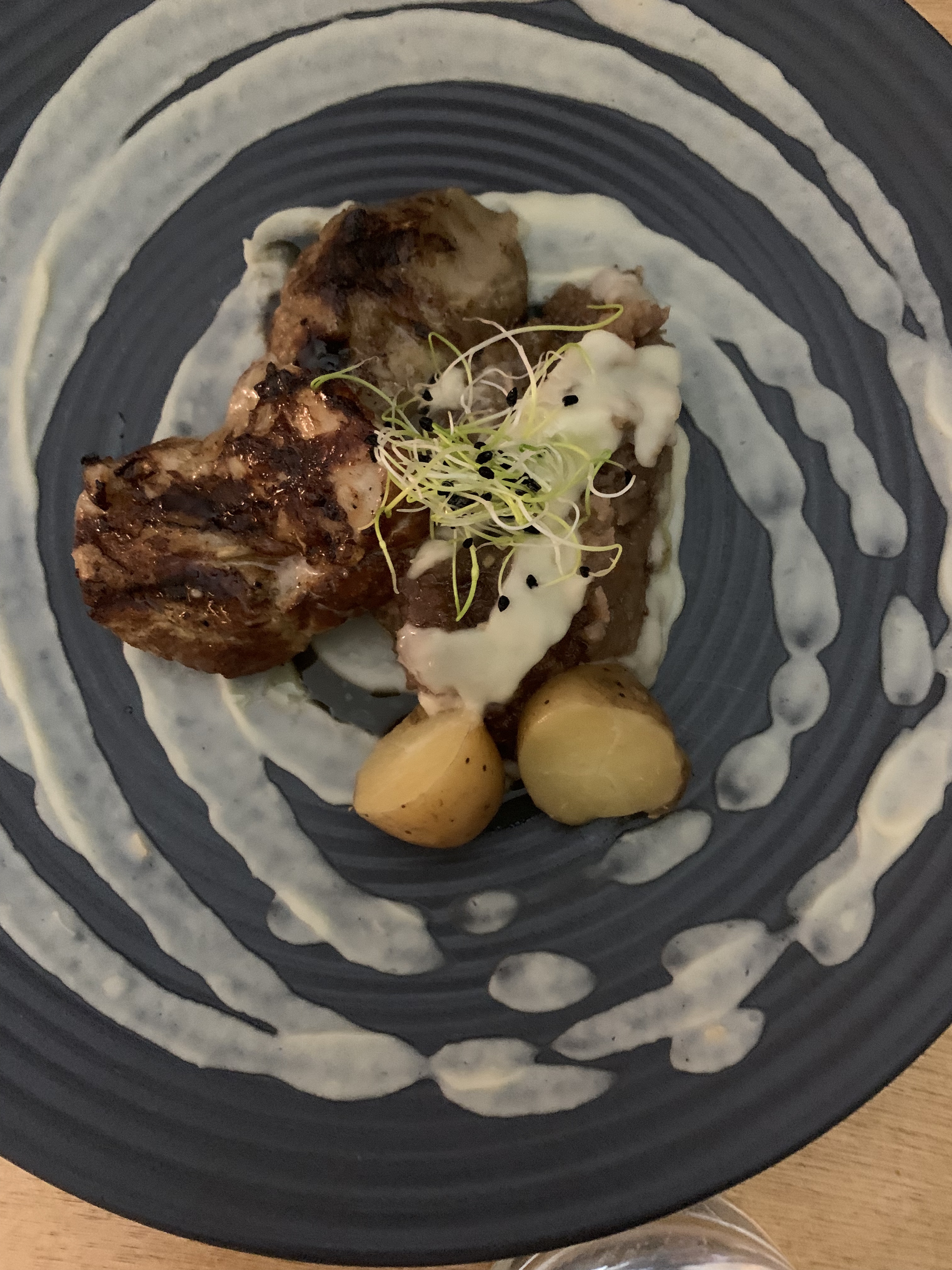 Quel beau moment nous avons passé !! Merci Chef!! De la vraie cuisine élaborée, maîtrisée qui en fait un repas raffiné et ce qu'avec des produits locaux. La vaisselle de l'artiste Rovedo participe à cette incroyable expérience gustative qui se veut sincère et authentique, à l'image du Chef!