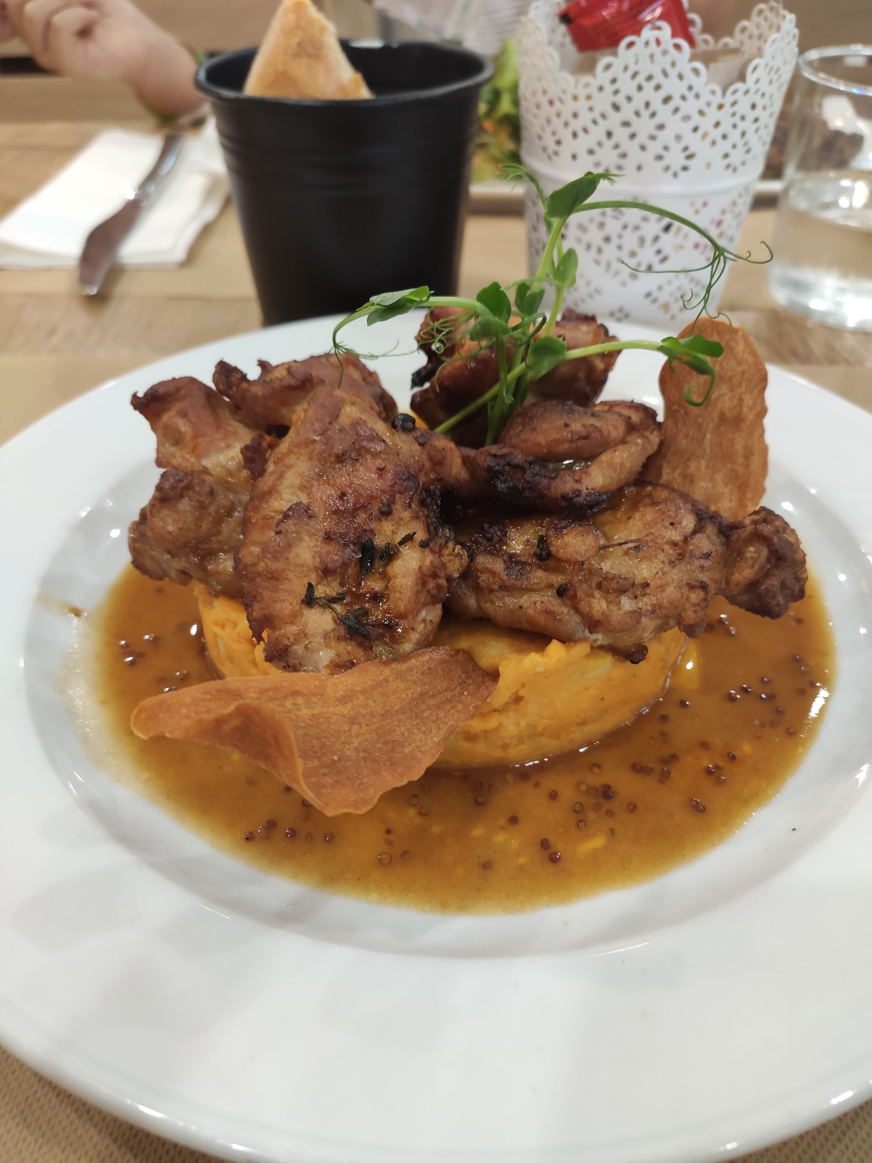 Je ne connaissais pas le concept bistrot gastro ,j'ai été très agréablement surpris...la qualité des plats ,que se soit en plat du jour où à la carte ...une oeuvre d'art dans l'assiette,avec des bons.produits locaux ... quantité et qualité...je recommande.cette adresse ...les serveurs sont très sympathiques qui plus est