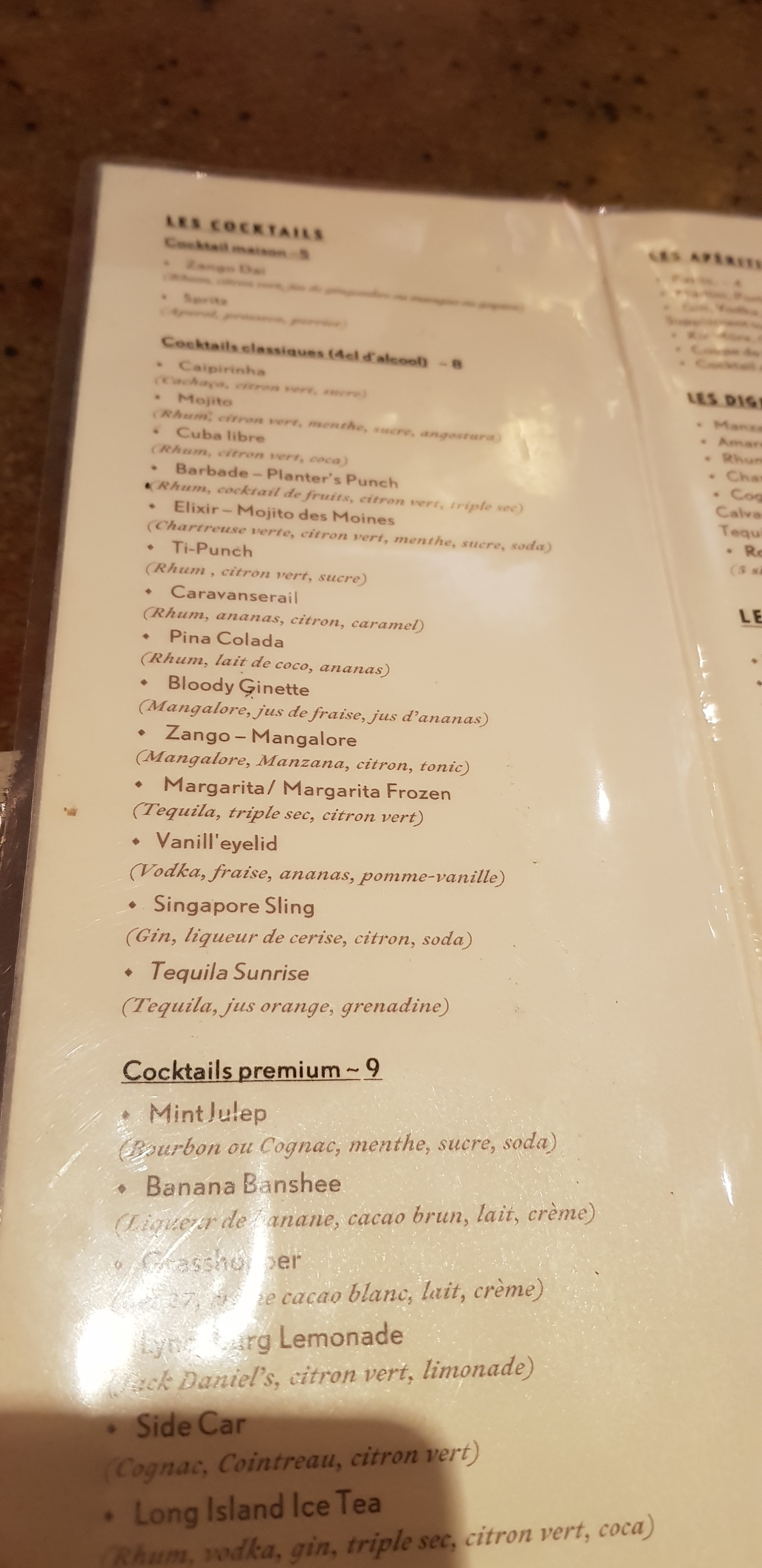 - ✔️ Cocktails et apéritifs